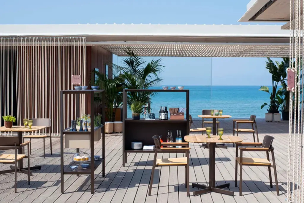 The modern, quintessential lines of Arik Levy's Shine collection are designed for both the Home and Contract sectors. A full collection of aluminium and teak furniture, with an understated design: Shine has an innate versatility that makes it perfect for both indoor and outdoor settings. Chairs, armchairs, lounge chairs and stools are available with both aluminium and FSC® teak seats. The collection is completed by single sunbeds with frames in either aluminium or FSC® teak, double sunbeds, tables of various sizes, fixed and extensible, suitable for different space requirements and contexts of use.Available colours: structure: matt white, black, dark brown, dove greytop: teakLounger fabric: white, black, brown, dove grey