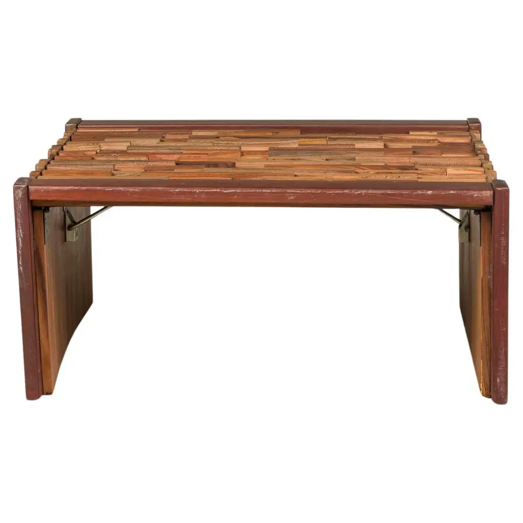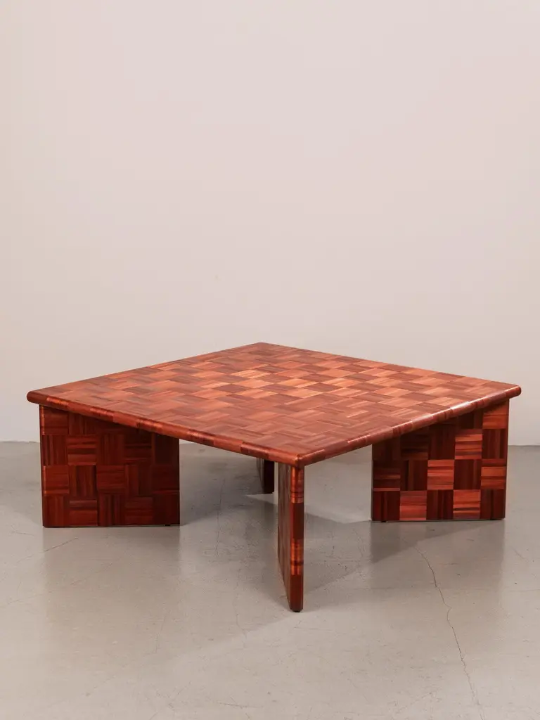 Side Coffee Table Bos With Red Checkerboard Straw Marquetry Inlay Handcrafted