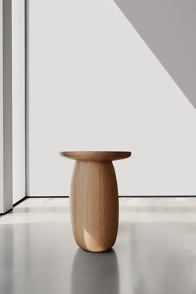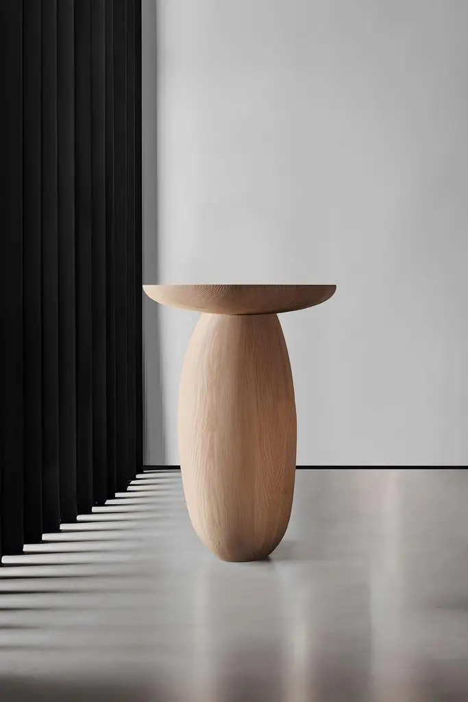Introducing the Samu Collection by NONO, where simplicity meets elegance in the form of sculptural stools, side tables, and plinths. Each piece in this collection boasts a gently domed and smooth circular top, paired with a uniquely shaped base. Handcrafted from solid wood, the material has been force-dried over a long period of time to enhance its natural grain and structure, resulting in small and larger cracks that add character and depth to the design.Samu offers three different heights, each with its own geometrically shaped base, making it a versatile collection suitable for any space. As each piece is made to order, no two are exactly alike, adding to the collection's charm and exclusivity. Available in natural or darker brown finishes, the Samu Collection ships fully assembled, ready to elevate any room.Please note that due to the nature of the material and design, there may be small variations in the final product. With a production time of 3-4 months, the Samu Collection is a testament to NONO's commitment to quality and craftsmanship.—NONO is a Mexican design brand with more than 10 years of experience dedicated to the production of interior furnishings, editions, and custom-made projects. At NONO, we create pieces of extraordinary beauty, accommodating the particular needs and tastes of each client with exclusive high-quality designs.————Some details to consider when placing an order with us:• Catalog images are digitally generated. Actual products may slightly vary in texture, grain, and final finish due to natural material differences. Despite these variations, our expertise ensures each piece maintains high quality and matches the intended design.• All of our products are made to order, and the lead time for standard products is estimated to be 9 to 12 weeks, plus shipping time. However, special pieces or sculptures may require a longer lead time.• We offer customization in dimensions and finish for all of our furniture pieces, which may result in additional charges.• We only facilitate freight services by a third party. The client is solely responsible for any associated import/export taxes, as well as any necessary customs paperwork.• We are not responsible for any damages that may occur during shipping or for any customs-related delays.