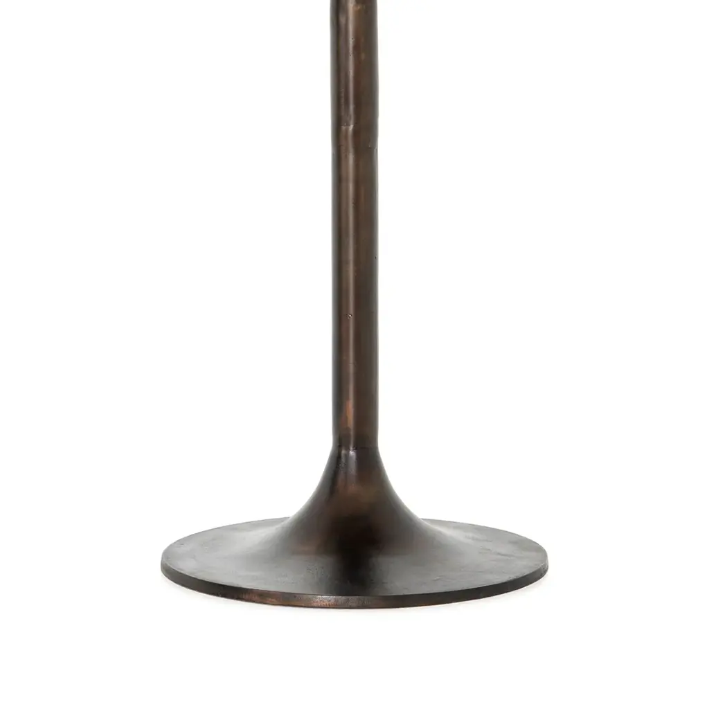 Classic tulip shaping in textural cast-aluminum makes for a modern counter table. Finished in a raw antique rust or nickel to bring out alluring highs and lows, indoors or out. Cover or store inside during inclement weather and when not in use. In Stock Early February 2026 In Stock Early January 2026 Aluminum construction This image is for illustrative purposes only. The colors shown are accurate within the constraints of lighting, photography, and the color accuracy of your screen.