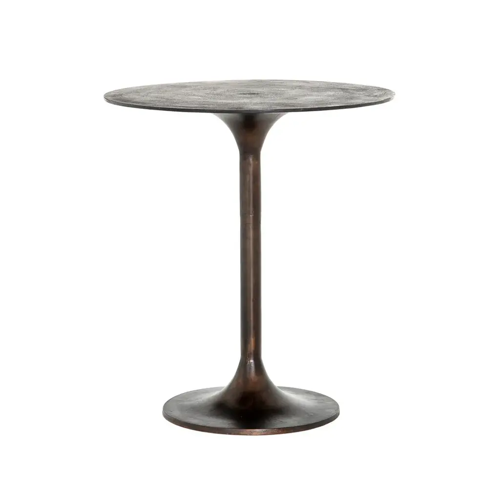 Classic tulip shaping in textural cast-aluminum makes for a modern counter table. Finished in a raw antique rust or nickel to bring out alluring highs and lows, indoors or out. Cover or store inside during inclement weather and when not in use. In Stock Early February 2026 In Stock Early January 2026 Aluminum construction This image is for illustrative purposes only. The colors shown are accurate within the constraints of lighting, photography, and the color accuracy of your screen.