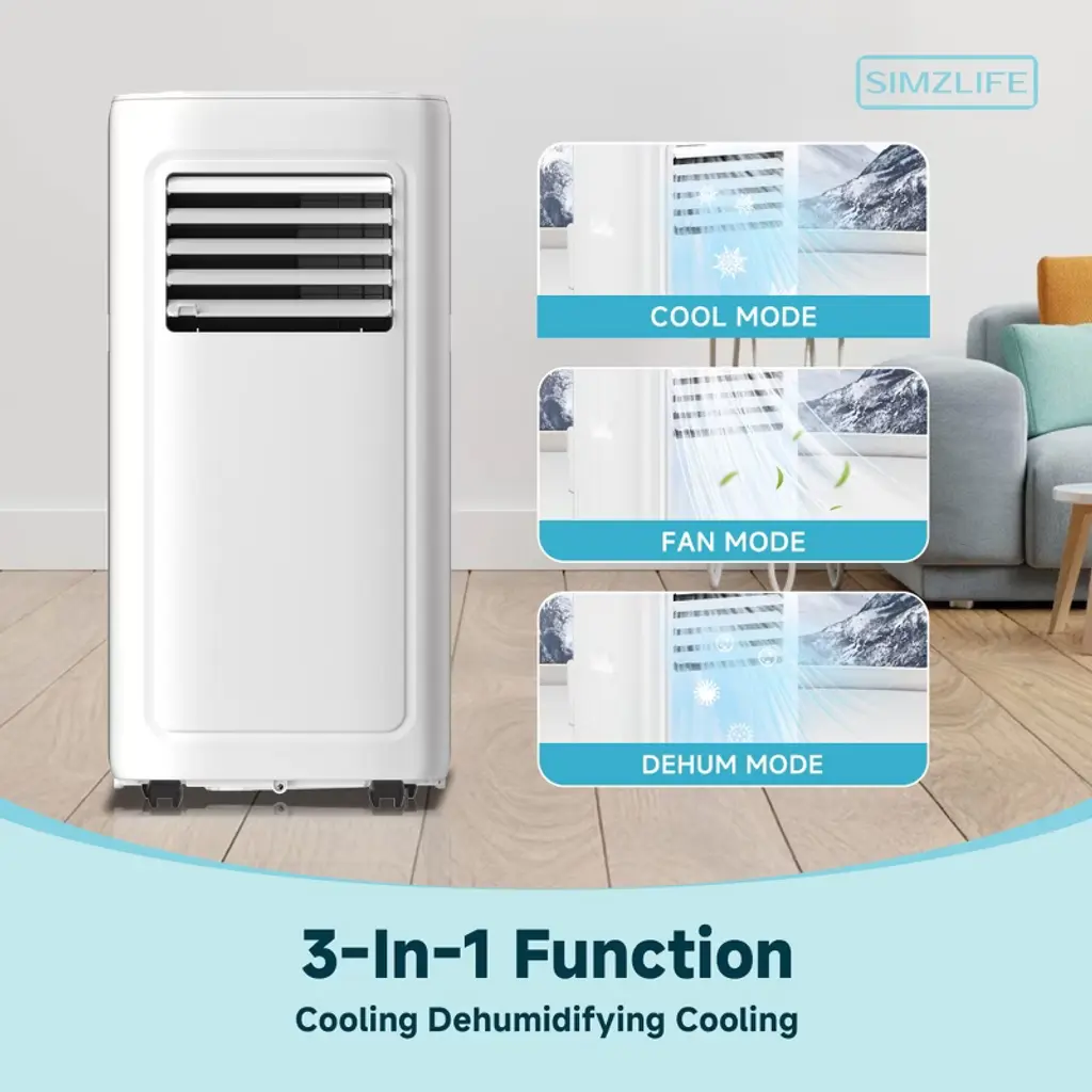 Simzlife Portable Air Conditioner 8000 Btu Ashrae , Dehumidifier, Fan,cool, 3 In 1 Ac With Remote Control