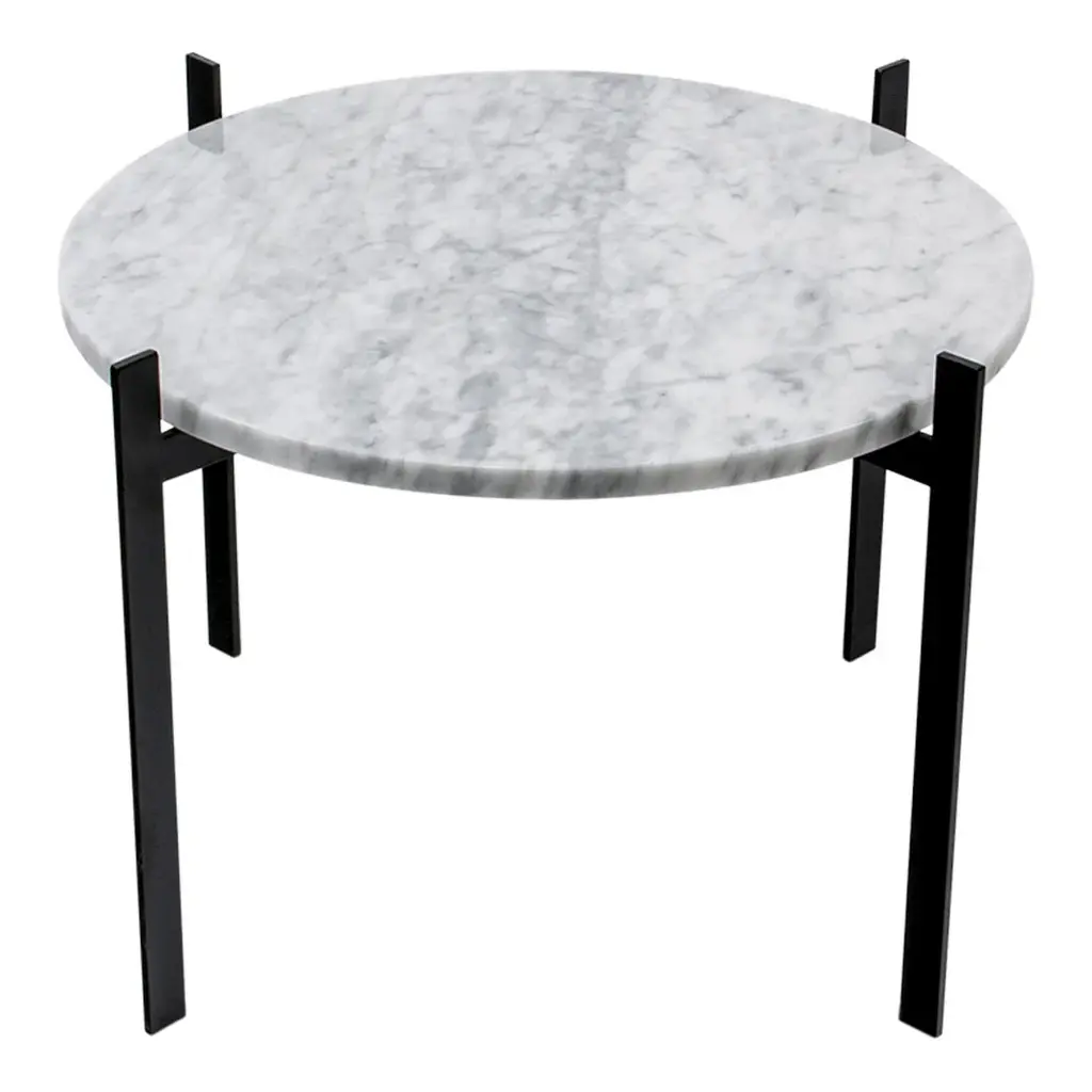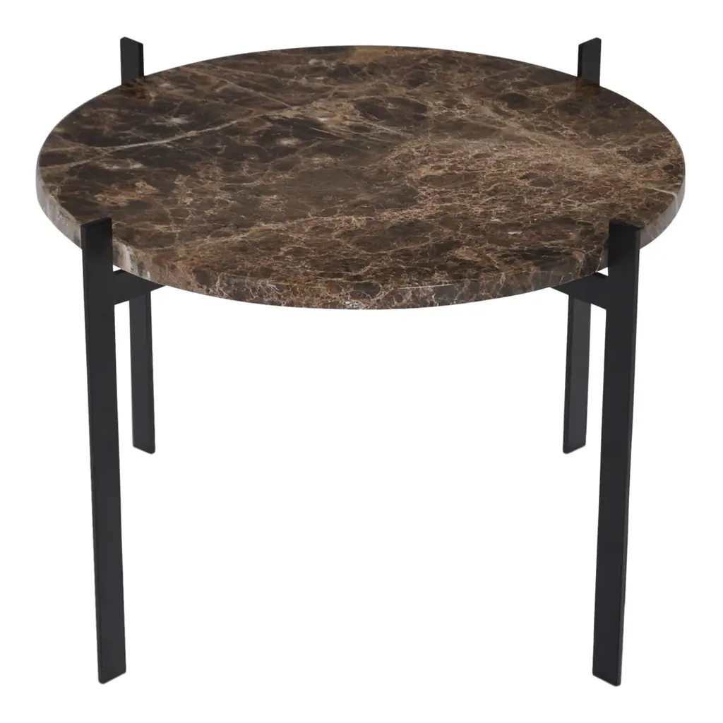 Frame made in powder coated steel or brass (steel with brass surface). Marble tops are to be screwed on to the metal frame. Glass tops can be clicked onto the frame. Leather tables will be delivered assembled. Table tops in Carrara Marble, Black Marquina, Green Indio, or Brown Emperador will exhibit natural variations in terms of colour, drawings and patterns characteristic for each type of marble. As for Carrara Marble, small cracks can sometimes be found on the polished surface. This phenomenon known as “taroli" is a natural characteristic of the stone, which cannot be eliminated completely. Leather is handmade by skilled craftsmen using high-quality 100 % vegetable tanned aniline leather with a general thickness of 3 mm or more. Natural imperfections on leather surface must be accepted. With time, light and use, the leather will gain depth and lustre as it ages. Due to the highly artisan process used and variation in the natural raw material, leather can wary quite significantly in colour between production batches.