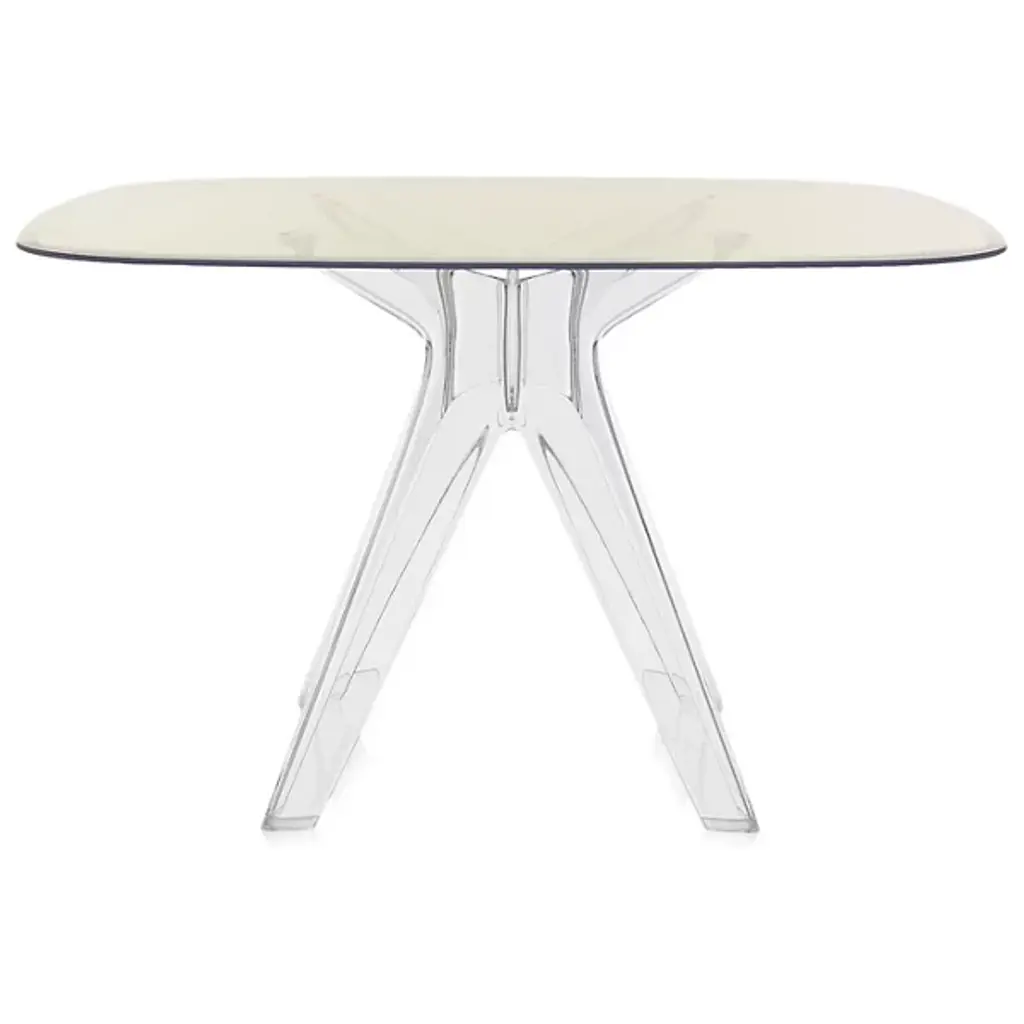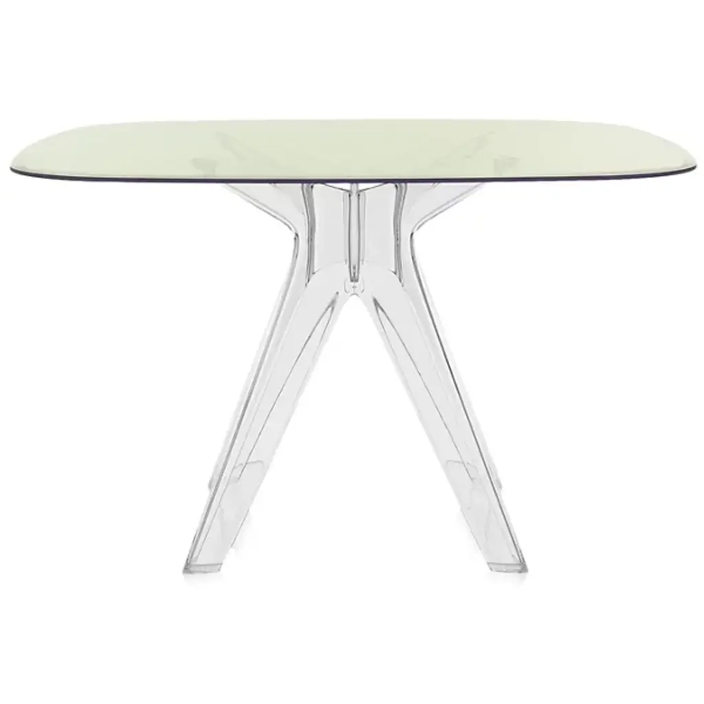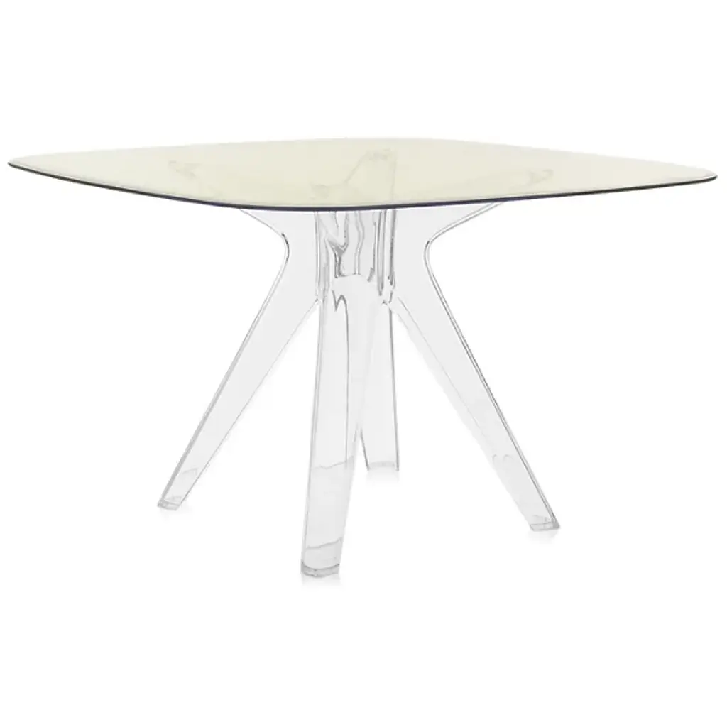 The Sir Gio Table by Philippe Starck features a contemporary design with a top made of laminated crystal. The Sir Gio Table top is available in a variety of modern finishes combined with a base in smoke or transparent. The Sir Gio Table features a square table top that will enhance any room.