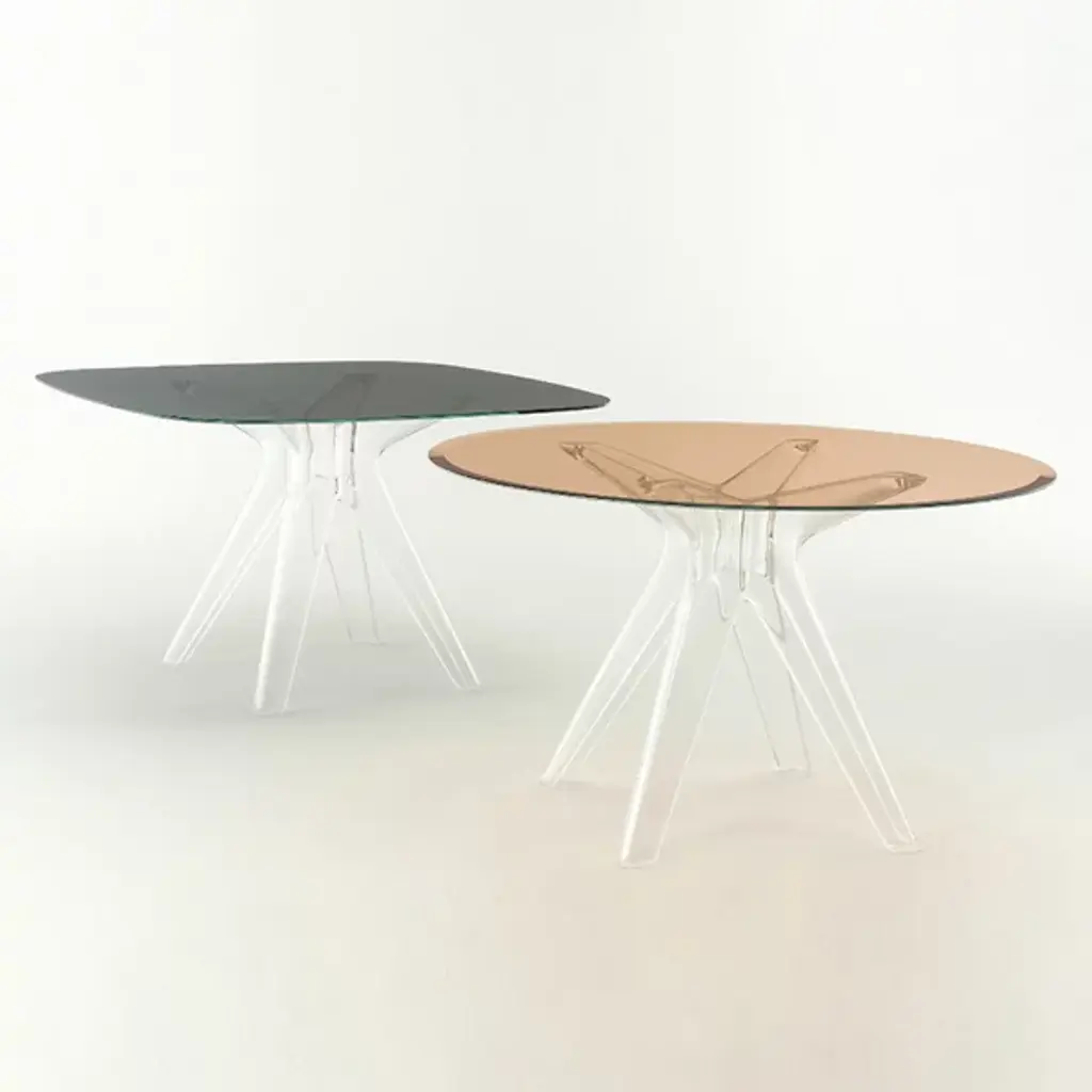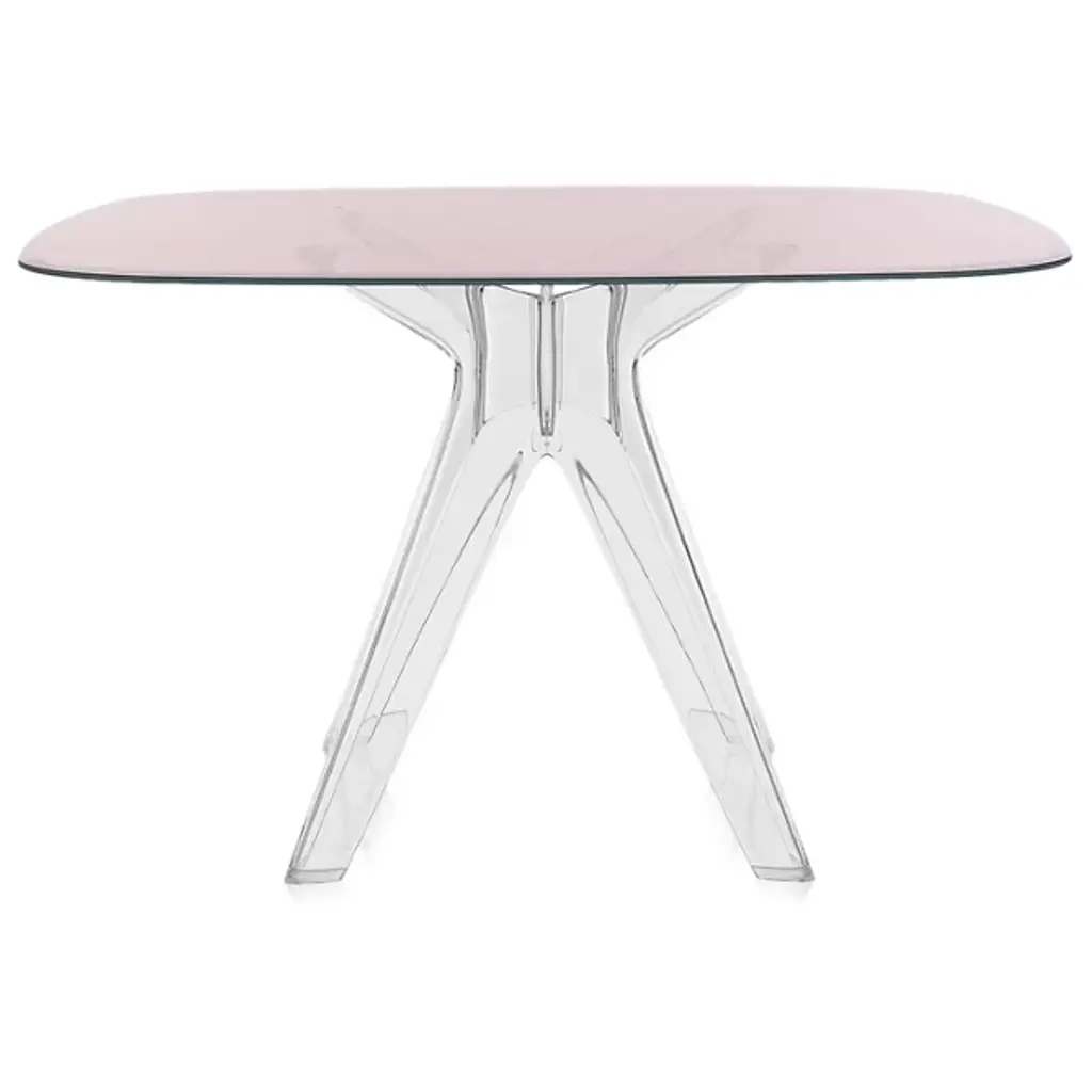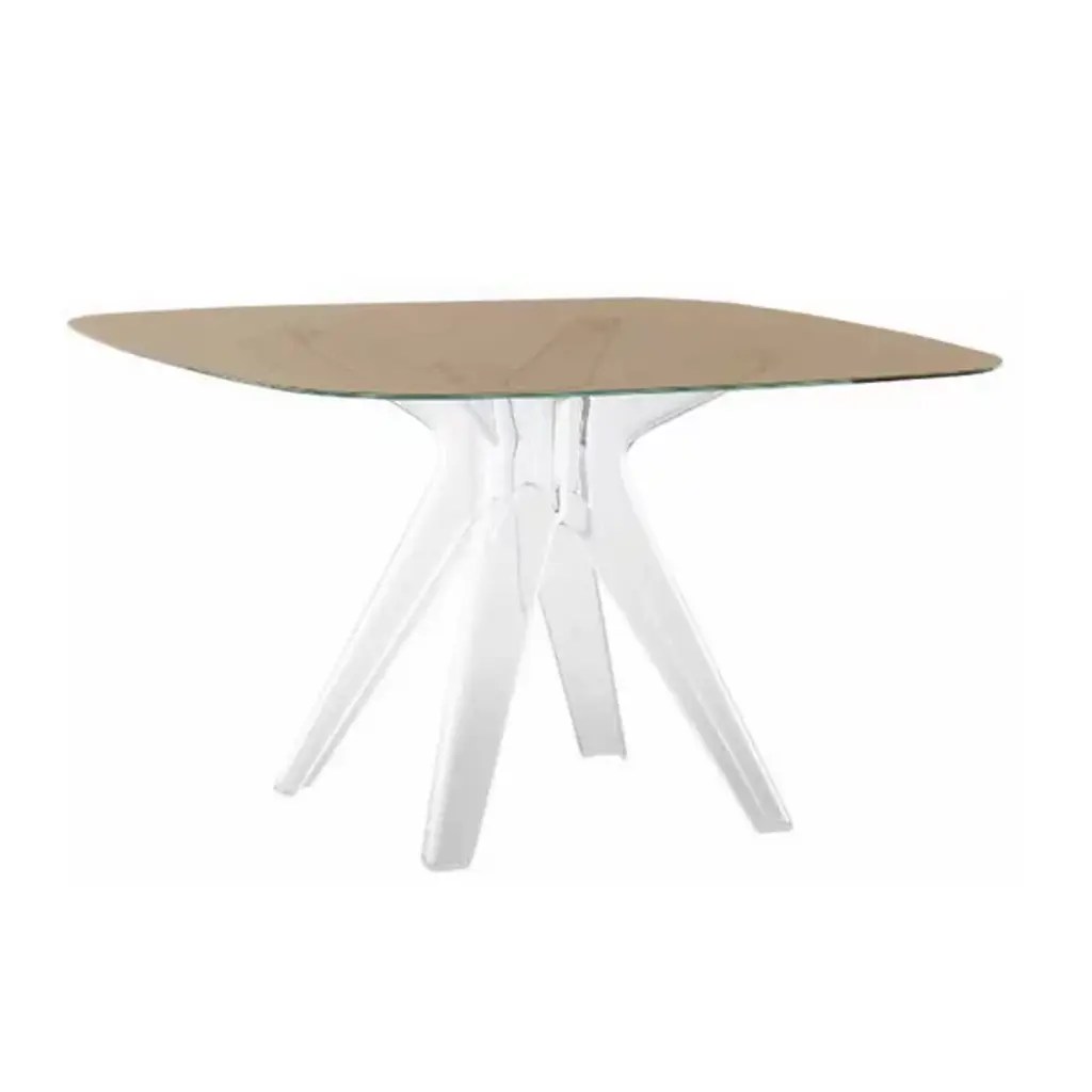 The Sir Gio Table by Philippe Starck features a contemporary design with a top made of laminated crystal. The Sir Gio Table top is available in a variety of modern finishes combined with a base in smoke or transparent. The Sir Gio Table features a square table top that will enhance any room.