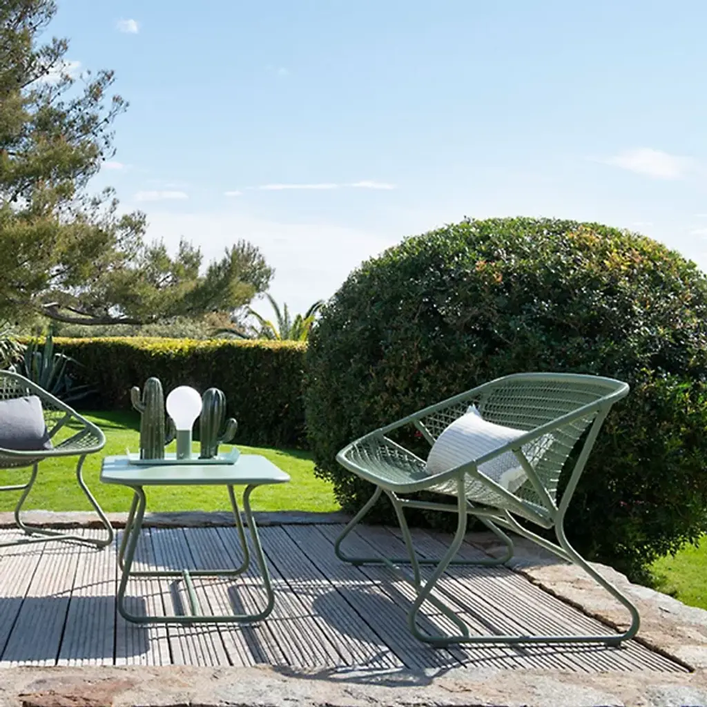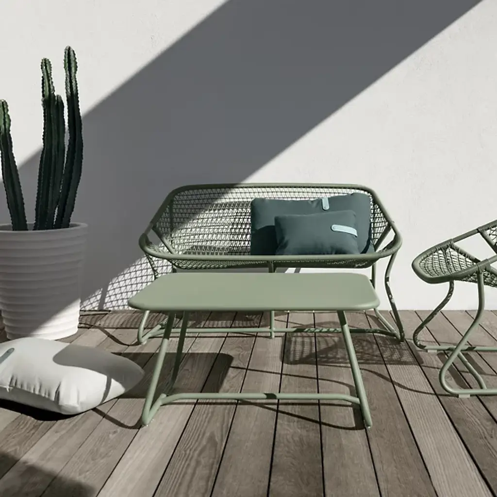 Light and compact, the Fermob Sixties Low Table is the perfect complement to the laidback Sixties Armchair. It features the collection's clean lines and open, airy curves, with a lightweight yet sturdy tubular aluminum frame supporting a smooth steel top. The table is available in all Fermob colors.
