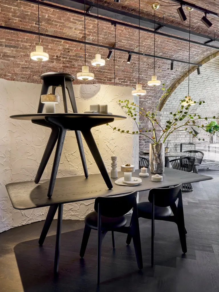 The Slab round table, part of the Slab collection, showcases the natural beauty of sustainably sourced oak. It features generous proportions, a gently rounded edge, and a deeply brushed surface that exposes the wood's natural grain, adding a unique, refined character to any space.