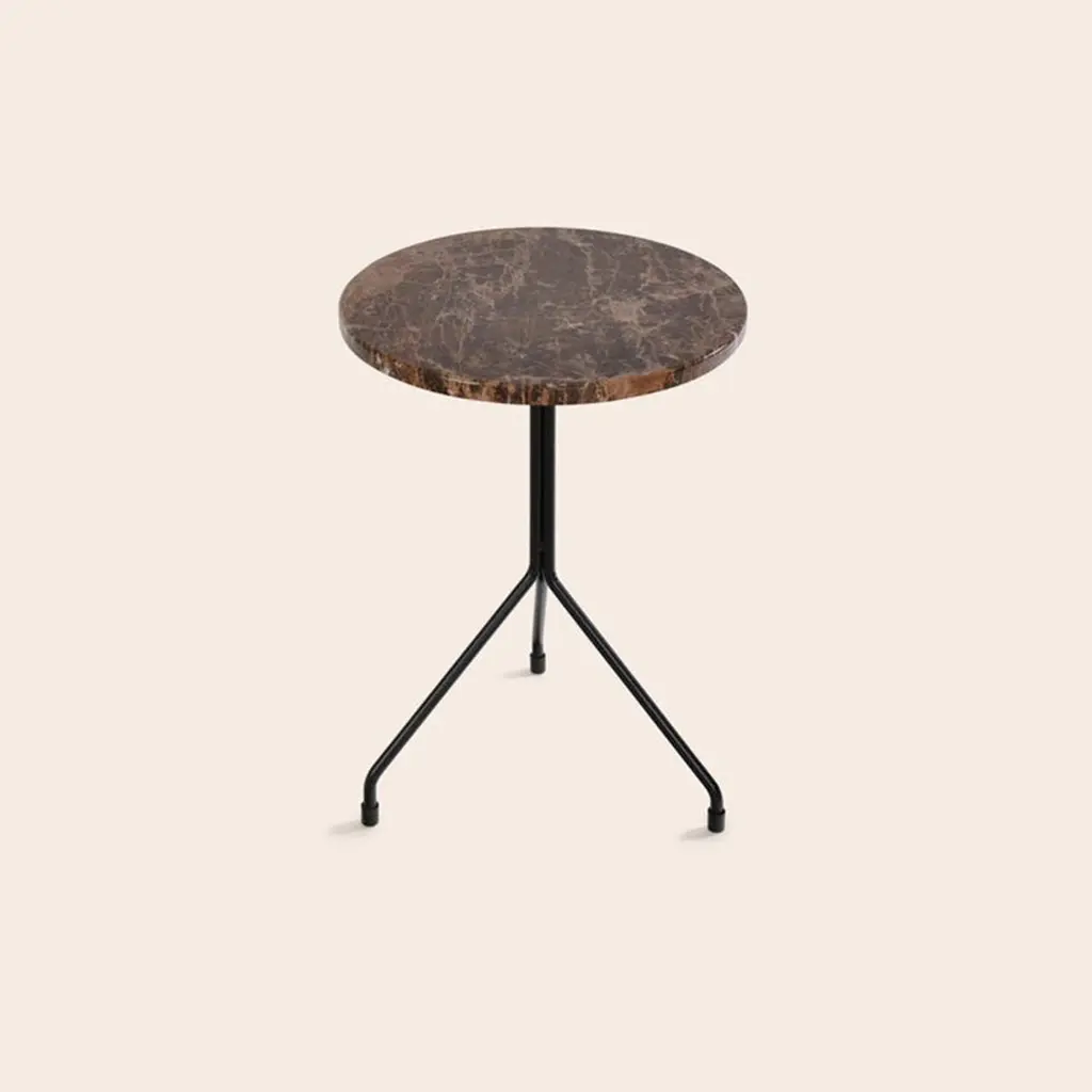 Small All For One Brown Emperador Marble Table by OxDenmarqDimensions: D 40 x H 48 cmMaterials: Steel, Brown Emperador MarbleAlso Available: Different marble options availableOX DENMARQ is a Danish design brand aspiring to make beautiful handmade furniture, accessories and lighting in natural high-quality materials in fair prices. " When we set out back in 2003, we were primarily working with vegetable-tanned saddle leather thus the name OX was a tribute to our unique leather and the animal providing it.The other half of our name, DENMARQ, is chosen to emphasize that we are a Danish design brand based on the Danish design tradition and that most of our furniture is produced in Denmark. However, DENMARQ not only refers to our home country, but also to the co-founder and designer - DENnis MARQuart.Before finishing his design studies at the Copenhagen Design University, Dennis Marquart did a Blacksmith education. This background is extremely useful when developing and designing products."OX DENMARQ handmade products will only get more beautiful as time passes and natural patina sets in.Many OX products are shaped around marble or vegetable-tanned saddle leather. Stone and leather are materials that will, and should, get marks over time. But they will also age with a very special beauty. When you learn to appreciate the beauty of maturity and of time passing, you have learned to appreciate patina the way it should be appreciated.