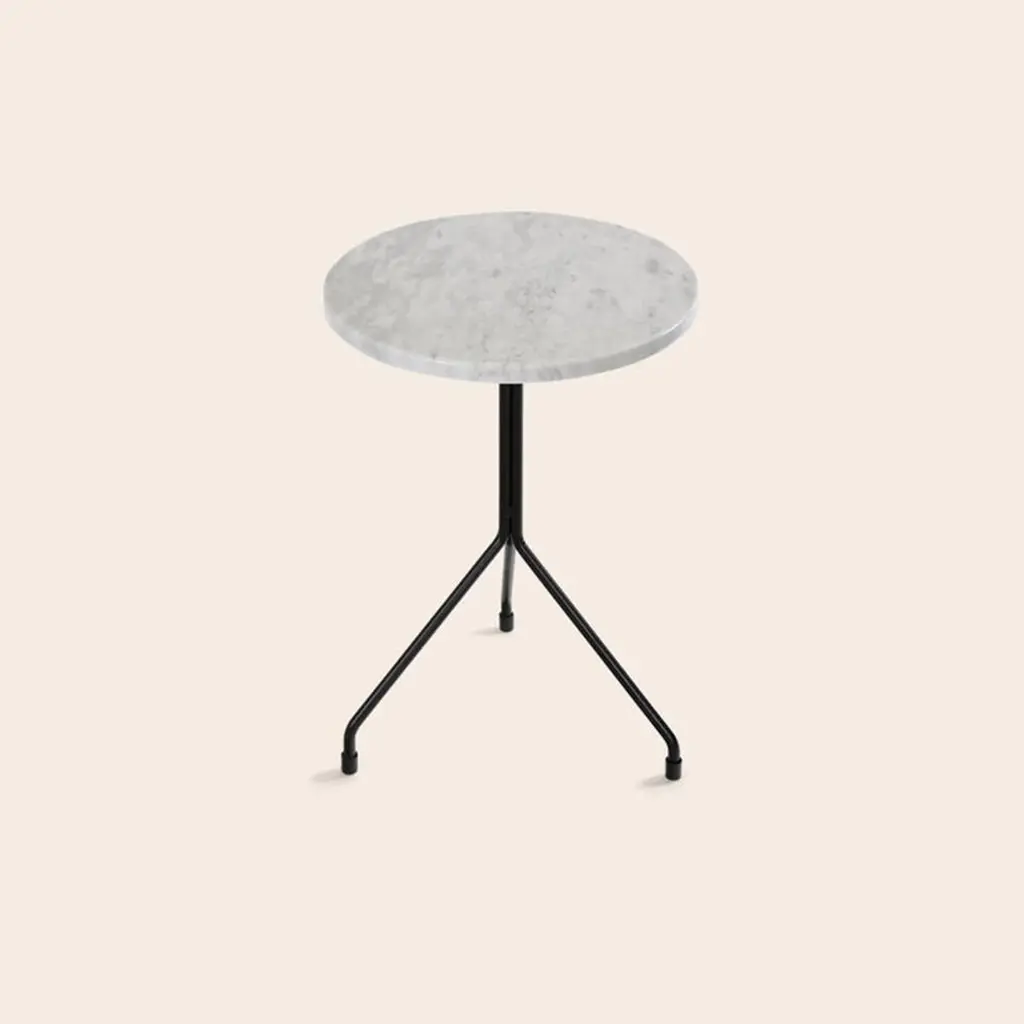Small all for one white Carrara marble table by OxDenmarqDimensions: D 40 x H 48 cmMaterials: Steel, white Carrara marbleAlso Available: Different marble options available.OX DENMARQ is a Danish design brand aspiring to make beautiful handmade furniture, accessories and lighting in natural high-quality materials in fair prices. "When we set out back in 2003, we were primarily working with vegetable-tanned saddle leather thus the name OX was a tribute to our unique leather and the animal providing it.The other half of our name, DENMARQ, is chosen to emphasize that we are a Danish design brand based on the Danish design tradition and that most of our furniture is produced in Denmark. However, DENMARQ not only refers to our home country, but also to the co-founder and designer - Dennis Marquart.Before finishing his design studies at the Copenhagen Design University, Dennis Marquart did a Blacksmith education. This background is extremely useful when developing and designing products."OX DENMARQ handmade products will only get more beautiful as time passes and natural patina sets in.Many OX products are shaped around marble or vegetable-tanned saddle leather. Stone and leather are materials that will, and should, get marks over time. But they will also age with a very special beauty. When you learn to appreciate the beauty of maturity and of time passing, you have learned to appreciate patina the way it should be appreciated.