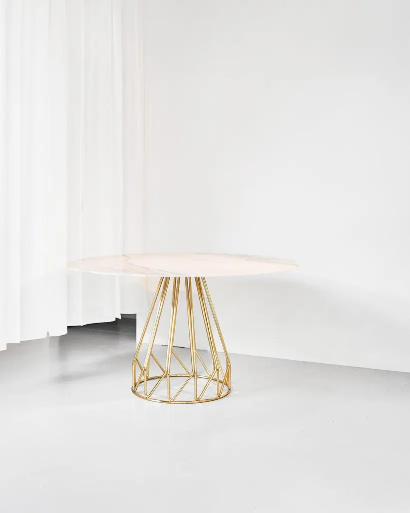 Small Madama Table by GIROTTI ENRICODimensions: D 80 x H 75 cmMaterials: Steel, Marble.Weight: 40 Kg.Enrico Girotti is an industrial designer who has found in the word “maker” his most authentic form of expression. Graduated in Industrial Design from the IUAV University of Venice, in his creations, he has established a strong connection between the creative and production processes, blending technical training with his personal research. He expresses himself in a continuous analog cross- disciplinary exchange between functions and forms. He engages in design both in the industrial and artisanal realms, striving to bring forth and incorporate the hidden connections between the concept, the context, and the people in the physical manifestation of the object. This integrated process, in which every occurrence is not random, rejects randomness. In 2017, he founded the brand lapiegaWD , as a direct and unmediated design initiative. This brand represents an ever-evolving synthesis of his research on materials, processes, forms, and relationships. In 2023, he founded EDIZIONI ENRICO GIROTTI, a platform to freely experiment with techniques, craftsmanship, and design, creating small series, uniquely numbered pieces, and advanced customizations of lapiega products, as well as pre-series.