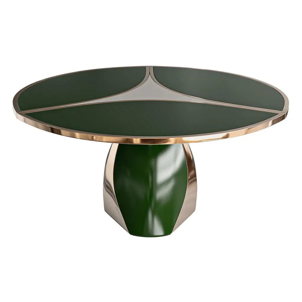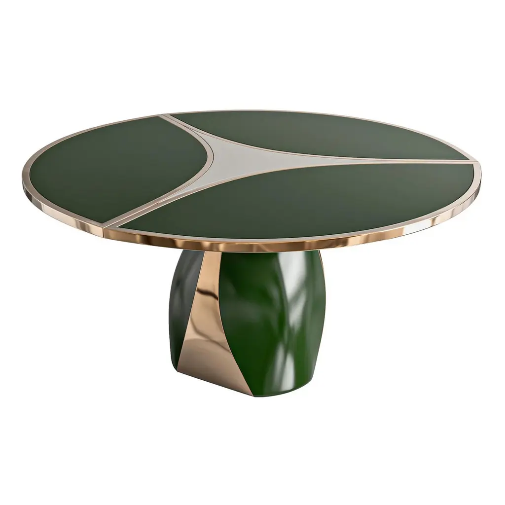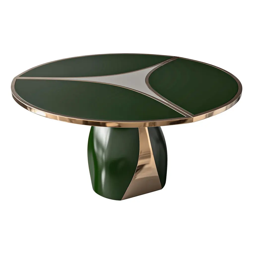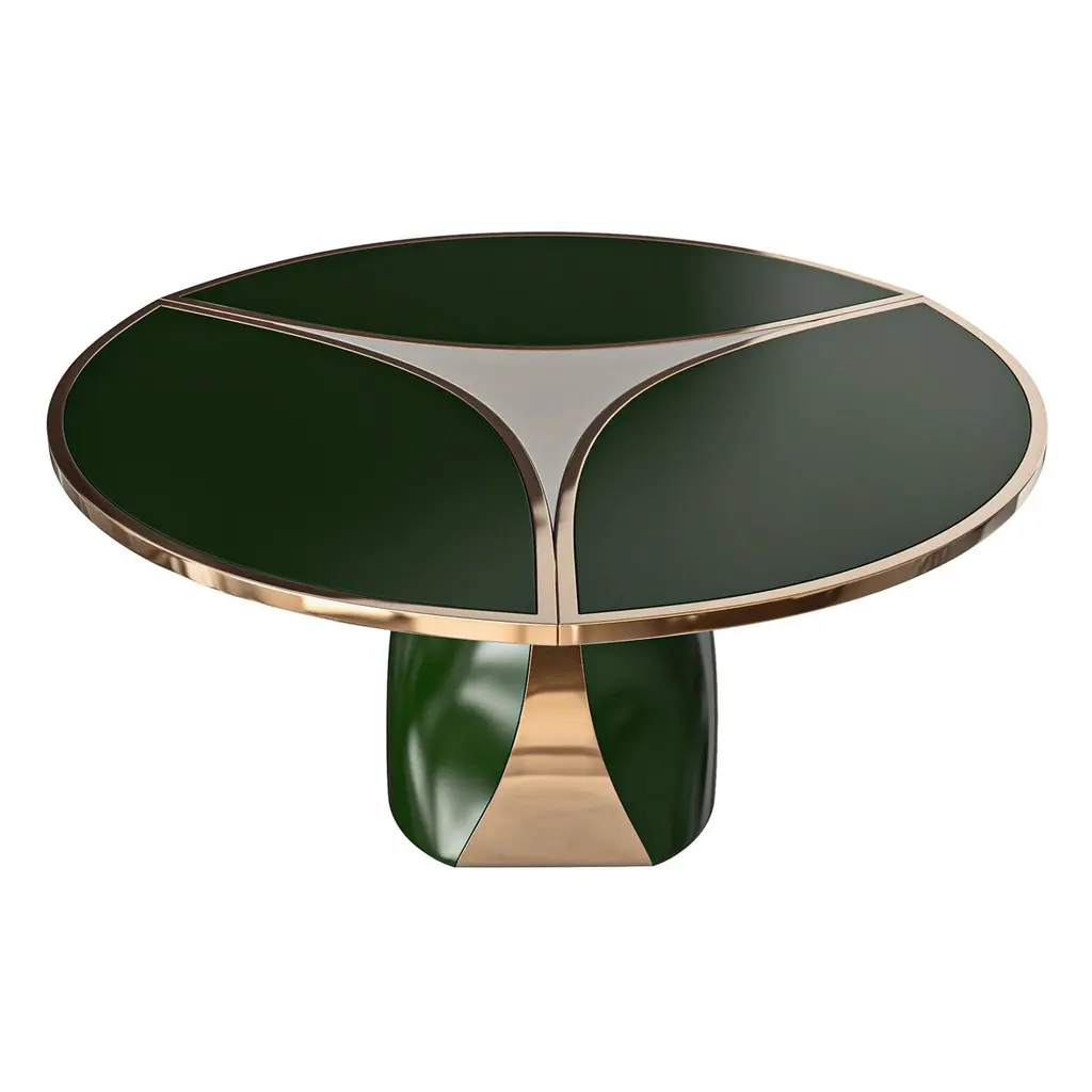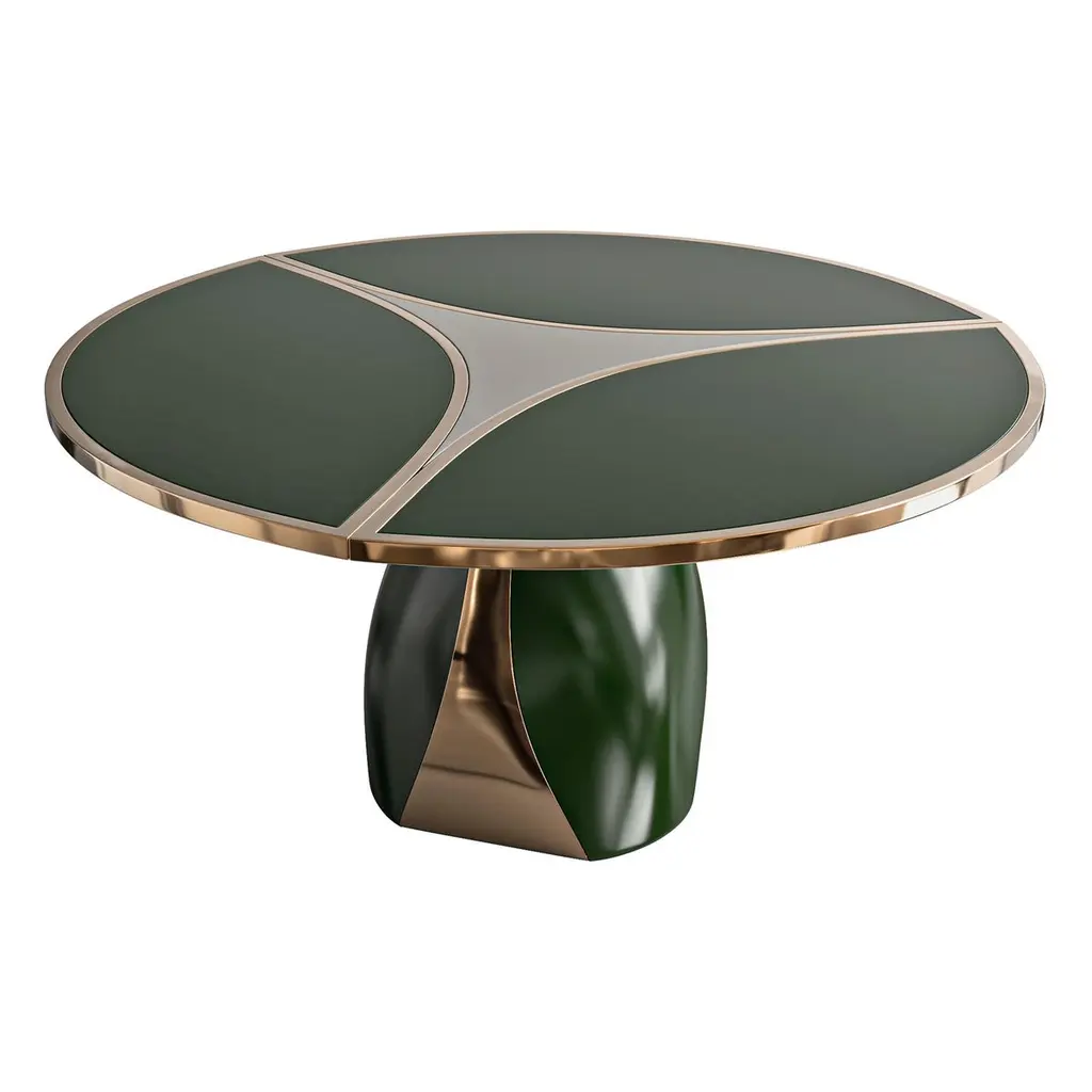 "Sogno" Round Table With Stainless Steel And Bronze, Handmade, Istanbul