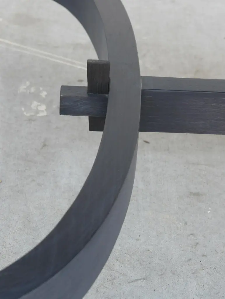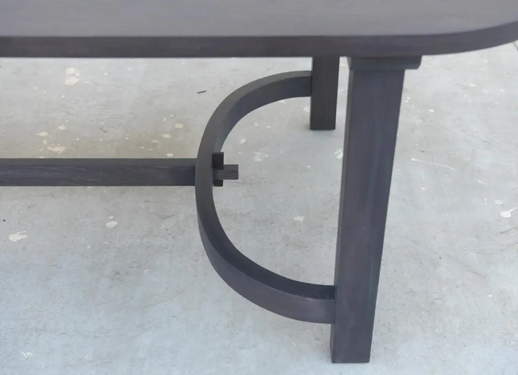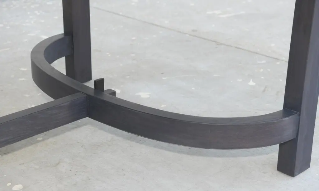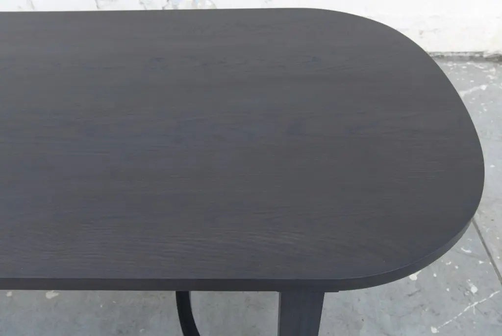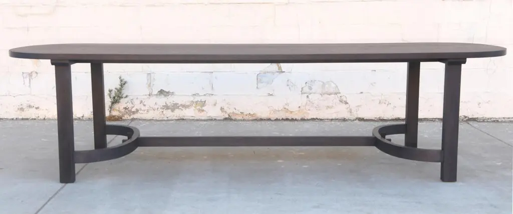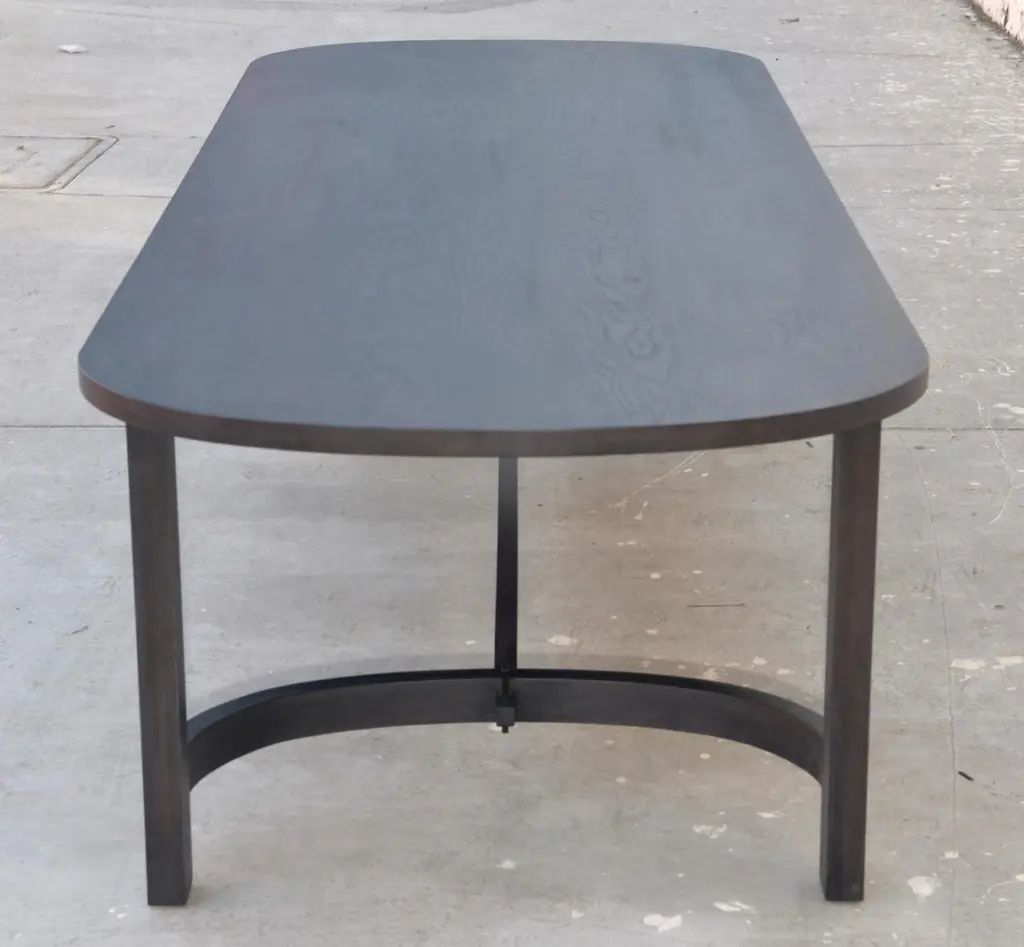 This ebonized racetrack table, designed in collaboration with Jake Alexander Arnold, is seen here in 120" x 42" however it can be built in any size. Because each table is bench-made in our own Los Angeles workshop you can influence all aspects of design, including size, wood species and finish. We use only traditional carpentry techniques, no nails or metal fasteners of any kind. Just mortise and tenon construction reinforced with hand-cut wooden dowels.
