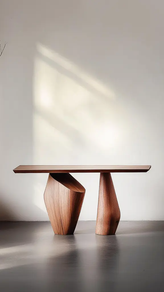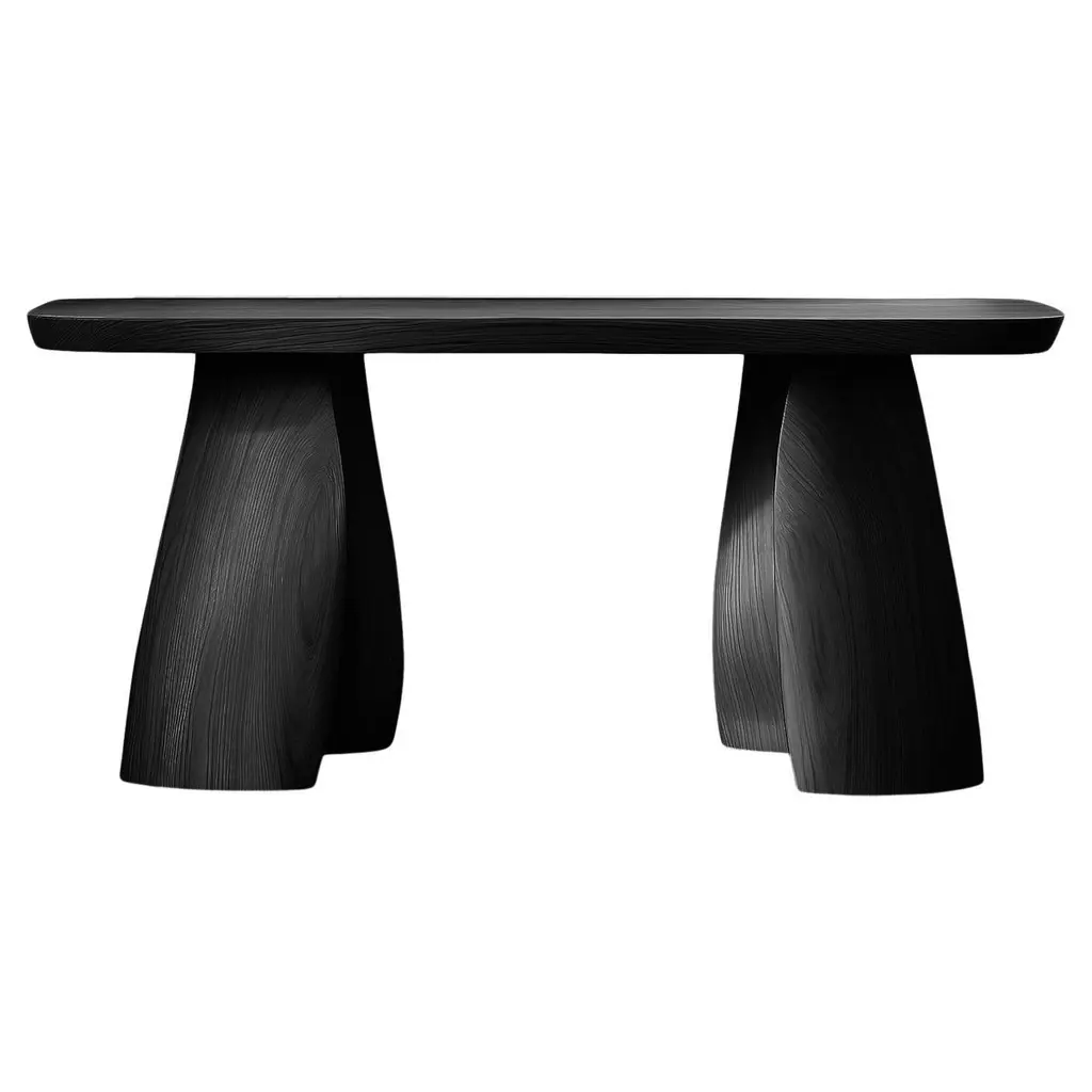 Solace No22 Narrow Entry Table – Sculptural Simplicity, by NONO—————————————————————Solace Console Table Series Design by Joel EscalonaThe Solace console table series, designed by Joel Escalona, embodies a quiet sense of balance and presence. With its sculptural legs and fluid contours, each table is a bold statement of form—where function yields to expression. More than furniture, these pieces exist as poetic objects in space.Inspired by Isamu Noguchi’s iconic Pigeon sculpture, the Solace series pays tribute to the fusion of traditional craftsmanship and modern abstraction. Echoing the curves and tensions found in Noguchi’s work, the silhouette of each table evokes a carved, organic form frozen mid-motion.Crafted in solid wood and produced one by one in our Mexico City workshop, each table carries its own subtle variations in tone, grain, and shape—enhancing its individuality. The natural qualities of the material, shaped by time and touch, make every piece a singular presence.Ideal for hallways, foyers, and living spaces, these console tables offer more than utility—they bring a sculptural rhythm to the room. Production time is 7–9 weeks, allowing for the precision and care that each unique piece deserves.—NONO is a Mexican design brand with more than 10 years of experience dedicated to the production of interior furnishings, editions, and custom-made projects. At NONO, we create pieces of extraordinary beauty, accommodating the particular needs and tastes of each client with exclusive high-quality designs.—Some details to consider when placing an order with us:• Catalog images are digitally generated. Actual products may slightly vary in texture, grain, and final finish due to natural material differences. Despite these variations, our expertise ensures each piece maintains high quality and matches the intended design.• All of our products are made to order, and the lead time for standard products is estimated to be 9 to 12 weeks, plus shipping time. However, special pieces or sculptures may require a longer lead time.• We offer customization in dimensions and finish for all of our furniture pieces, which may result in additional charges.• We only facilitate freight services by a third party. The client is solely responsible for any associated import/export taxes, as well as any necessary customs paperwork.• We are not responsible for any damages that may occur during shipping or for any customs-related delays.