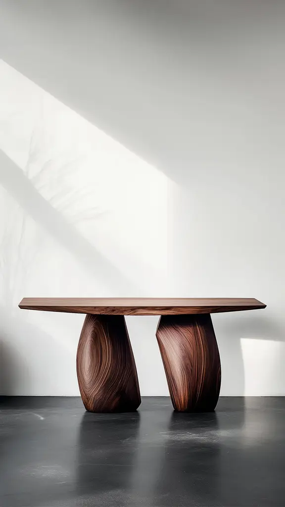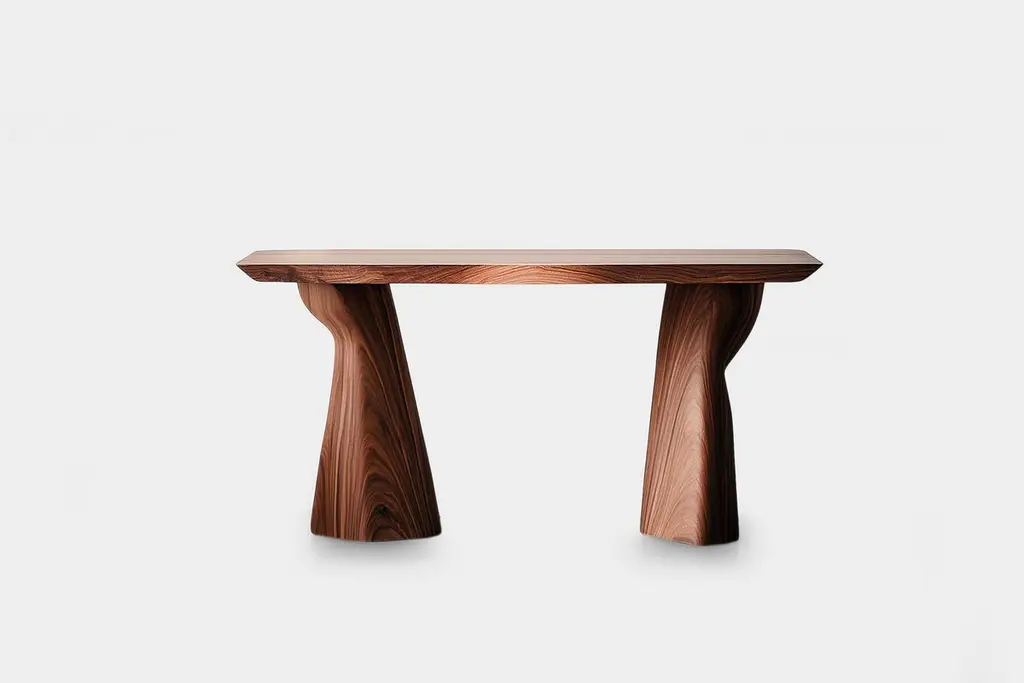Solace No29 Wall Table – Subtle Curved Base in Wood, by NONO—————————————————————Solace Console Table Series Design by Joel EscalonaThe Solace console table series, designed by Joel Escalona, embodies a quiet sense of balance and presence. With its sculptural legs and fluid contours, each table is a bold statement of form—where function yields to expression. More than furniture, these pieces exist as poetic objects in space.Inspired by Isamu Noguchi’s iconic Pigeon sculpture, the Solace series pays tribute to the fusion of traditional craftsmanship and modern abstraction. Echoing the curves and tensions found in Noguchi’s work, the silhouette of each table evokes a carved, organic form frozen mid-motion.Crafted in solid wood and produced one by one in our Mexico City workshop, each table carries its own subtle variations in tone, grain, and shape—enhancing its individuality. The natural qualities of the material, shaped by time and touch, make every piece a singular presence.Ideal for hallways, foyers, and living spaces, these console tables offer more than utility—they bring a sculptural rhythm to the room. Production time is 7–9 weeks, allowing for the precision and care that each unique piece deserves.—NONO is a Mexican design brand with more than 10 years of experience dedicated to the production of interior furnishings, editions, and custom-made projects. At NONO, we create pieces of extraordinary beauty, accommodating the particular needs and tastes of each client with exclusive high-quality designs.—Some details to consider when placing an order with us:• Catalog images are digitally generated. Actual products may slightly vary in texture, grain, and final finish due to natural material differences. Despite these variations, our expertise ensures each piece maintains high quality and matches the intended design.• All of our products are made to order, and the lead time for standard products is estimated to be 9 to 12 weeks, plus shipping time. However, special pieces or sculptures may require a longer lead time.• We offer customization in dimensions and finish for all of our furniture pieces, which may result in additional charges.• We only facilitate freight services by a third party. The client is solely responsible for any associated import/export taxes, as well as any necessary customs paperwork.• We are not responsible for any damages that may occur during shipping or for any customs-related delays.