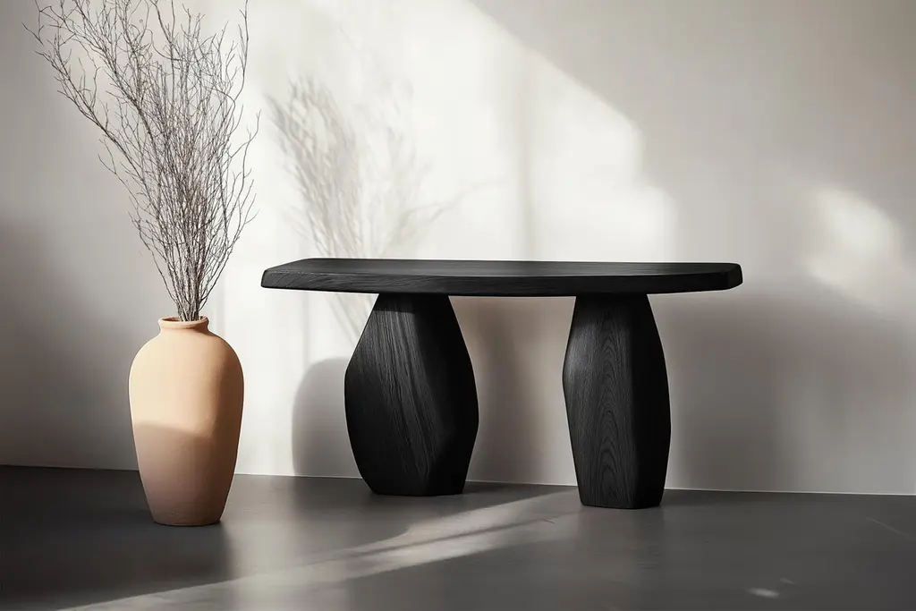 Solace No30 Display Table – Abstract Carved Form, by NONO—————————————————————Solace Console Table Series Design by Joel EscalonaThe Solace console table series, designed by Joel Escalona, embodies a quiet sense of balance and presence. With its sculptural legs and fluid contours, each table is a bold statement of form—where function yields to expression. More than furniture, these pieces exist as poetic objects in space.Inspired by Isamu Noguchi’s iconic Pigeon sculpture, the Solace series pays tribute to the fusion of traditional craftsmanship and modern abstraction. Echoing the curves and tensions found in Noguchi’s work, the silhouette of each table evokes a carved, organic form frozen mid-motion.Crafted in solid wood and produced one by one in our Mexico City workshop, each table carries its own subtle variations in tone, grain, and shape—enhancing its individuality. The natural qualities of the material, shaped by time and touch, make every piece a singular presence.Ideal for hallways, foyers, and living spaces, these console tables offer more than utility—they bring a sculptural rhythm to the room. Production time is 7–9 weeks, allowing for the precision and care that each unique piece deserves.—NONO is a Mexican design brand with more than 10 years of experience dedicated to the production of interior furnishings, editions, and custom-made projects. At NONO, we create pieces of extraordinary beauty, accommodating the particular needs and tastes of each client with exclusive high-quality designs.—Some details to consider when placing an order with us:• Catalog images are digitally generated. Actual products may slightly vary in texture, grain, and final finish due to natural material differences. Despite these variations, our expertise ensures each piece maintains high quality and matches the intended design.• All of our products are made to order, and the lead time for standard products is estimated to be 9 to 12 weeks, plus shipping time. However, special pieces or sculptures may require a longer lead time.• We offer customization in dimensions and finish for all of our furniture pieces, which may result in additional charges.• We only facilitate freight services by a third party. The client is solely responsible for any associated import/export taxes, as well as any necessary customs paperwork.• We are not responsible for any damages that may occur during shipping or for any customs-related delays.