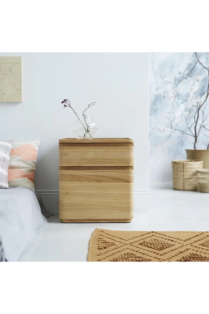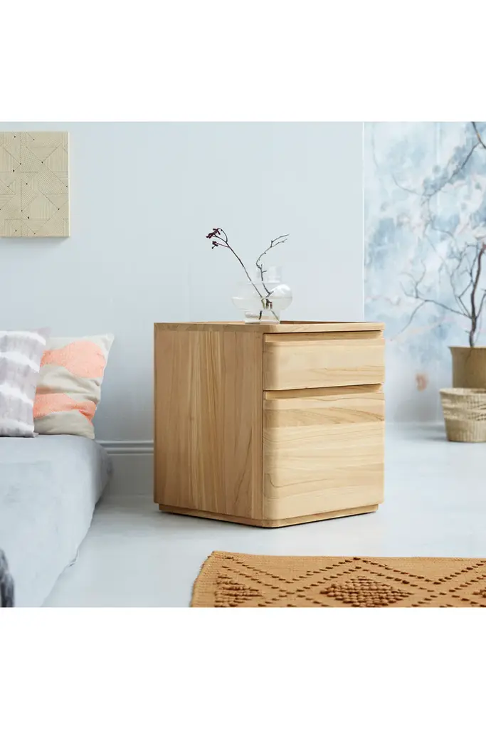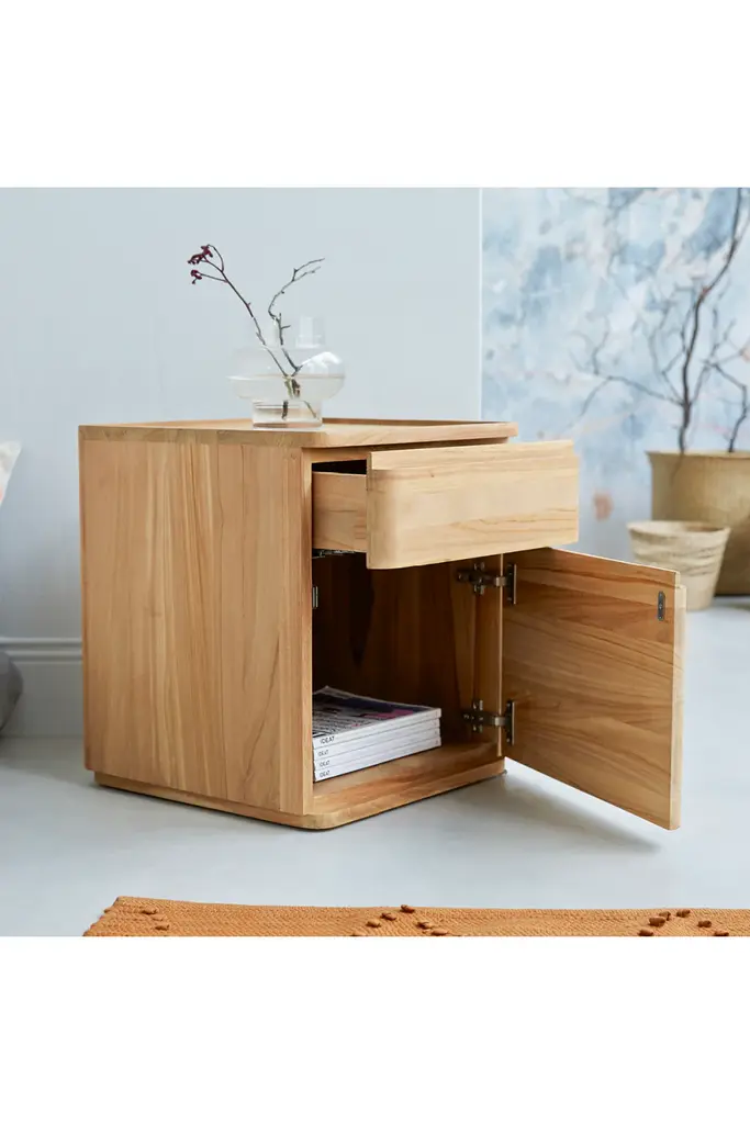 The Nino solid teak bedside table: always very popular because of its natural charm, light color, and ability to stand the test of time. Teak looks good in every room in the house! This small, attractive piece of furniture is perfect for storing magazines, books, glasses, and the other essentials you need within reach at bedtime. You'll love its soft lines and great storage capacity.