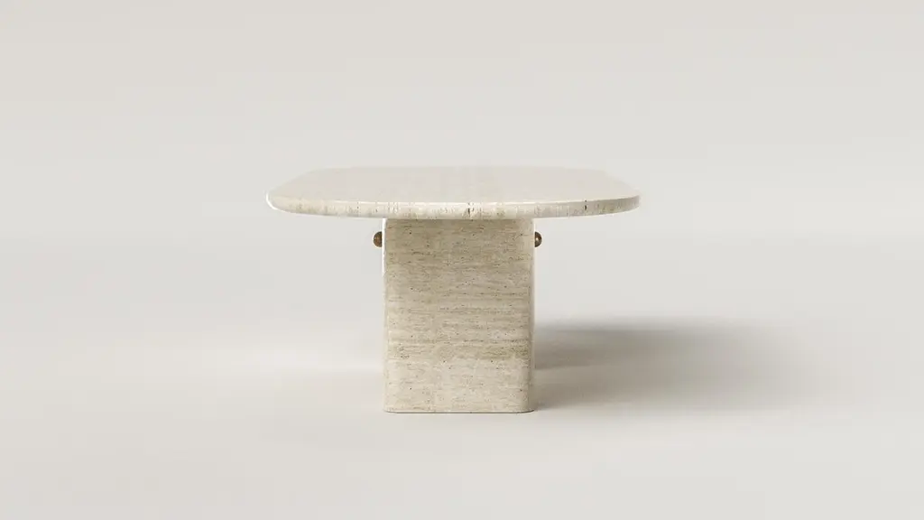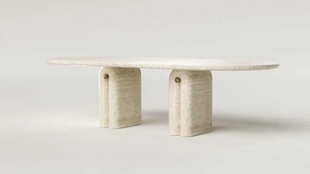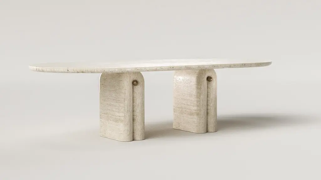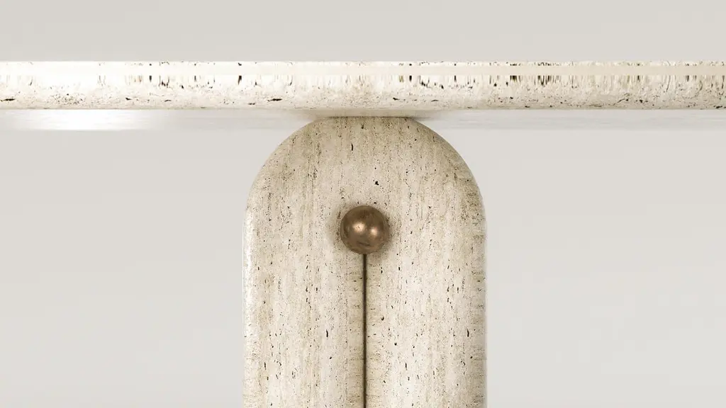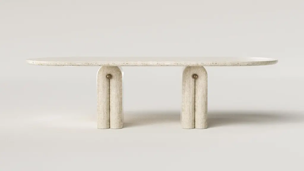 Solid Travertine & Brass Dining Pearl Table By Arthur Vallin