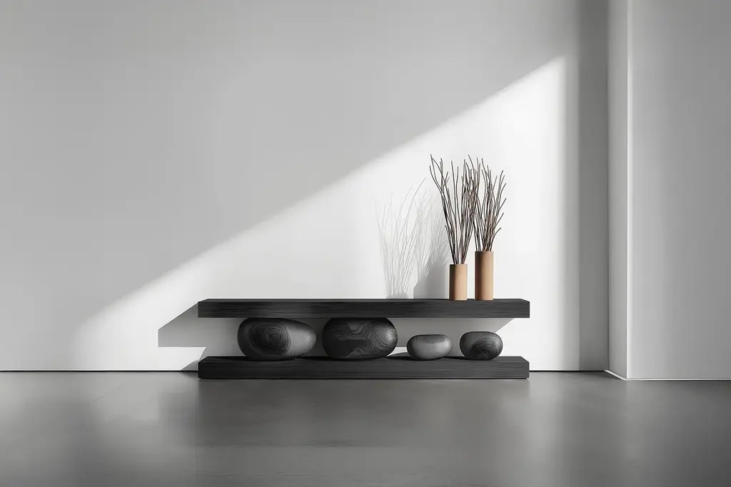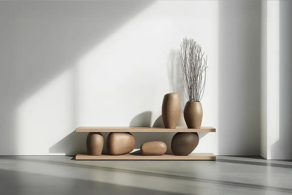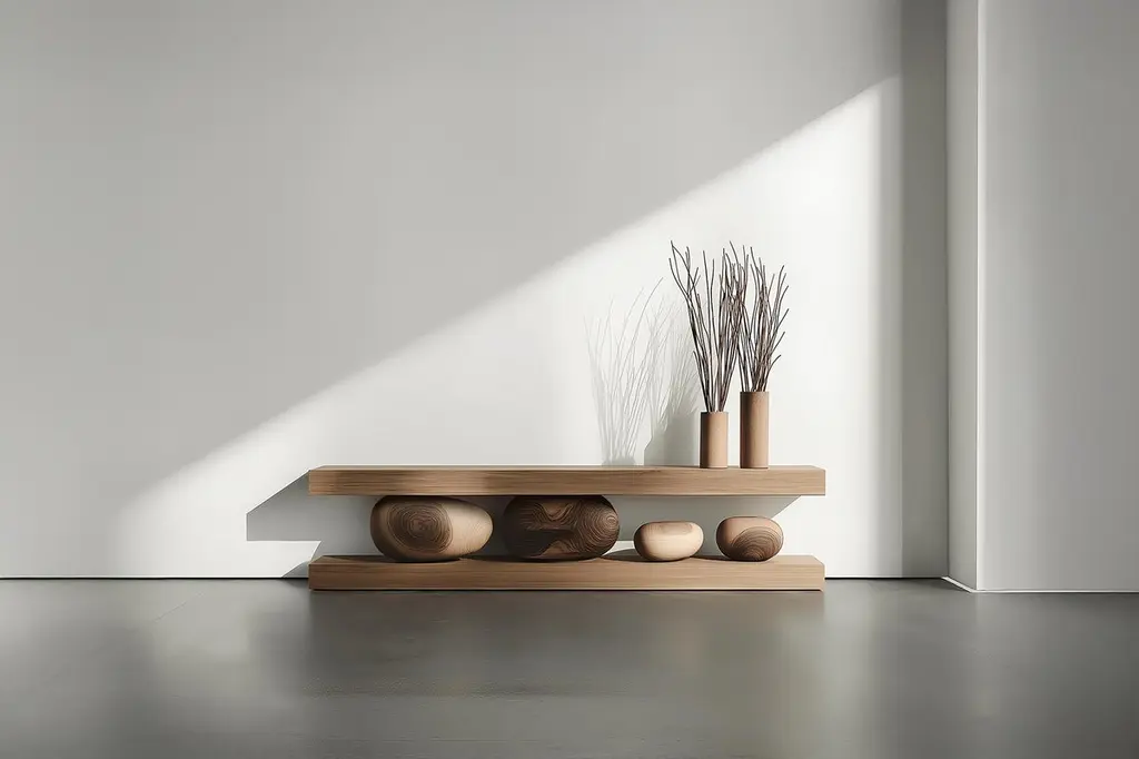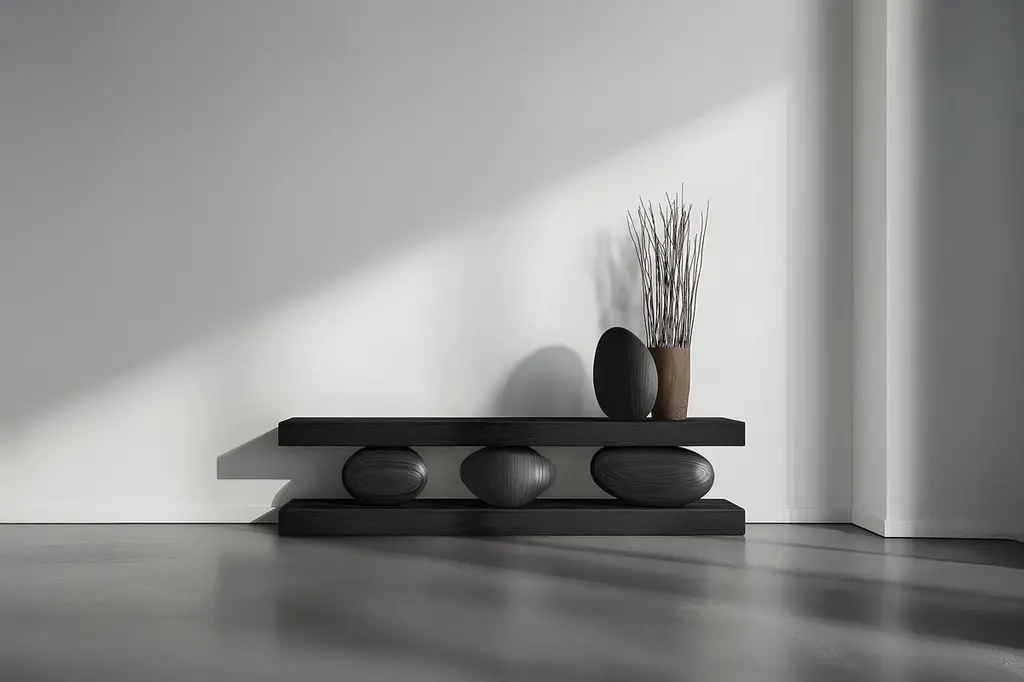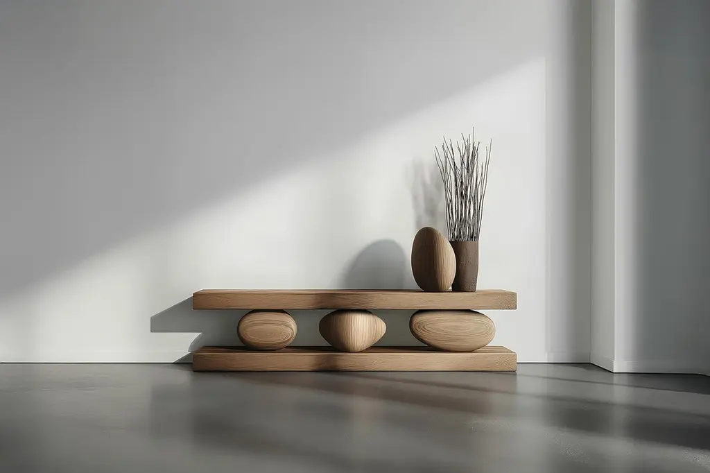 Solid Wood Console Table Sereno No22, Contemporary Furniture by NONO—Sereno CollectionDesign by Joel Escalona for NONOWhen practicality becomes art, the result is the Sereno Collection by Joel Escalona for NONO. This collection redefines tranquility through exquisite credenzas and sideboards that stand alone in their beauty, embodying a serene simplicity that everyone can feel.The Sereno Collection celebrates minimalism with pieces that don’t need additional decoration to make a statement. Each credenza and sideboard is adorned with unique wooden sculptures, reminiscent of a tranquil pebble, thoughtfully placed to enhance its elegance. These pieces are crafted from solid wood, adding character to each design. Standard models use red oak, but customization with various woods and finishes like walnut, teak, and burnt oak is available to perfectly suit your style and space.Founded in 2011 by Joel Escalona, NONO has over a decade of experience producing high-quality interior furnishings. Joel’s work transcends categorization, blending creativity, productivity, and introspection. His multifaceted approach, encompassing drawing and sculpture, infuses his designs with lyricism, humor, and poetry.NONO's philosophy centers on transforming everyday beauty into extraordinary art forms, seamlessly blending functionality and aesthetics. Each Sereno credenza and sideboard exemplifies this philosophy, offering both beauty and practicality. When you choose a piece from the Sereno Collection, you’re not just acquiring furniture; you’re bringing a piece of art into your home.Each piece in the Sereno Collection makes you feel serene and tranquil, embodying a minimalist elegance that doesn’t require additional ornamentation. The beauty of these designs is that they are complete in themselves. You don't need to add anything else to the compartments or surfaces; they stand alone, transforming any living room or interior project with their quiet sophistication.Experience the serene elegance of the Sereno Collection by Joel Escalona for NONO, where every piece speaks softly yet powerfully, transforming your space with its quiet beauty.———Some details to consider when placing an order with us:• Catalog images are digitally generated. Actual products may slightly vary in texture, grain, and final finish due to natural material differences. Despite these variations, our expertise ensures each piece maintains high quality and matches the intended design.• All of our products are made to order, and the lead time for standard products is estimated to be 9 to 12 weeks, plus shipping time. However, special pieces or sculptures may require a longer lead time.• We offer customization in dimensions and finish for all of our furniture pieces, which may result in additional charges.• We only facilitate freight services by a third party. The client is solely responsible for any associated import/export taxes, as well as any necessary customs paperwork.• We are not responsible for any damages that may occur during shipping or for any customs-related delays.