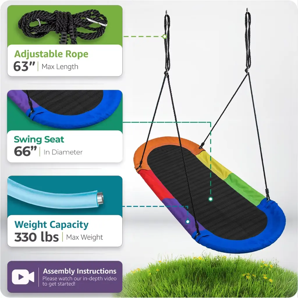 Provide a fun hang out space for kids to safely swing into action during play time, can be used as a chair swing for tree, hammock swing, nest swing chair and more to encourage imaginative play and balance. With it's quick and easy assembly it provides a secure installation.