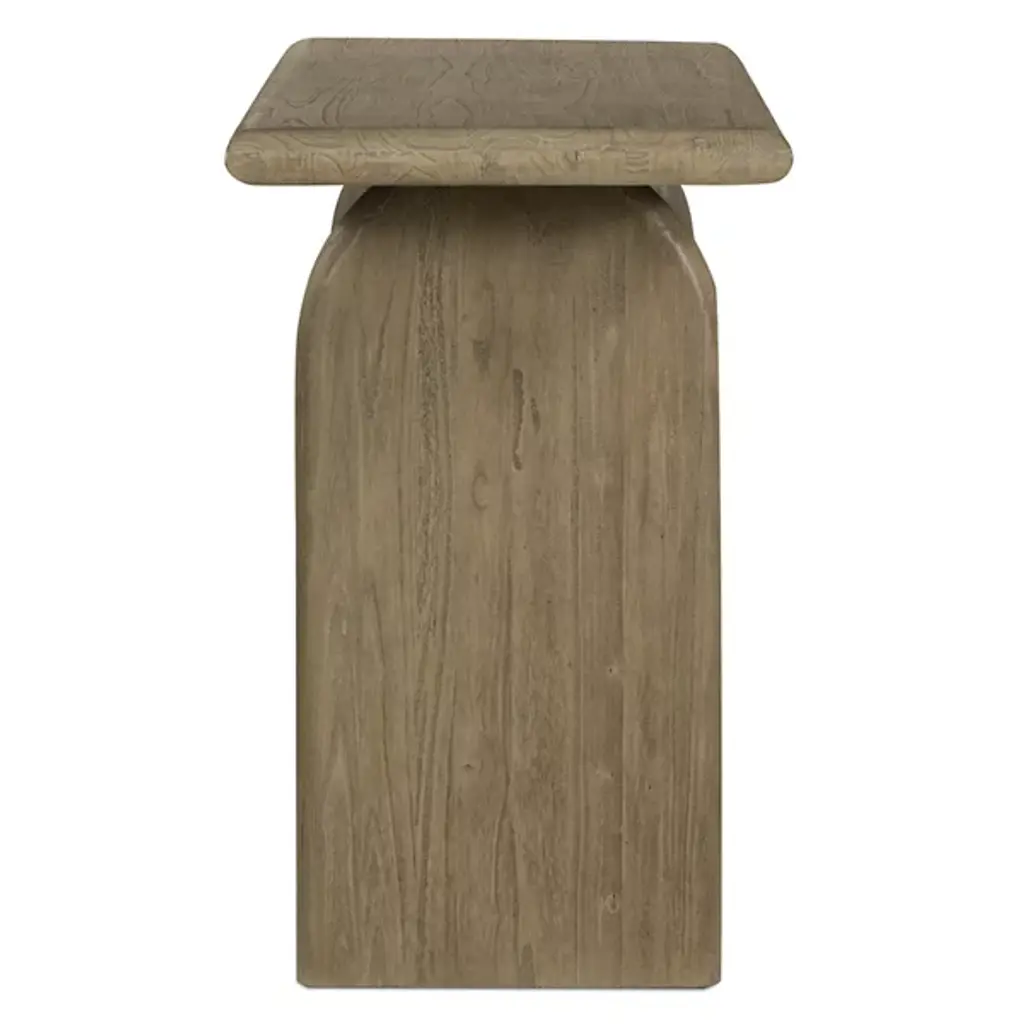 The Sorrento Console Table from Four Hands is a feat of contemporary design and a touch of natural allure. This console table effortlessly embodies both creative aesthetics and functionality, featuring a sturdy open frame adorned with dome-shaped legs that catch the eye. The rectangular tabletop offers not only ample display space but also a seamless backdrop for accessories and cherished mementos. Crafted from solid mindi, Sorrento beautifully balances durability with a genuine, natural look.