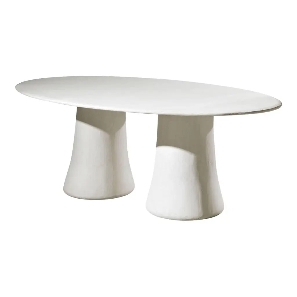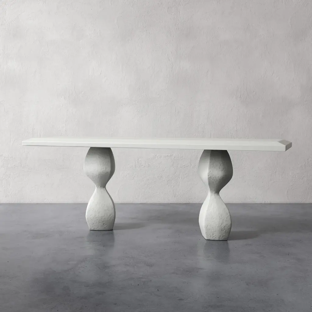 The Souple Sculptural Plaster Console Table showcases modern artistry with its two organically shaped, undulating legs that support a generously sized top surface. The wide faceted edge detail adds a bold, refined touch to the design, making it a striking focal point in any entryway or living space. Crafted with a balance of form and function, this console table brings a sense of sculptural elegance and contemporary sophistication to your home decor.