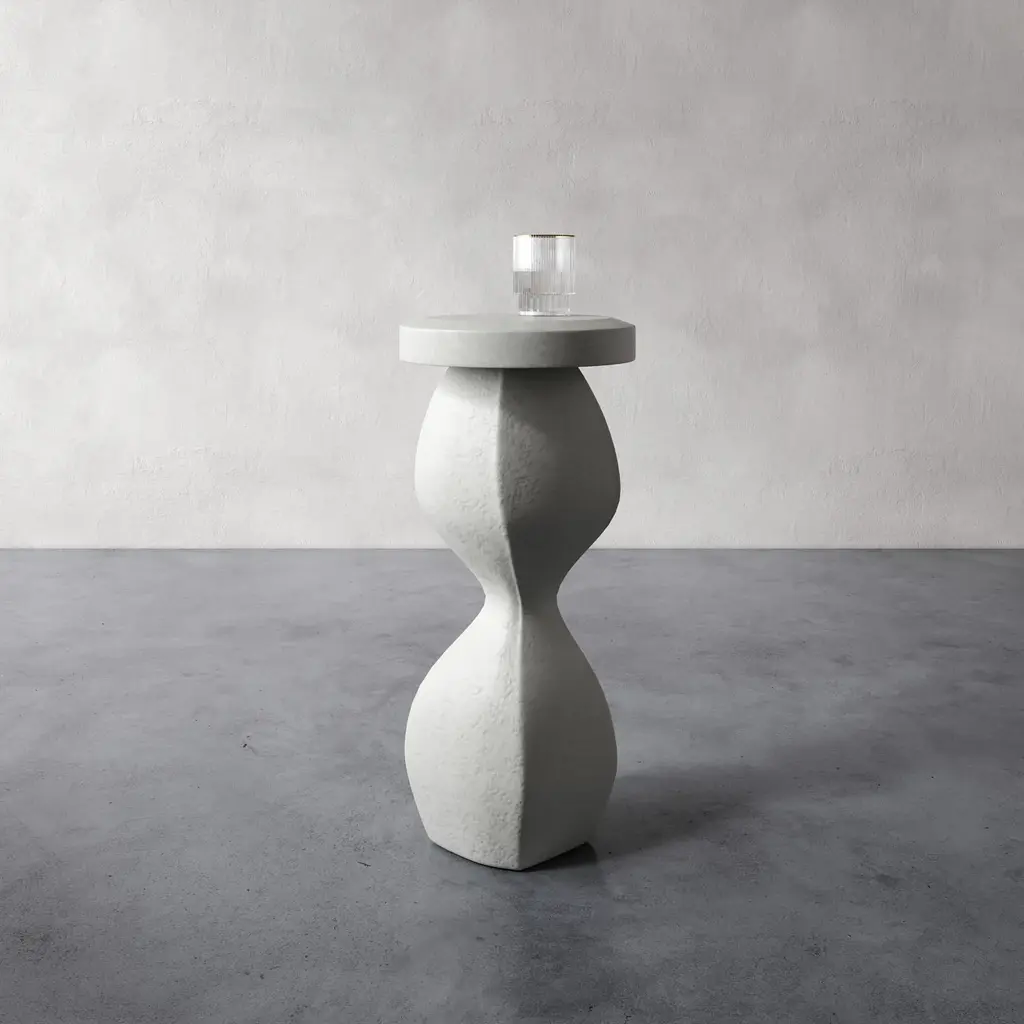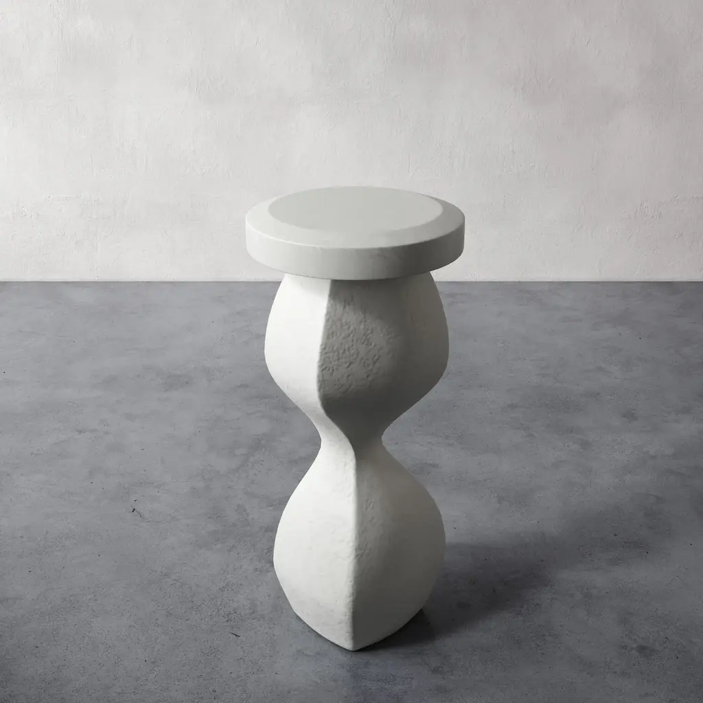 The Souple Drinks Table is a small sculptural plaster piece with an organically shaped, undulating form. Just the right height for holding drinks or a book, it combines functionality with artistic design. Its compact size makes it perfect for small spaces, adding a touch of modern elegance without a huge footprint. Ideal for living areas or cozy corners, the Souple Drinks Table is both practical and visually striking.