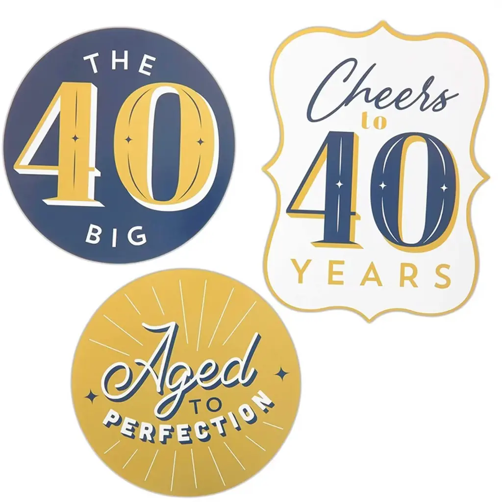 Make your party decor stand out thanks to our 40th birthday decoration pack. Each pack features a festive table and wall decor in blue, gold, and white colors that you can easily set up anywhere. Use the fun decor on your dessert table, main table, or as photo booth props. Each pack includes 2 paper ceiling fans, 2 table centerpieces, 4 cutout wall signs, and 4 strings of confetti rounds banner for a total of 12 pieces. Sparkle and Bash is your source for spectacular, high-quality party and event supplies. You'll find exactly what you need to create a visual statement. Elevate your party space while keeping things affordable and easy!