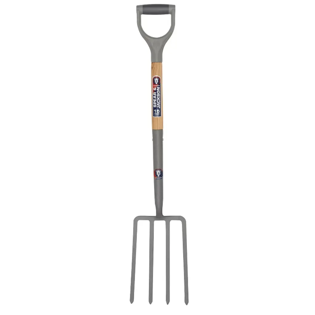A Lighter Digging Fork for Small Spaces Working in tight spots? The Spear and Jackson Traditional Stainless Border Fork features a smaller stainless steel head, making it easier to dig and turn over soil in borders and between plants. It's a handy, durable tool for maintaining your garden and lawn! Smaller than a broadfork, it's lighter and easier to maneuver in small areas. Ideal for digging and cultivation in confined spaces, borders or between established plants. Mirror-polished stainless steel head for corrosion resistance and minimal soil adhesion. Weatherproofed hardwood shaft for greater durability. Treaded head for added comfort underfoot. Shaft is crafted from a single piece of hardwood split to form a wishbone handle. 10-year guarantee. Dimensions: 37.01 in. x 5.71 in. x 3.74 in.. Weight: 3.15 lb. Crafted by a company that has been making garden tools since 1760. Blade Material: Stainless Steel. Handle Material: Hardwood. Origin: China.