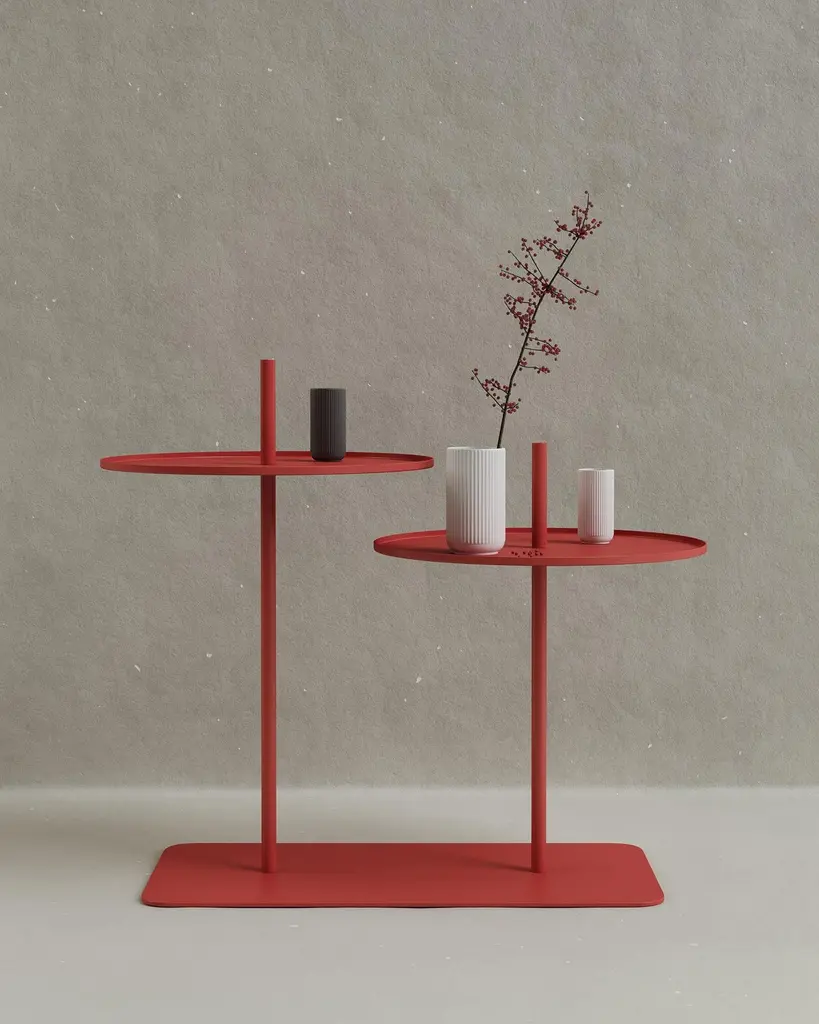 Spin 02 Red Coffee Table by OitoDimensions: D41x W73 x H75 cmMaterials: Powder coated steelWeight: 10 kgAlso Available in different colours.Suitable for outdoor use.Assembly design. Registered design.vases no includedThe idea of a coffee table Spin 02 is a basic table created on the basis of elements and knots of the MELT table.The tabletops are fixed on vertical axes, thereby creating the image of spinners, this table consists of two tabletops at different heights. The table top is made of a thin sheet of steel, which emphasizes lightness and unobtrusiveness.One of the important aspects of this product is its simplicity of design. In order to assemble or disassemble the Spin 02, you only need four screws, which are tightened by hand.Oitoproducts is a young Ukrainian brand from Kiev. We want to change furniture trends and add more fashion and value to the product.Our mission is to make furniture part of thinking fashion, not just a daily item. We spend a lot of time on visual and technical beauty!Each product of our line is complex. We value manual labor and try to make every detail meaningful and quality.We support local manufacturers and create new items together. At the moment, Ukraine is not a big industrial giant, but there is a highlight. All our items are the result of manual labor, and it is always warmer and more emotional.Until recently, the world did not know Ukrainian design, but recently everything is changing.There are many original designers from Ukraine who develop and collaborate with many world designers.Ukrainian designers are already a large community that is changing post-Soviet realities into well-thought-out semantic spaces.Ivan Voitovich, the founder of oitoproducts and his team is a full fan of the creation.We are building a new brand that is changing our reality. We want our environment to give us more positive emotions and experiences.