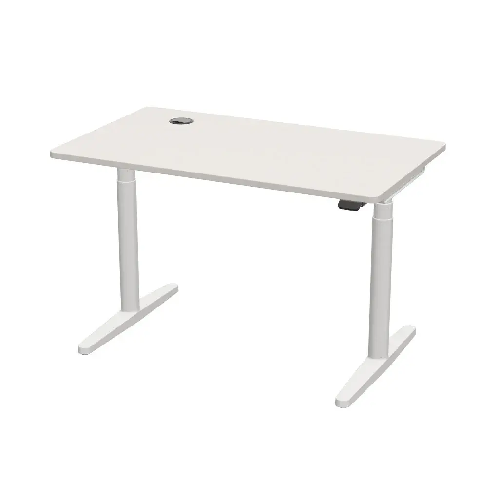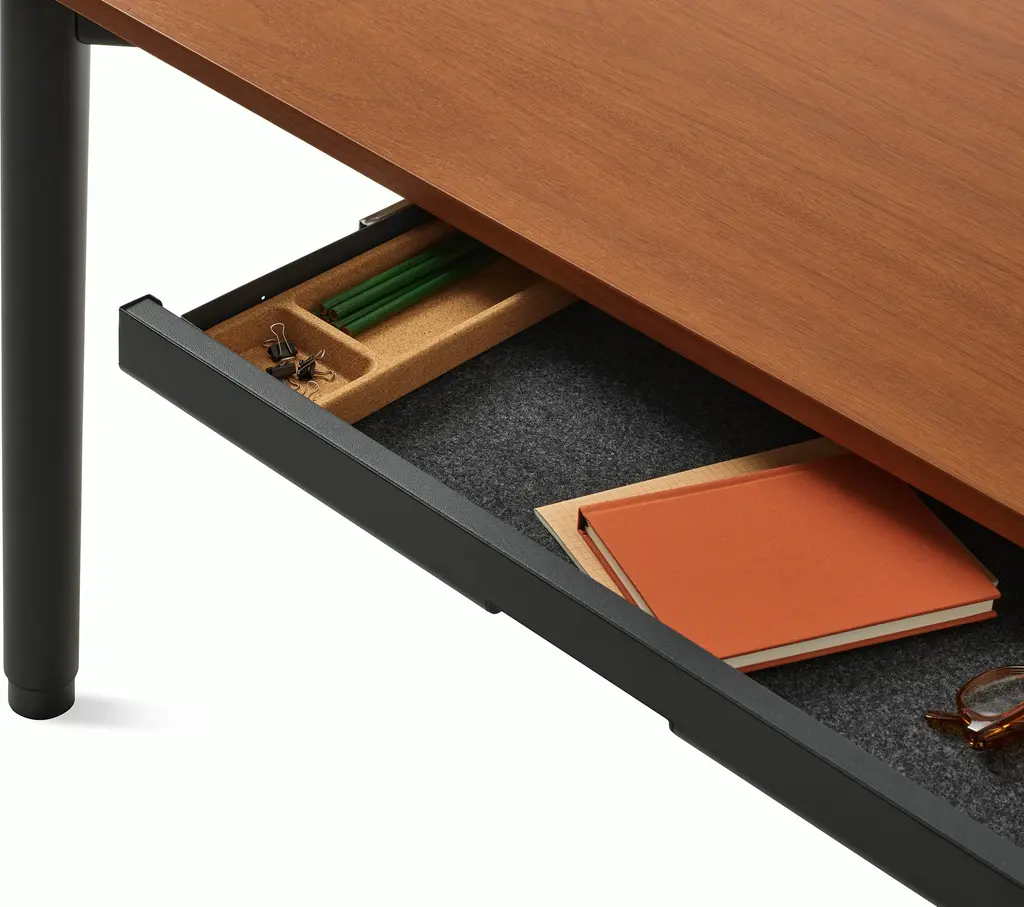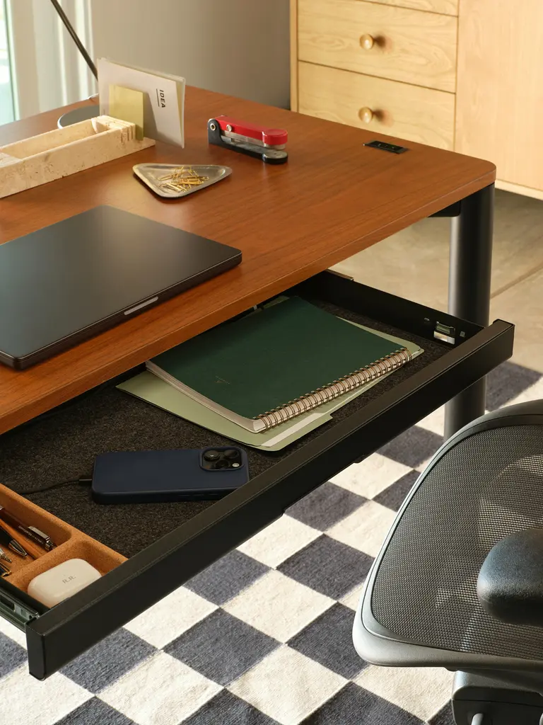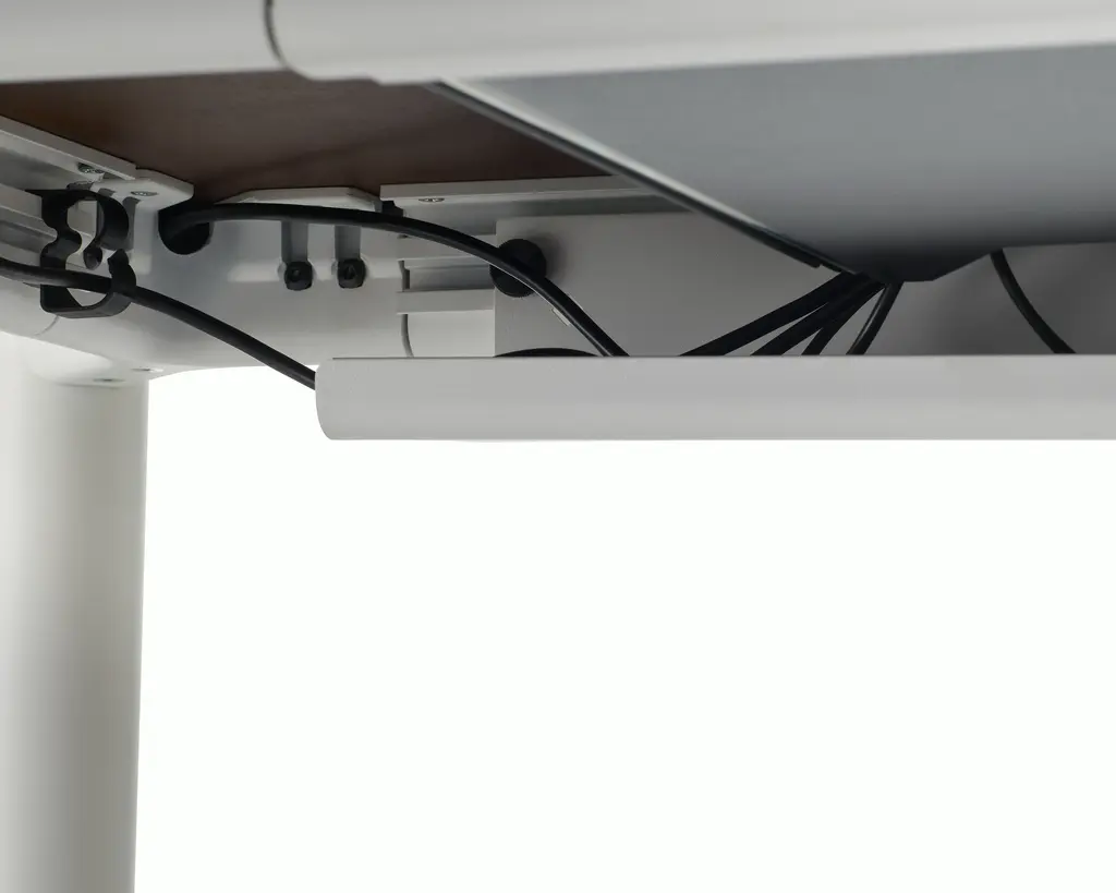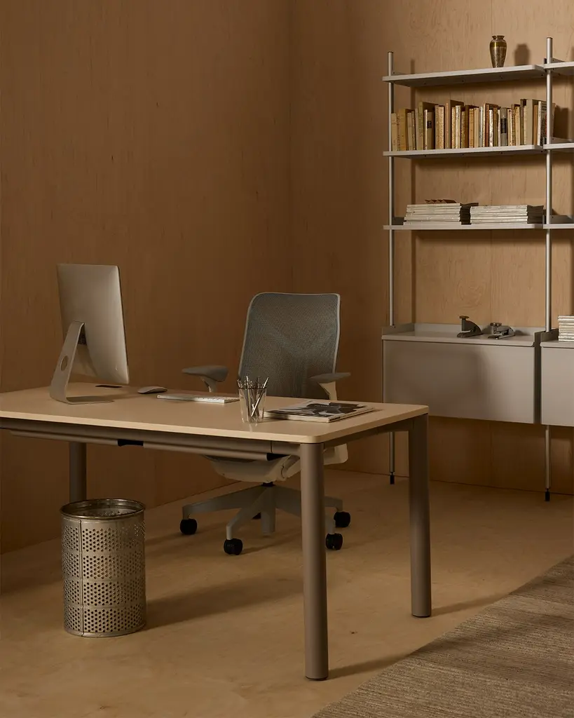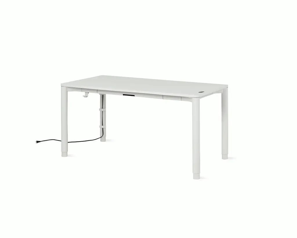 With purposeful minimalism and considered functionality, the Spout Sit-to-Stand Table (2024) reimagines the desk for today's fluid workstyle. The clean, architectural silhouette is anchored by four meticulously crafted legs - a nod to timeless furniture design that also increases its lift capacity. Hidden cable management maintains the table's pure lines while elegantly addressing modern connectivity needs. More than a workspace solution, Spout invites movement throughout your day, seamlessly toggling between seated and standing positions with quiet sophistication.