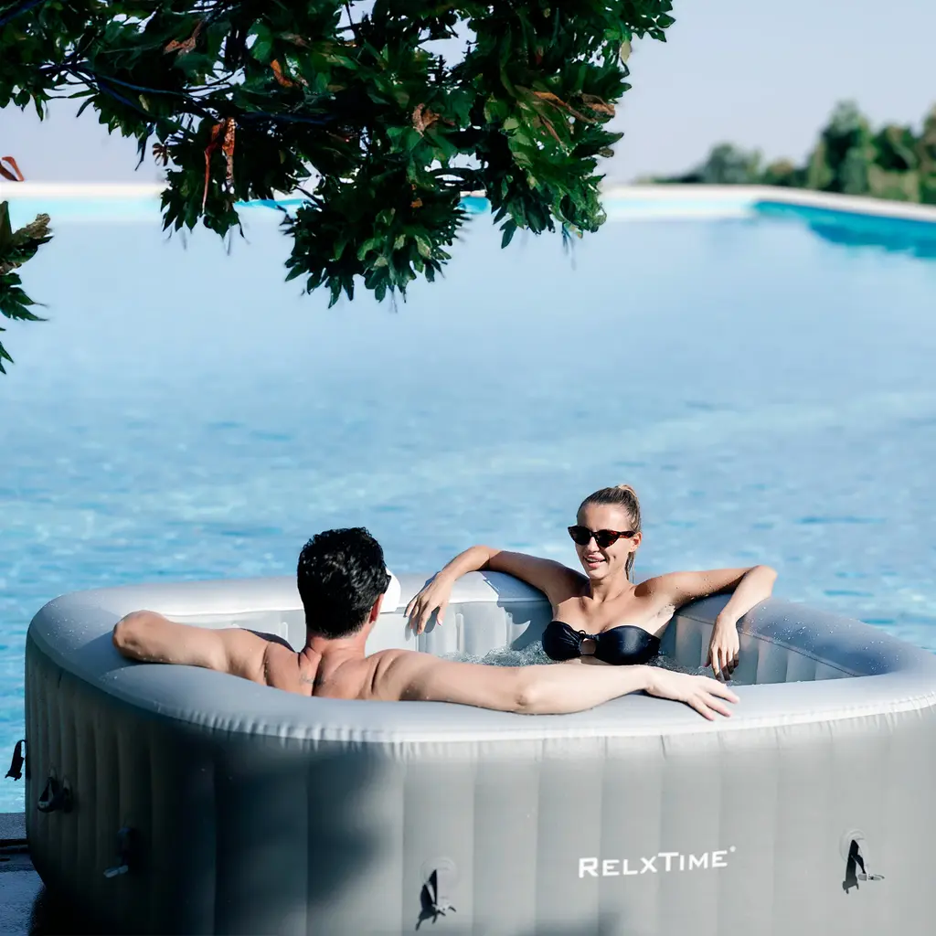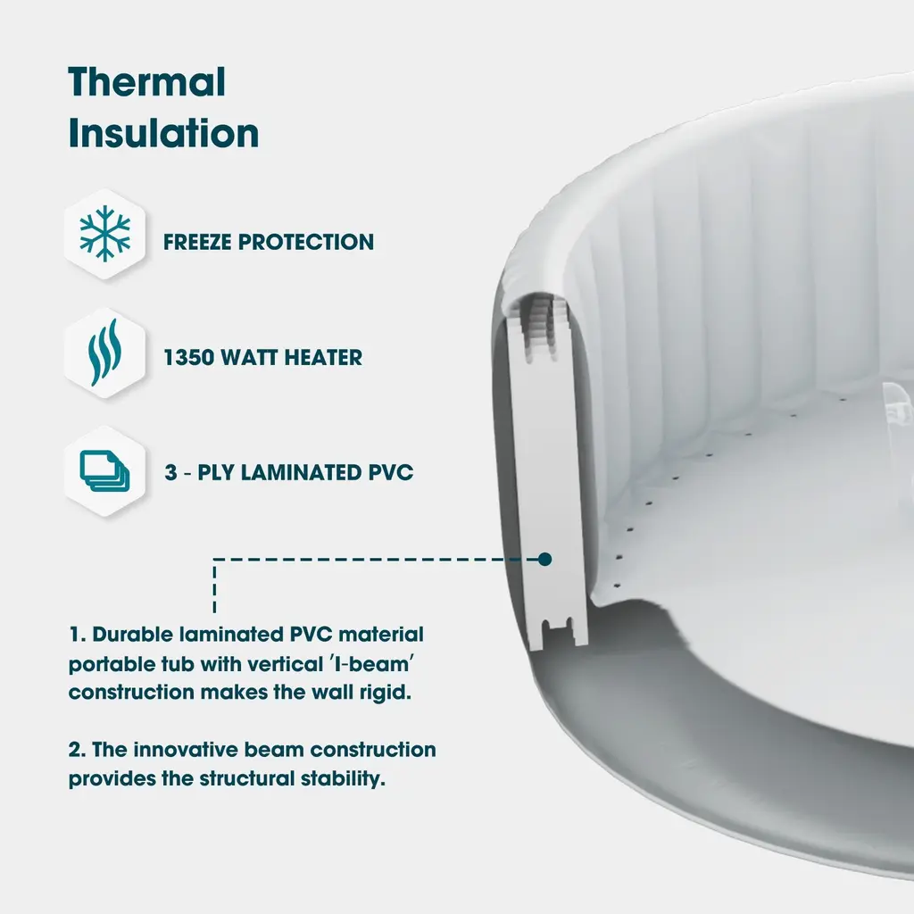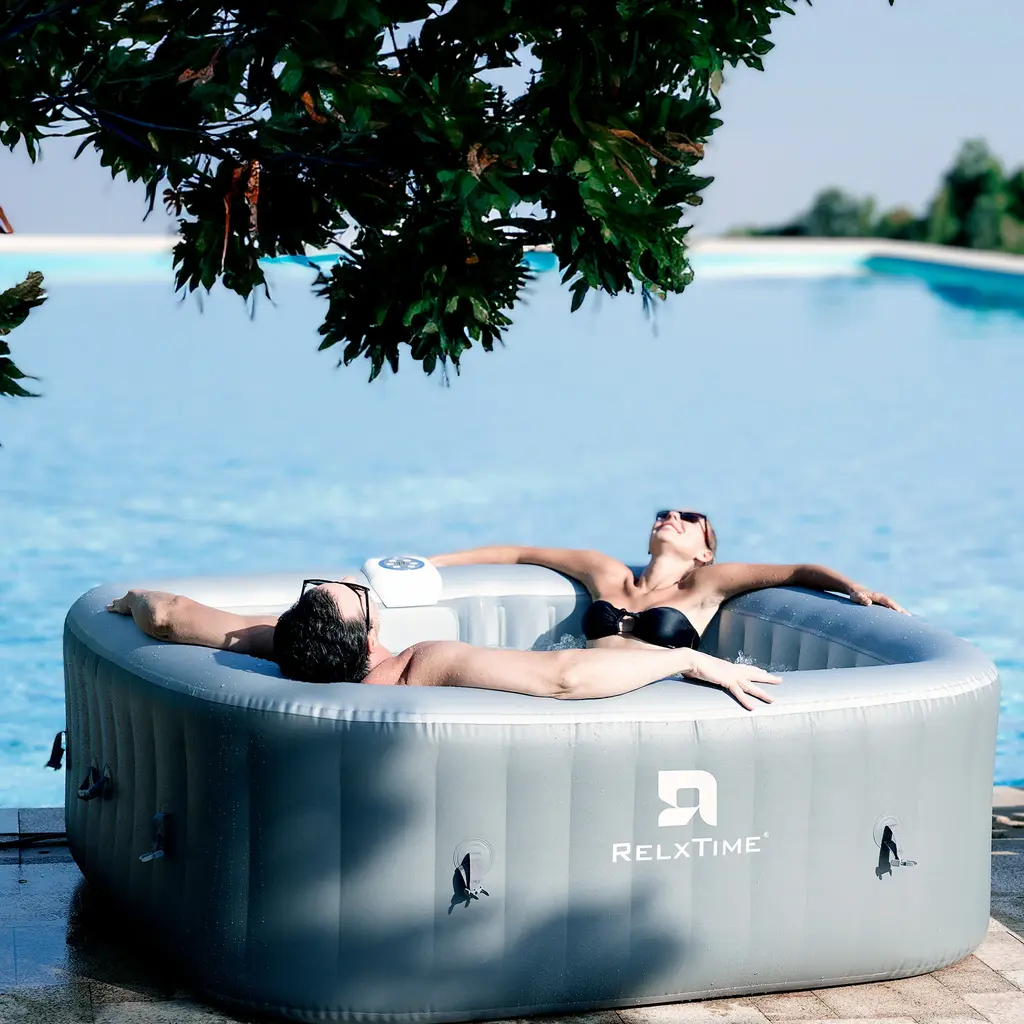 Enjoy the ultimate relaxation experience with Relxtime Inflatable Hot Tub. Perfect for 4-6 people, this hot tub features External Cup Holder for timely hydration. With its 130 high-powered bubble jets and temperature range of up to 104 degrees F, this Hot Tub allows for a personalized spa experience. With easy setup and maintenance, you can enjoy a spa day anytime, anywhere. Features: Component List:Note: Use at temperatures above 4 degrees Celsius.