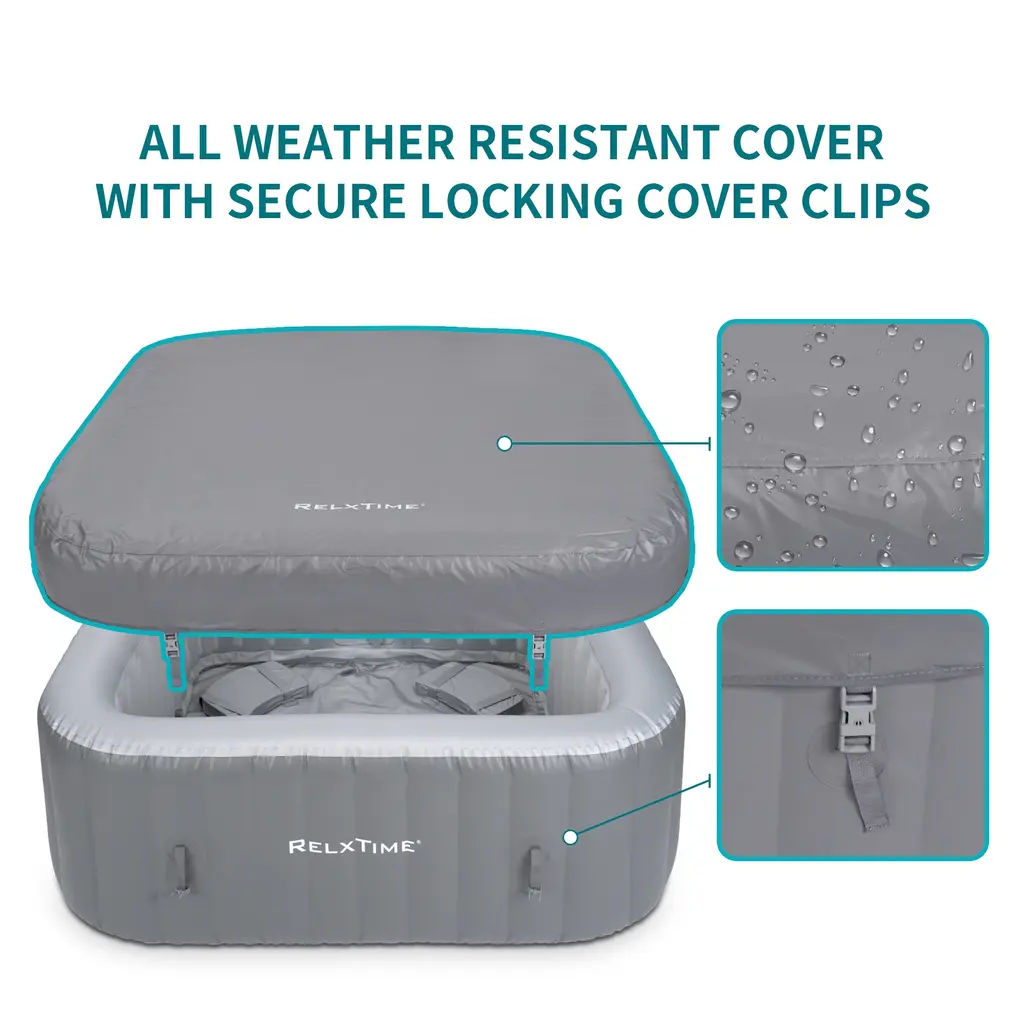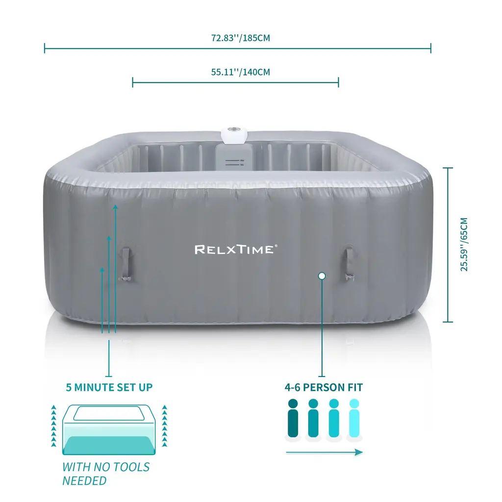 Square Inflatable Hot Tub Spa 4-6 Person - Grey