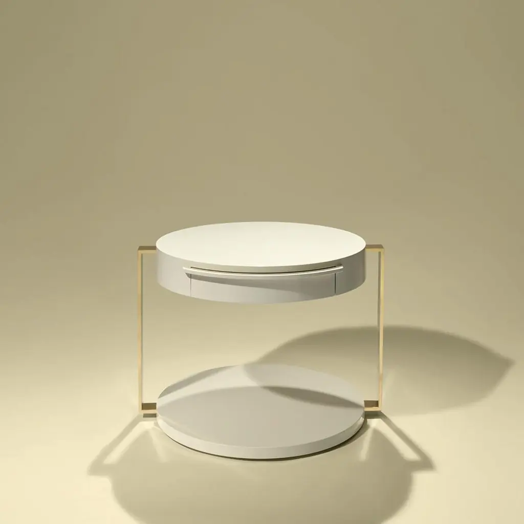 Square oval support table with one drawer in lacquer.Bespoke / CustomizableIdentical shapes with different sizes and finishings.All RAL colors available. (Mate / Half Gloss / Gloss)