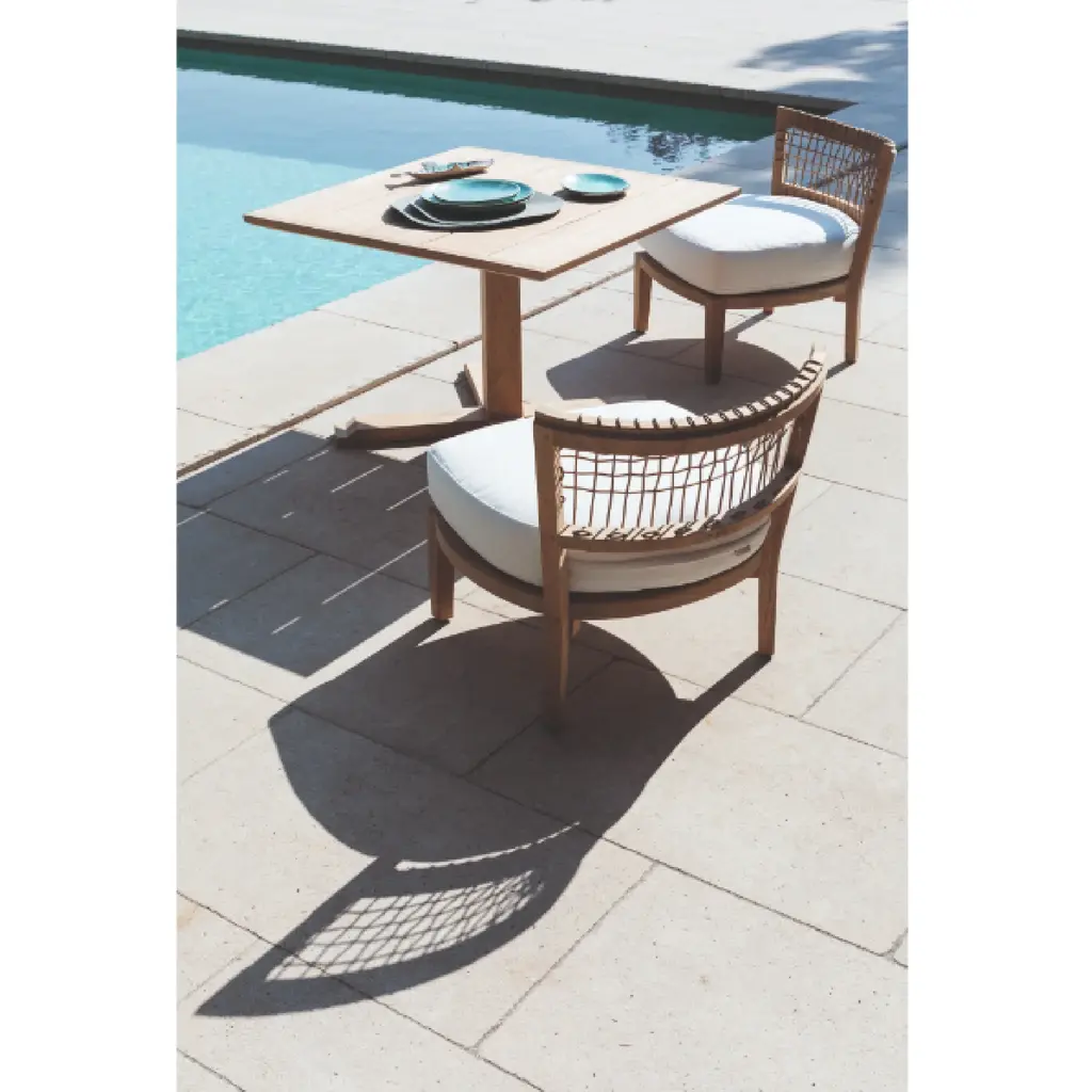 Add a touch of sophistication to your outdoor space with the Unopiu Synthesis square teak garden table. Crafted with luxurious teak wood, this lounge table boasts elegant lines and a square shape, bringing a touch of exclusivity to any garden or patio. Elevate your outdoor experience with the Unopiu Synthesis table.