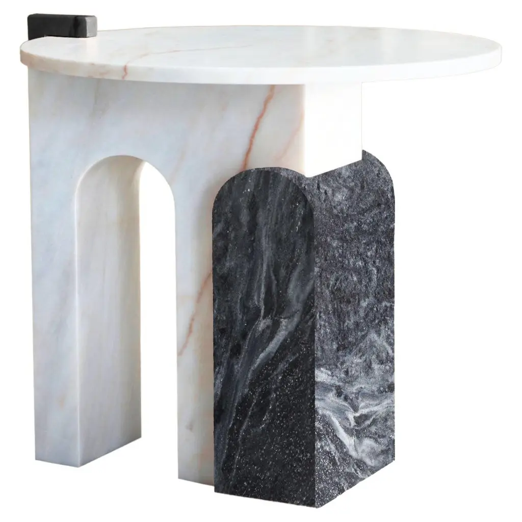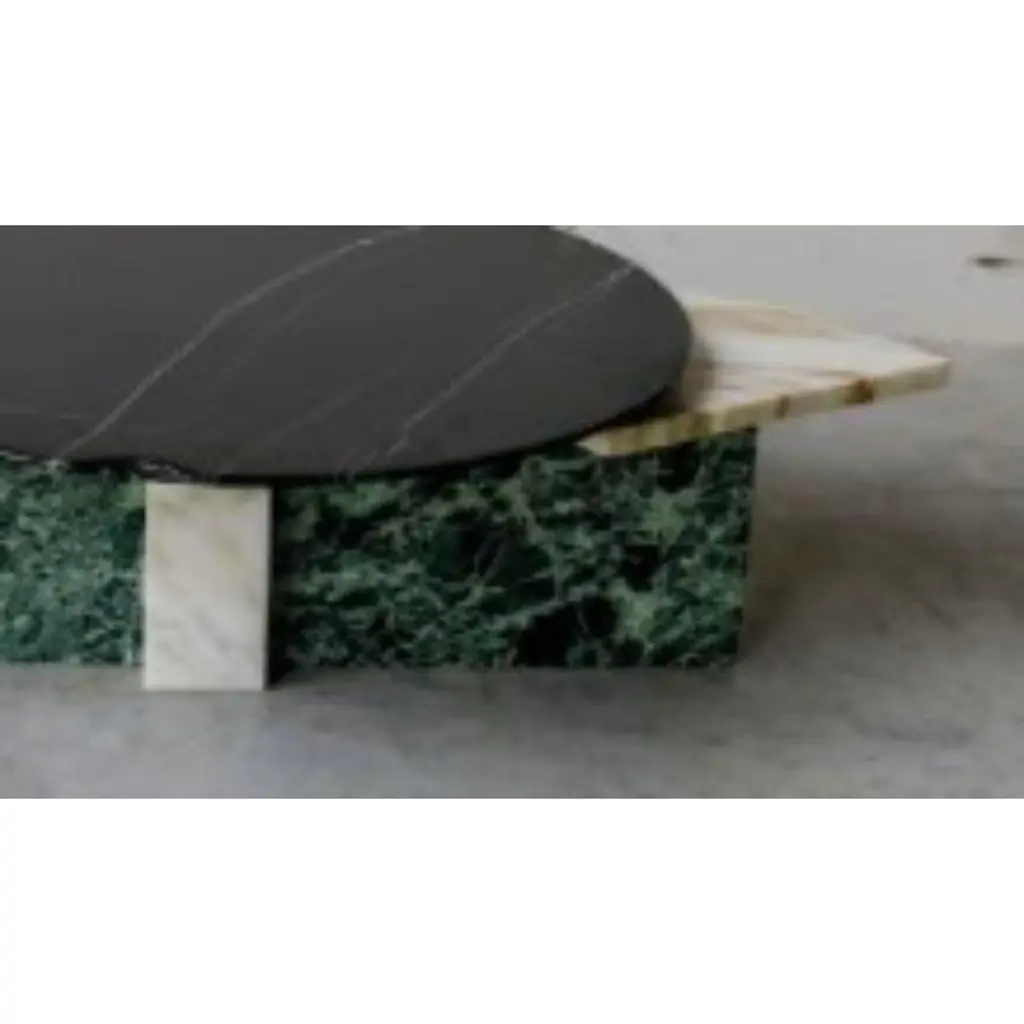 SST003 low table by Stone StackersDimensions: D100x H26 cmMaterials: Marbles:Marble structure: Verde AlpiMarble top: Sahara NoirMarble top lateral: PalissandroWeight: 49 kgThis particular low table is marked by a subtle beauty emphasized by the smoothness of its contemporary lines. tracing the pedestal base and the top’s irregular profile. The charm of the marble’s veining is further enhanced by the diverse rotatable tops that make the table vastly versatile.Stone stackersThe Concept:The Stone Stackers brand is deeply classic and highly contemporary. The idea of reclaiming and re-purposing discarded marble into works of practical art is at the forefront of a global movement that champions conscious provenance and sustainability in design.The act of intelligently re-imagining the off-cuts of once ancient stone – by-products of the unsustainable quarry of marble from Italian mountains – and creating ultra modern pieces designed to last a lifetime is both an act of entrepreneurial creativity and altruistic environmentalism.The duality of old and new – of creating something from nothing – is further reflected in the real-world union of the founders, Paolo Ciacci and Shilpa Srinivas, along with their partner Simeg Marmi. Their individual experiences and common vision have given birth not only to a new enterprise, but an original interpretation of the eternal value and beauty of stone.