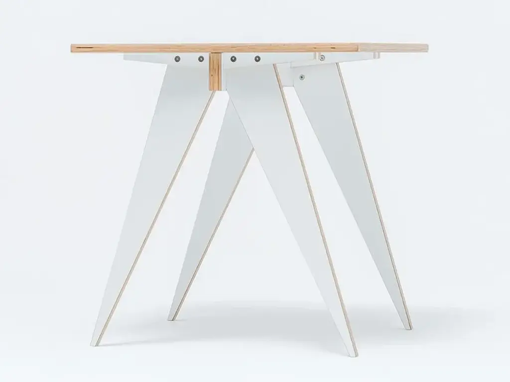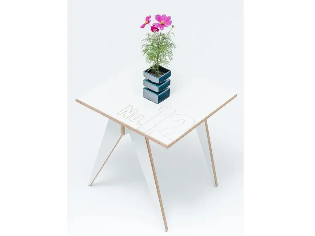 ST 12, a simple design table for happy moments! Use it every day with kids & family, with friends coming over.Compact square shape of a table, fits all the small places . The table’s simplicity makes it the perfect furniture for small places.The ST12 table has been designed with the inspiration – a clasp knife, a pair of callipers, a tool used by designers to make measurements, that can be folded.Fresh white on plywood, easy self assemble construction, no glue, no nails! Flat packed.