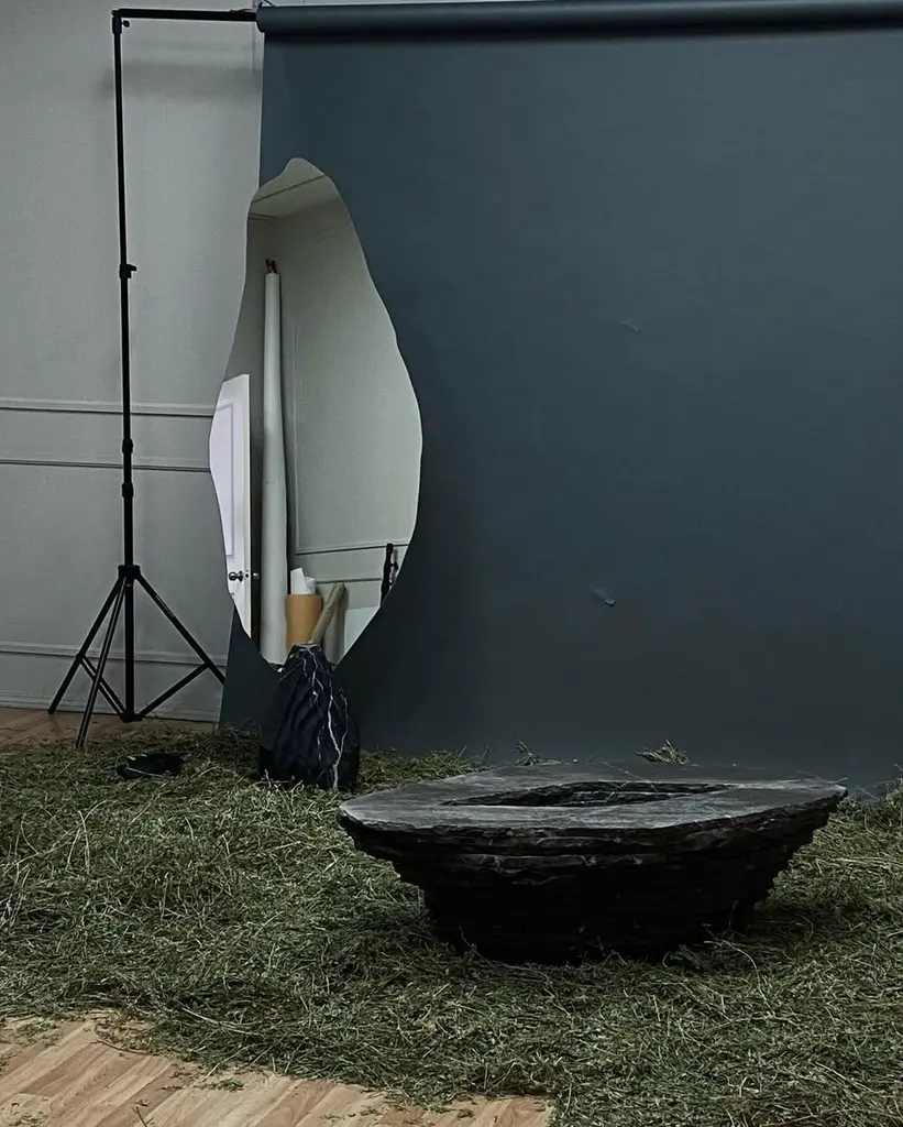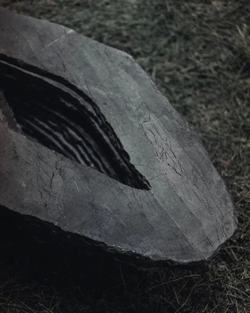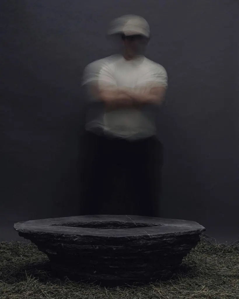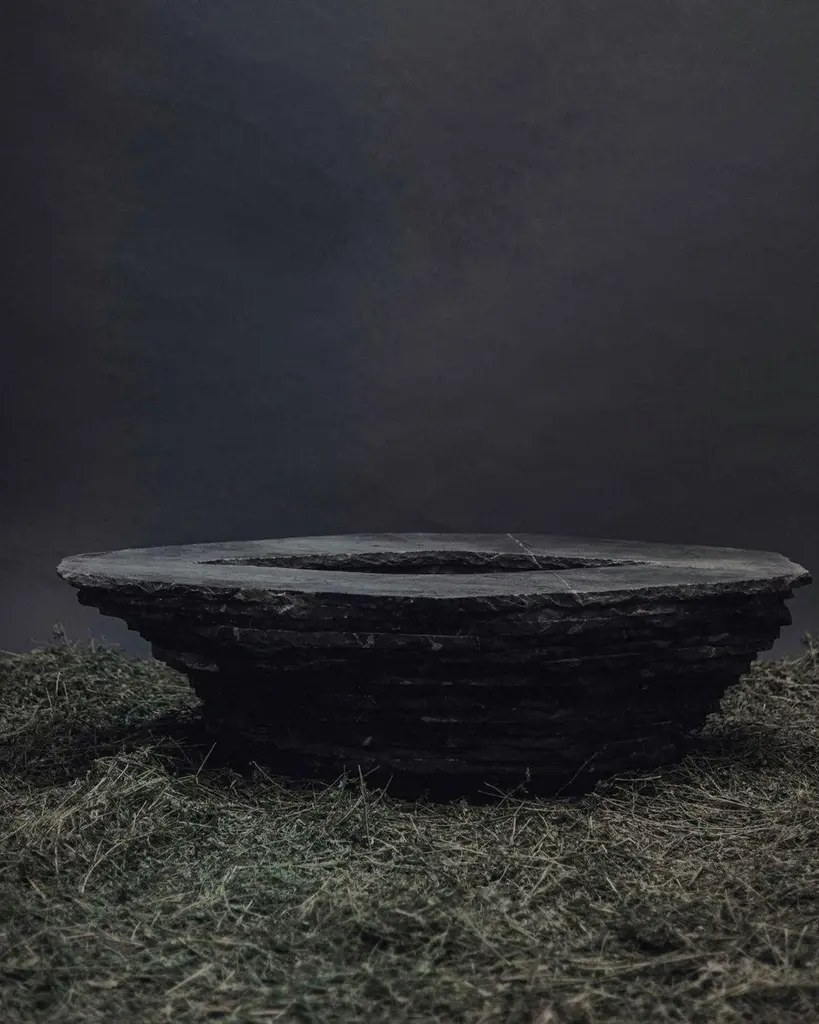 Stacked Layers Black Marble Table With Center Circular Opening By Andres Monnier