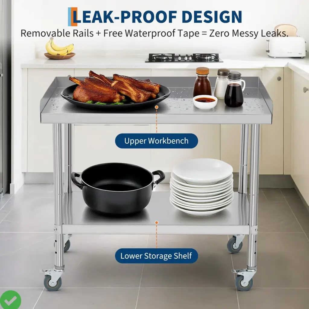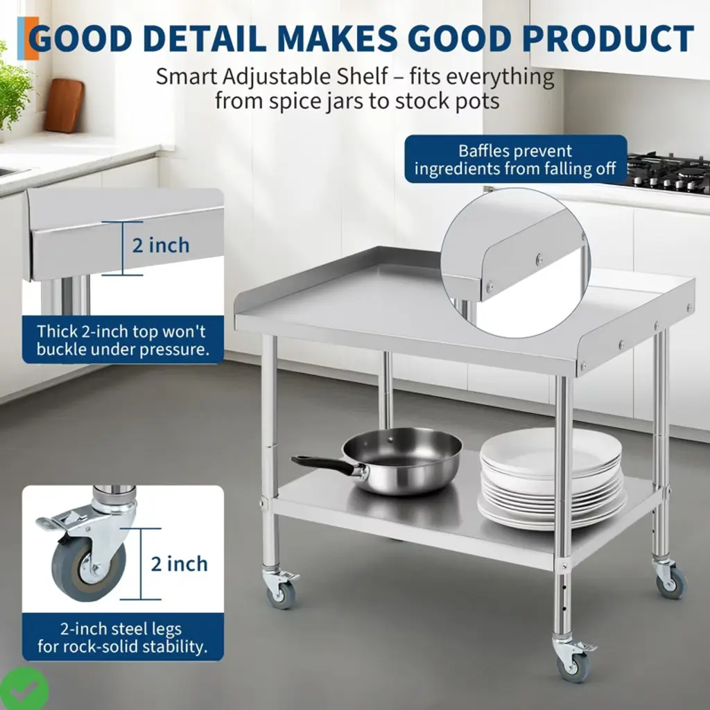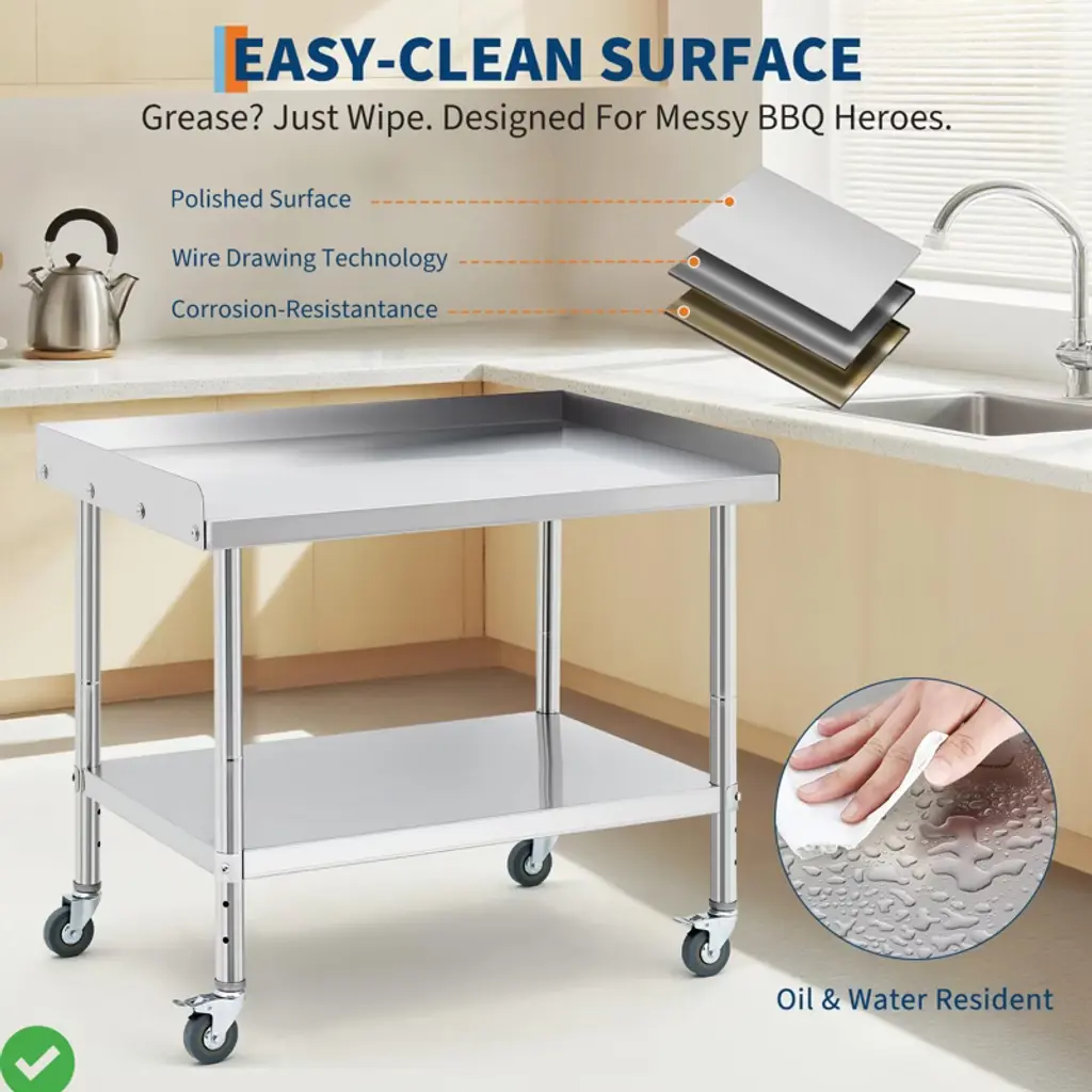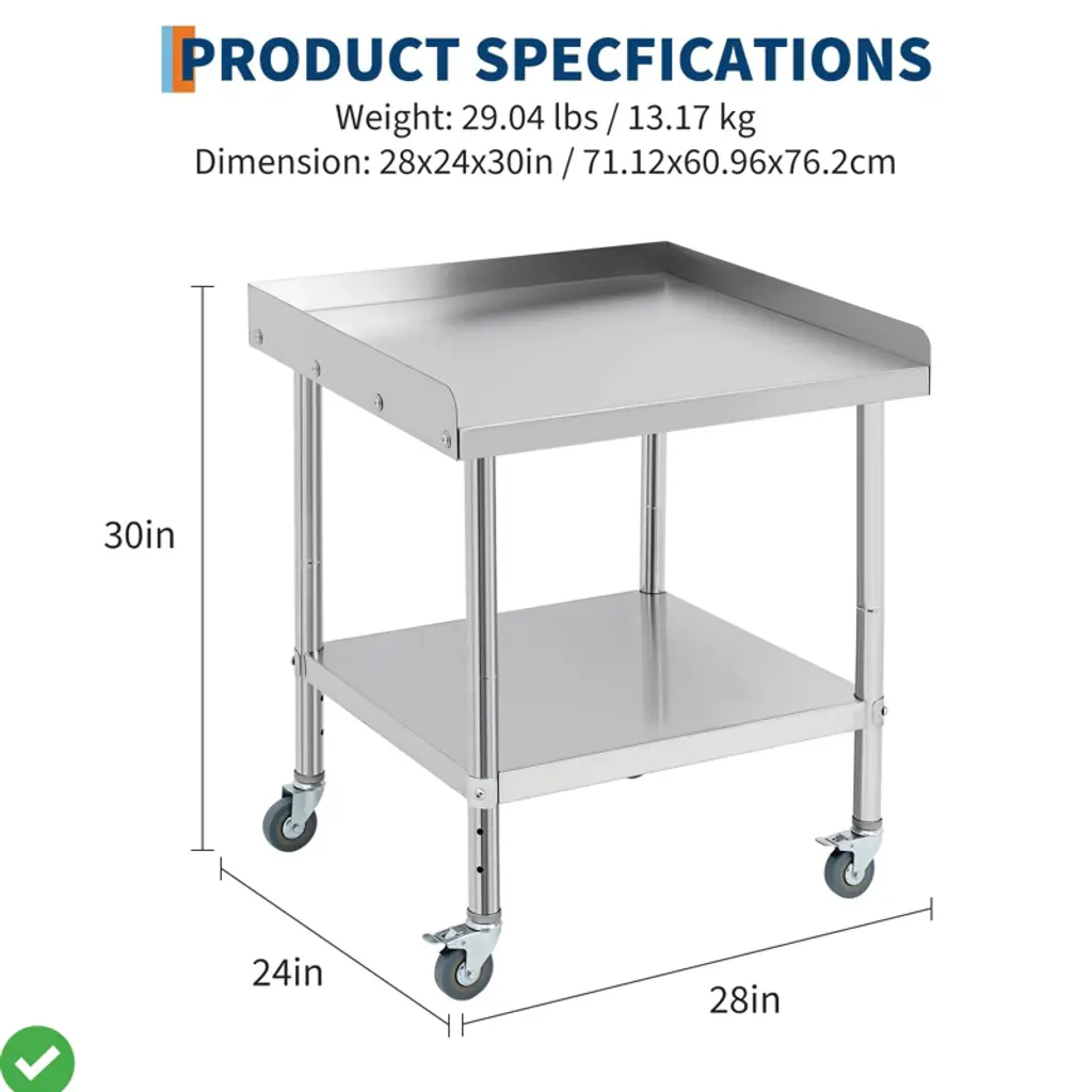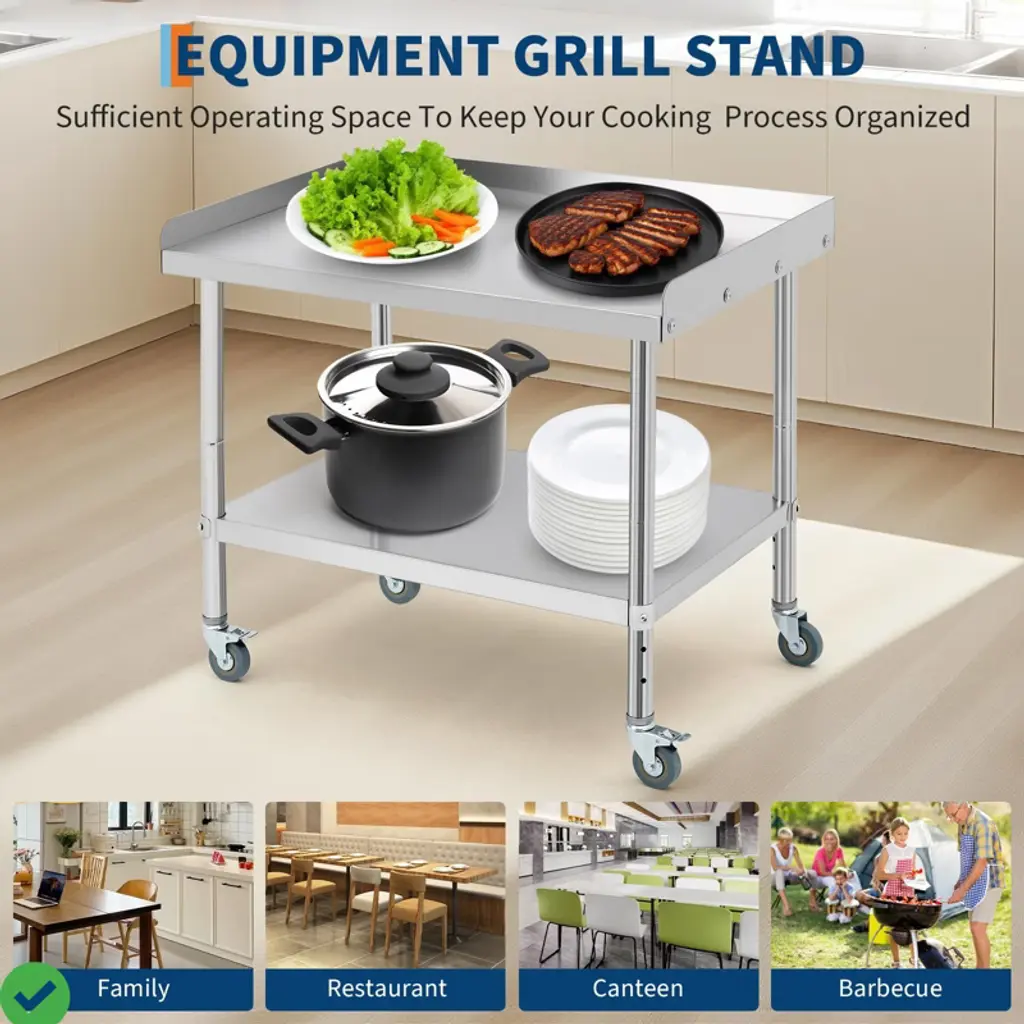 36*30*30inch/28x24x30 Inch/36x24x30 Inch Stainless Steel Equipment Grill Stand Table NSF Certified with 5" Wheels, 400 Lbs Capacity, 2" Edge Baffle, for Hotel, Home, Commercial Restaurant Kitchen.