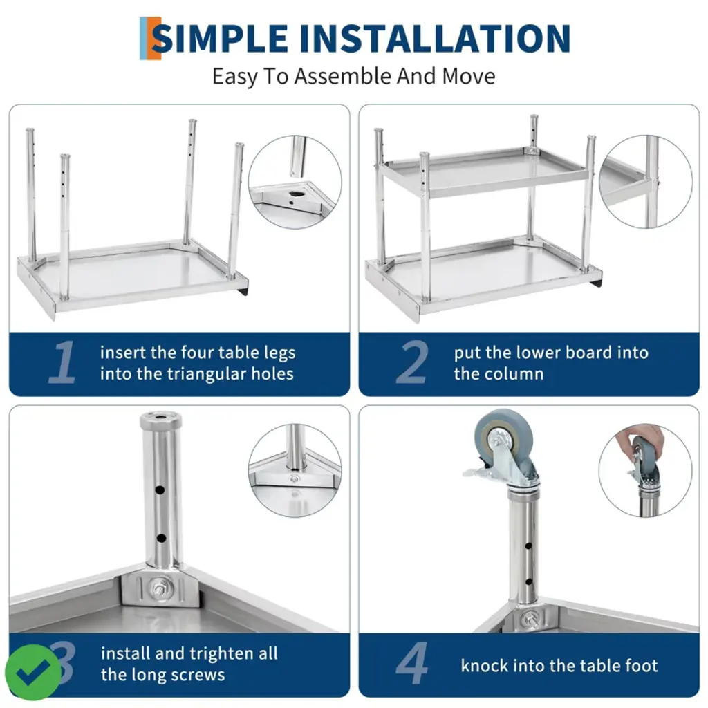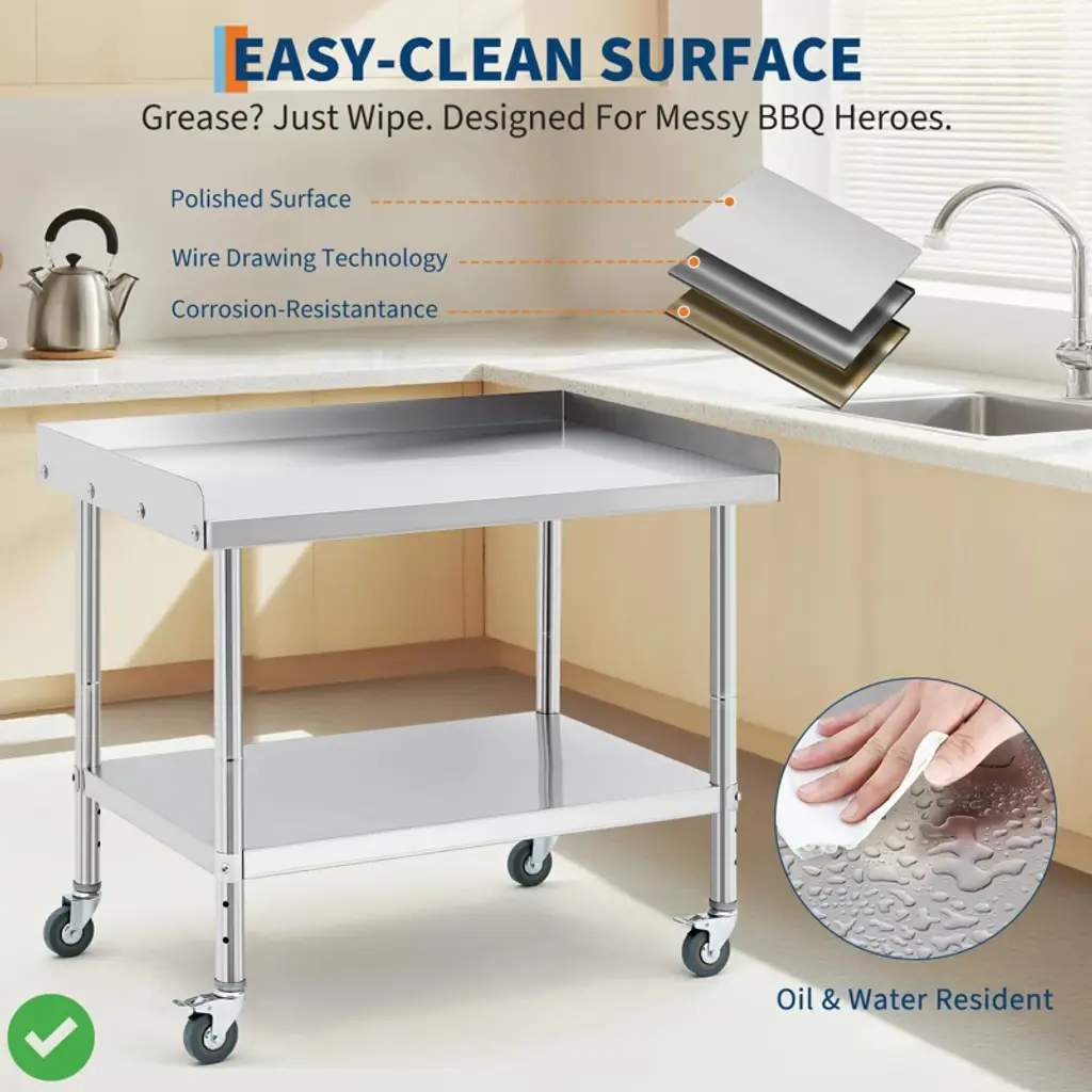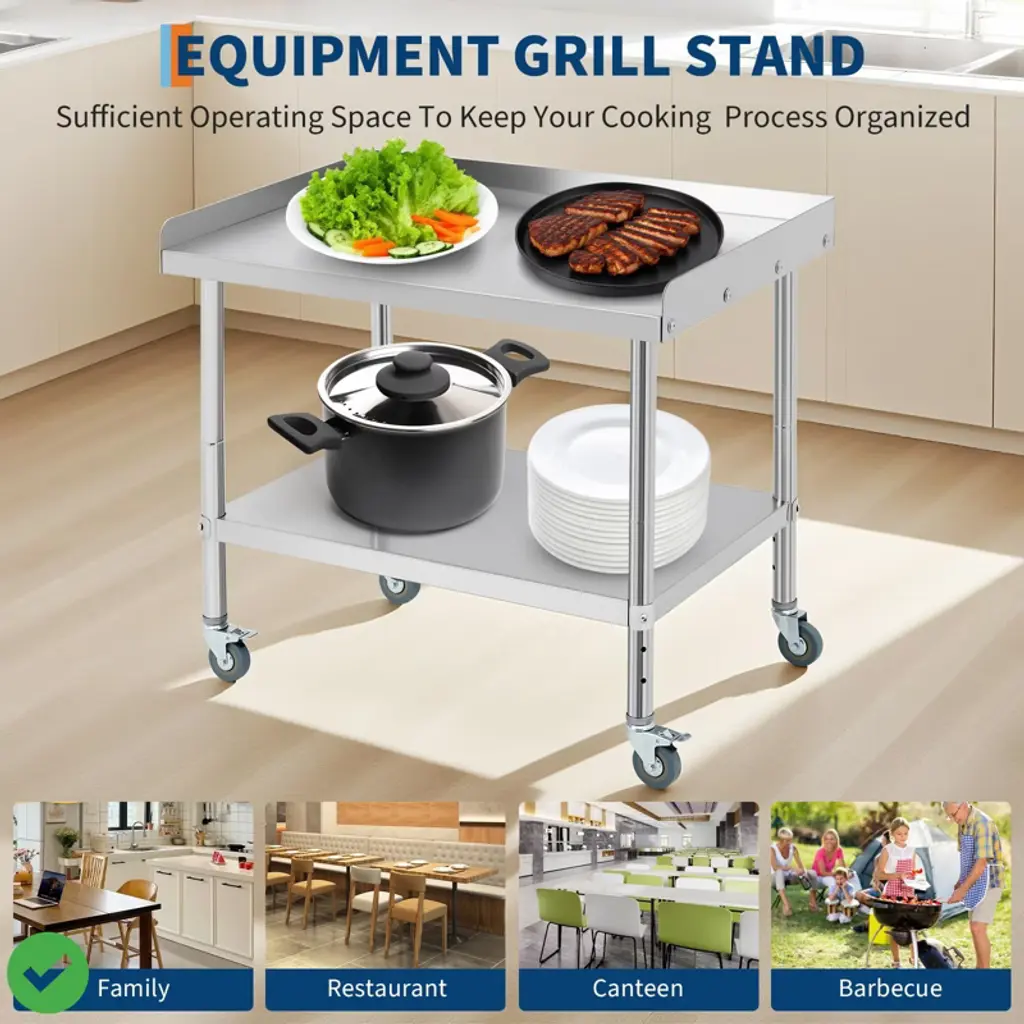 36*30*30inch/28x24x30 Inch/36x24x30 Inch Stainless Steel Equipment Grill Stand Table NSF Certified with 5" Wheels, 400 Lbs Capacity, 2" Edge Baffle, for Hotel, Home, Commercial Restaurant Kitchen.