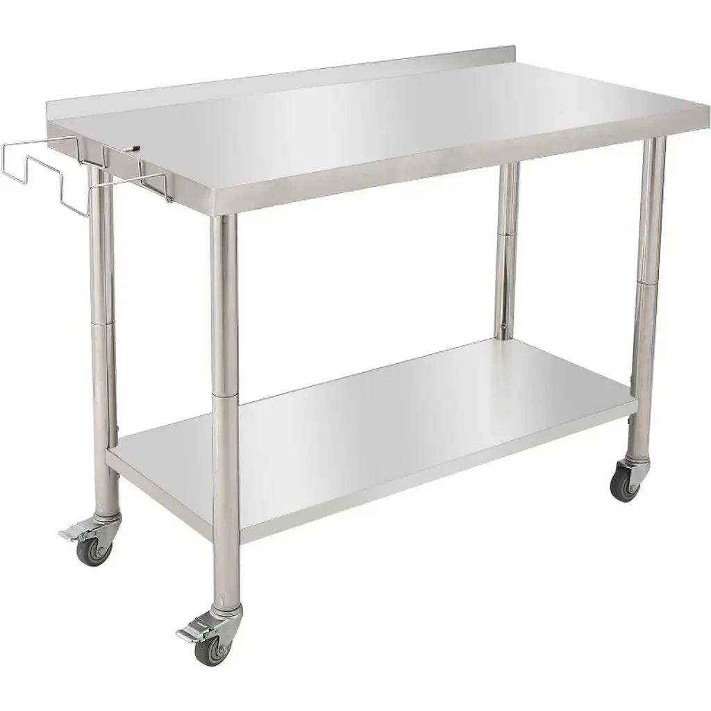 Stainless Steel Equipment Stand With Undershelf 5" Wheels Nsf Commercial Prep & Work Table W/ Edge Baffle