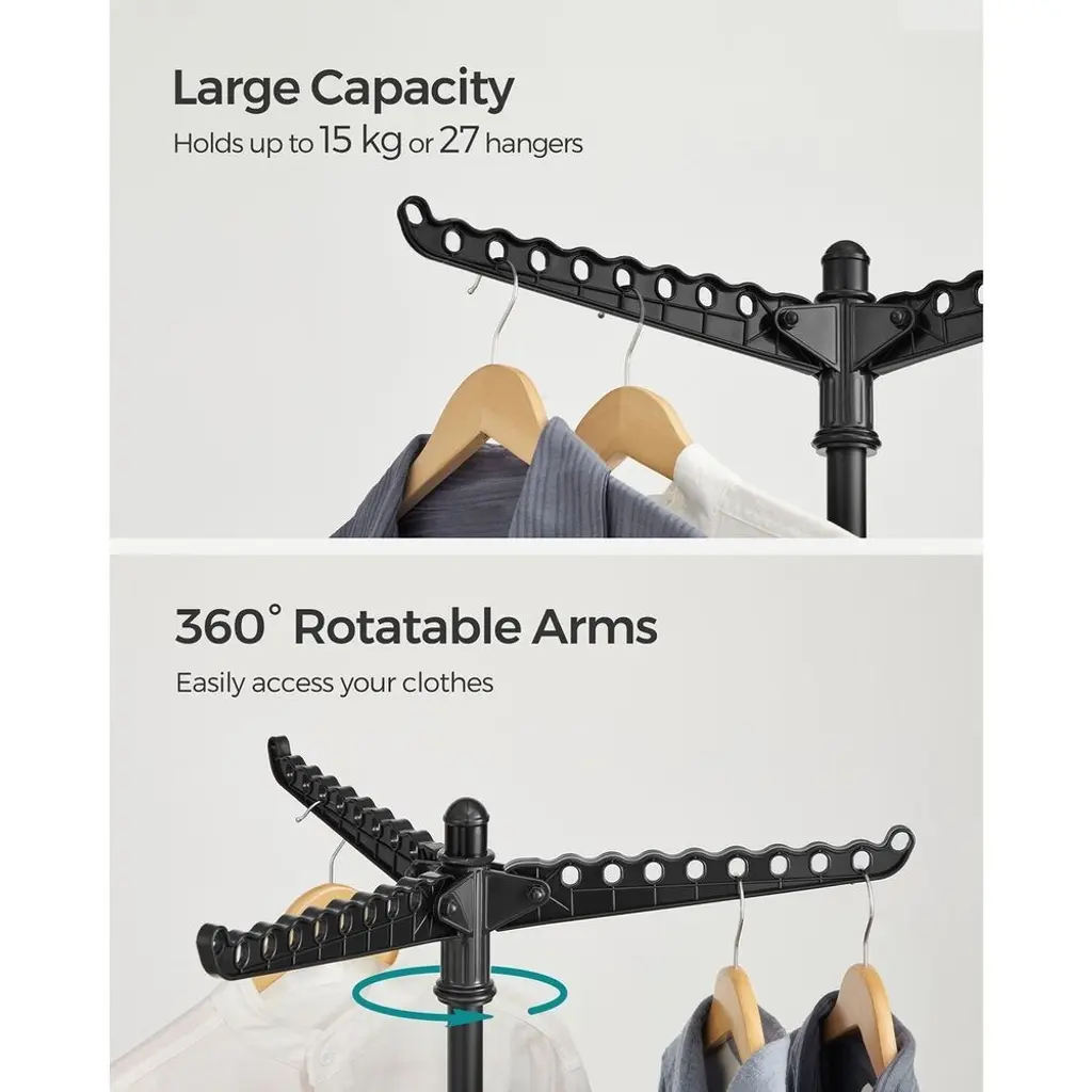 Stainless Steel Foldable Clothes Drying Rack With 360° Rotatable Arms Large Capacity And Space-Saving Design - 1-Tier - Black