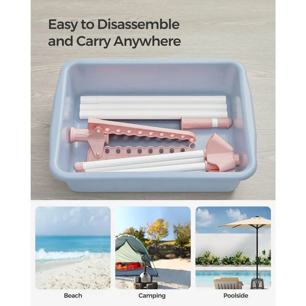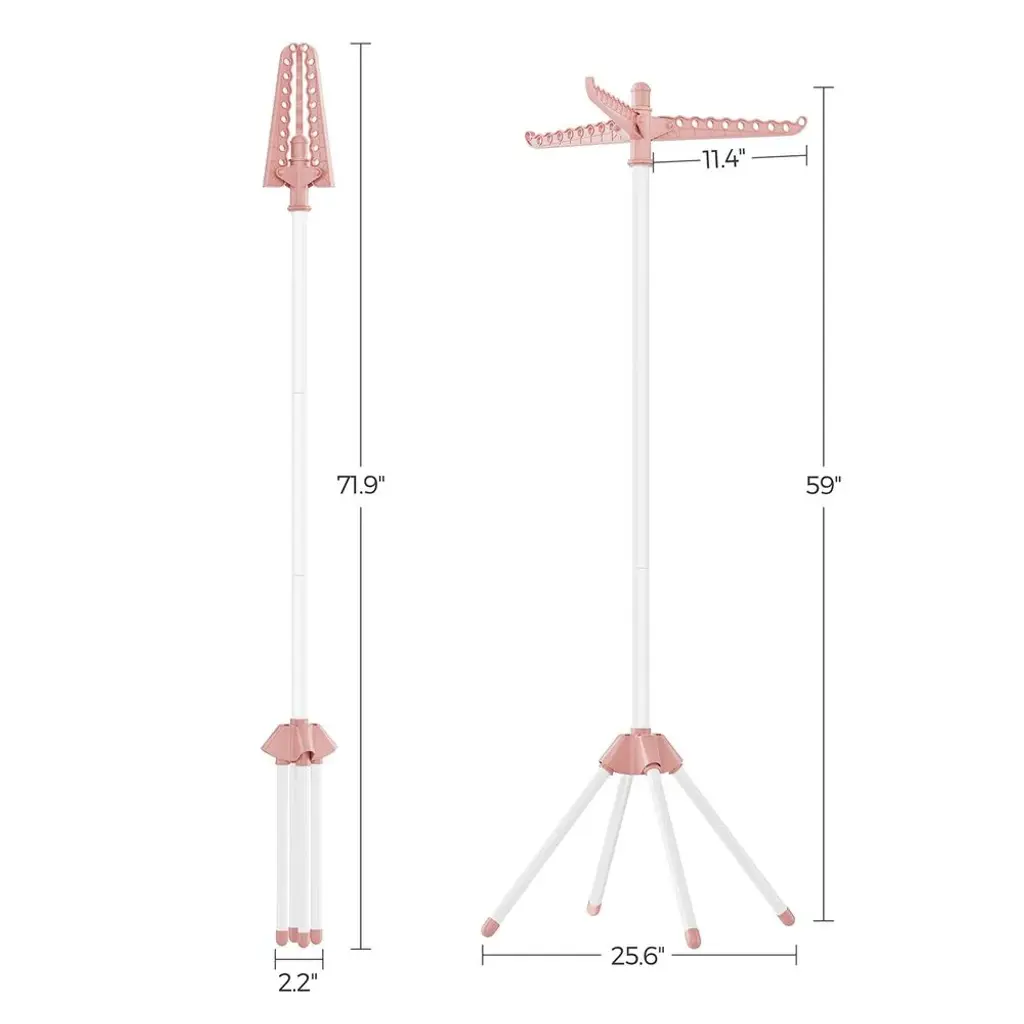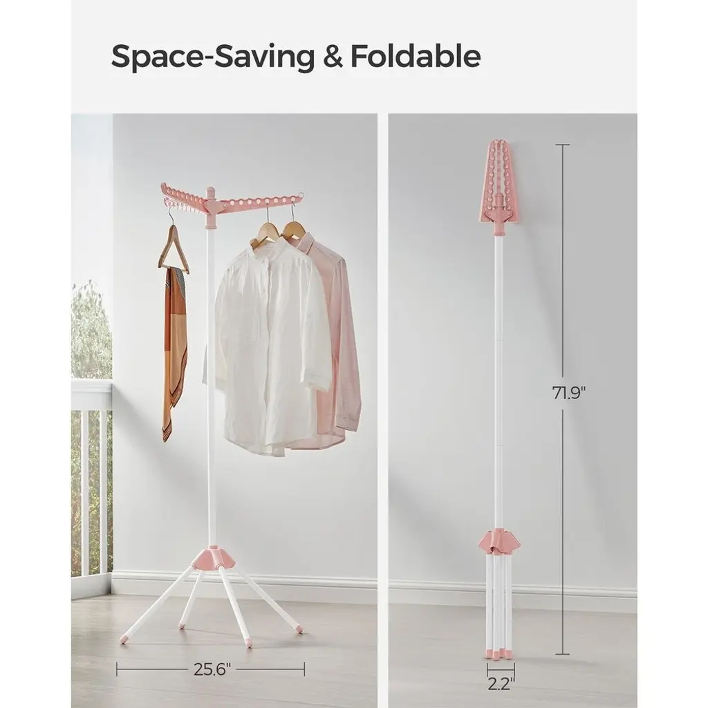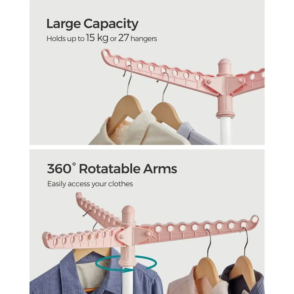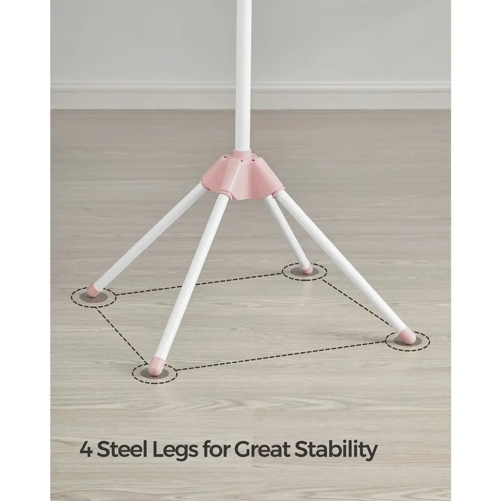 Stainless Steel Foldable Clothes Drying Rack With 360° Rotatable Arms Large Capacity And Space-Saving Design - 1-Tier - Pink-White