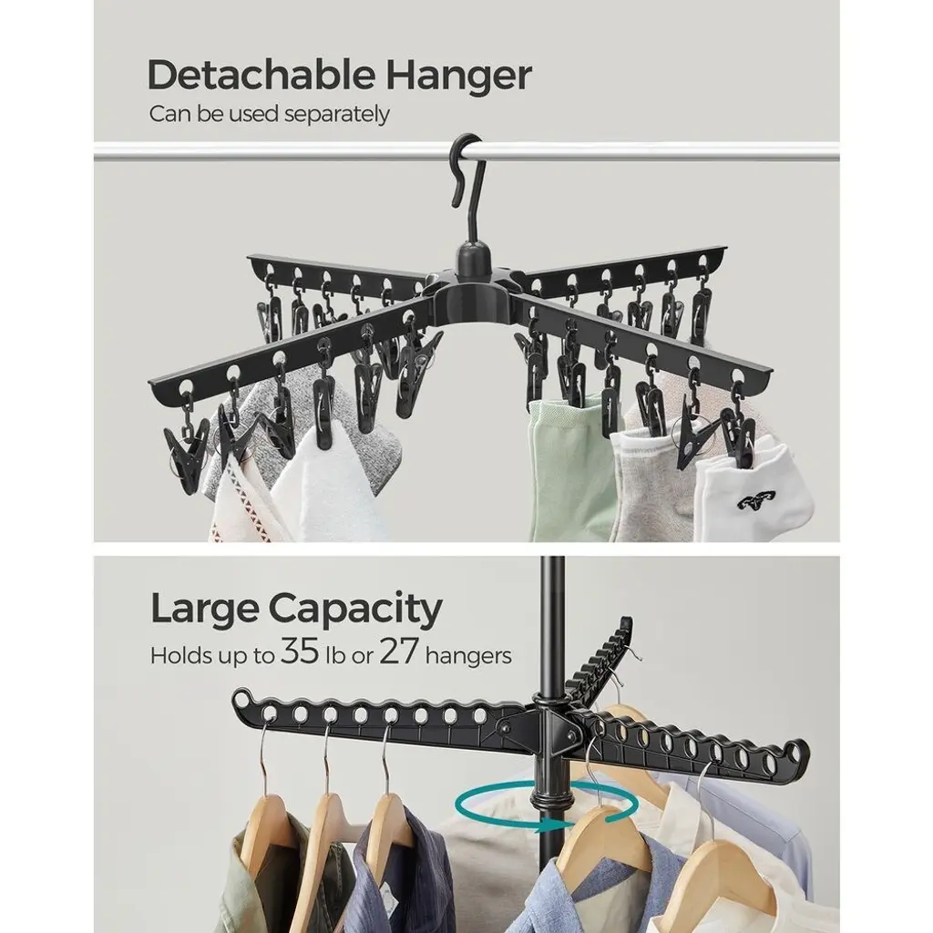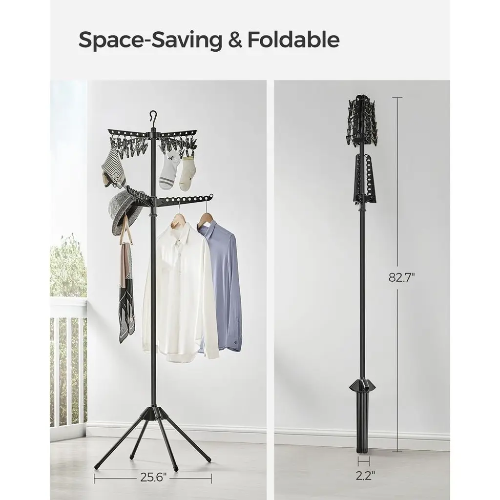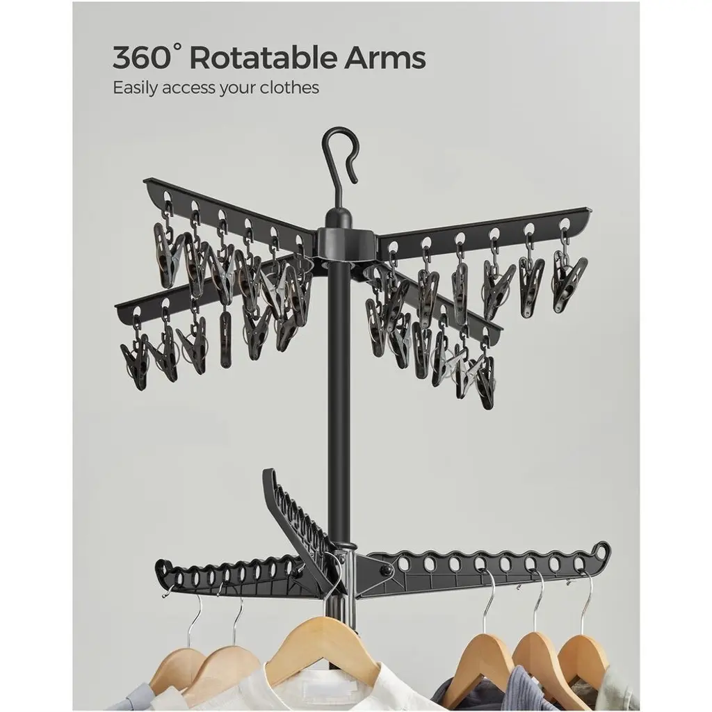 Stainless Steel Foldable Clothes Drying Rack With 360° Rotatable Arms Large Capacity And Space-Saving Design - 2-Tier - Black
