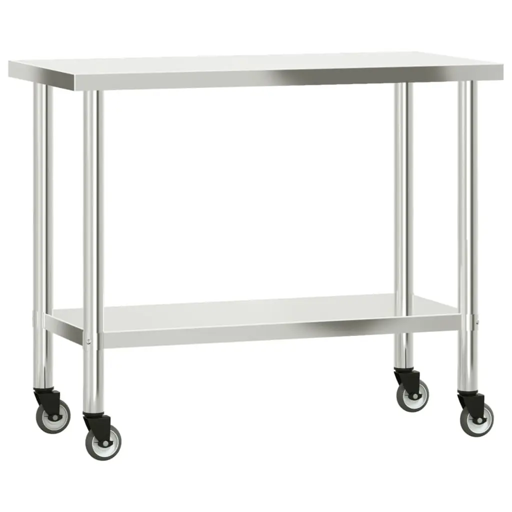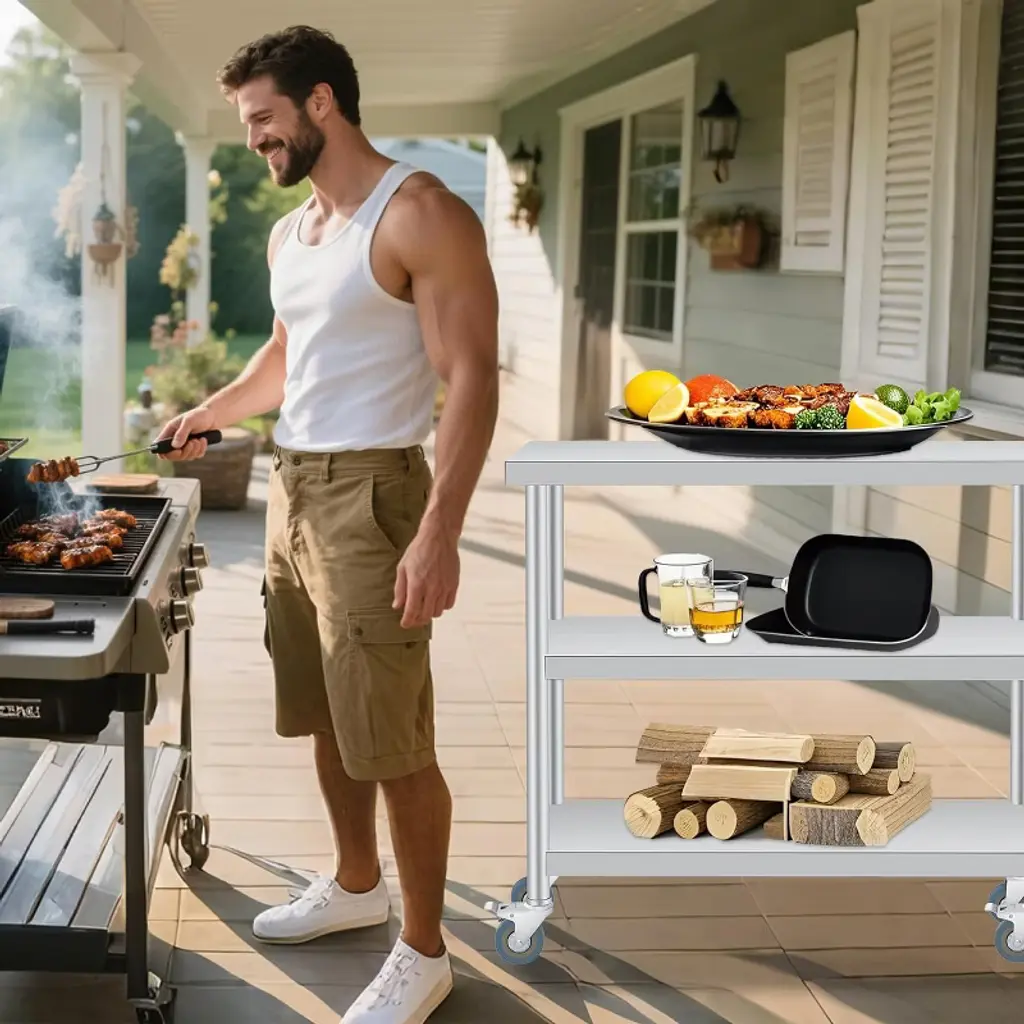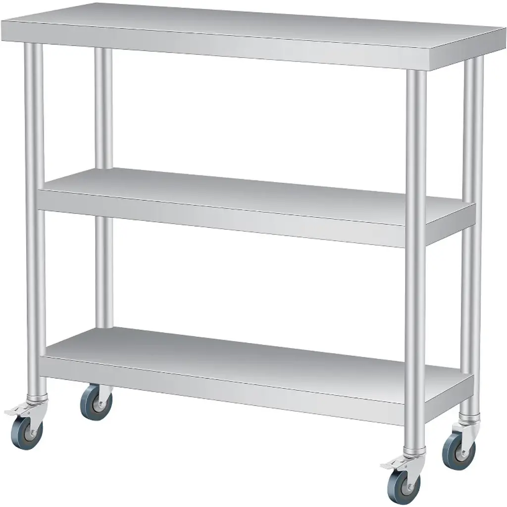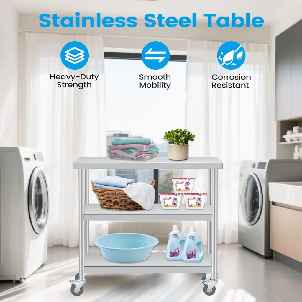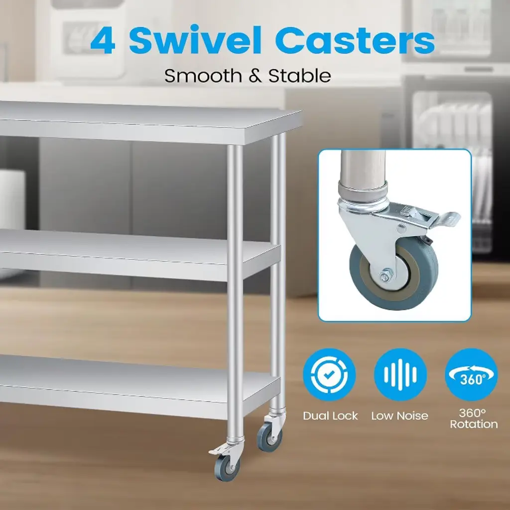 Stainless Steel Work Table with Wheels, 3-Shelf Commercial Food Prep Table, Rust-Resistant Metal Utility Table for Kitchen, Restaurant, Garage, Warehouse, Indoor, Outdoor