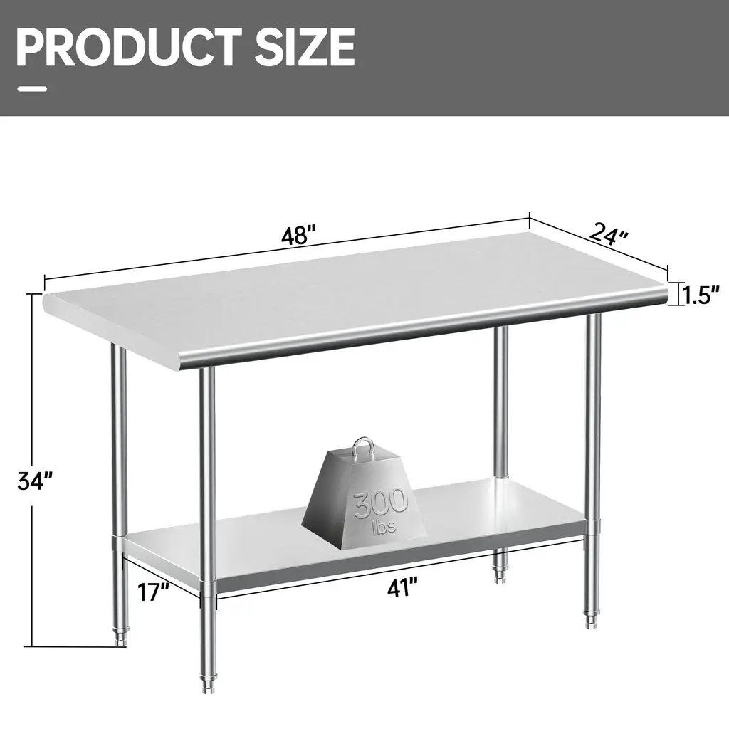 Stainless Steel Work Table, Nsf Commercial Worktable With Undershelf And Legs,24" D X 48" W X 34" H Inches - 24'x48'x34' - Silver