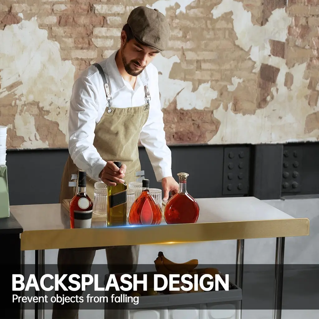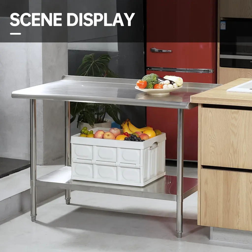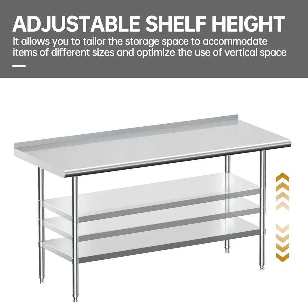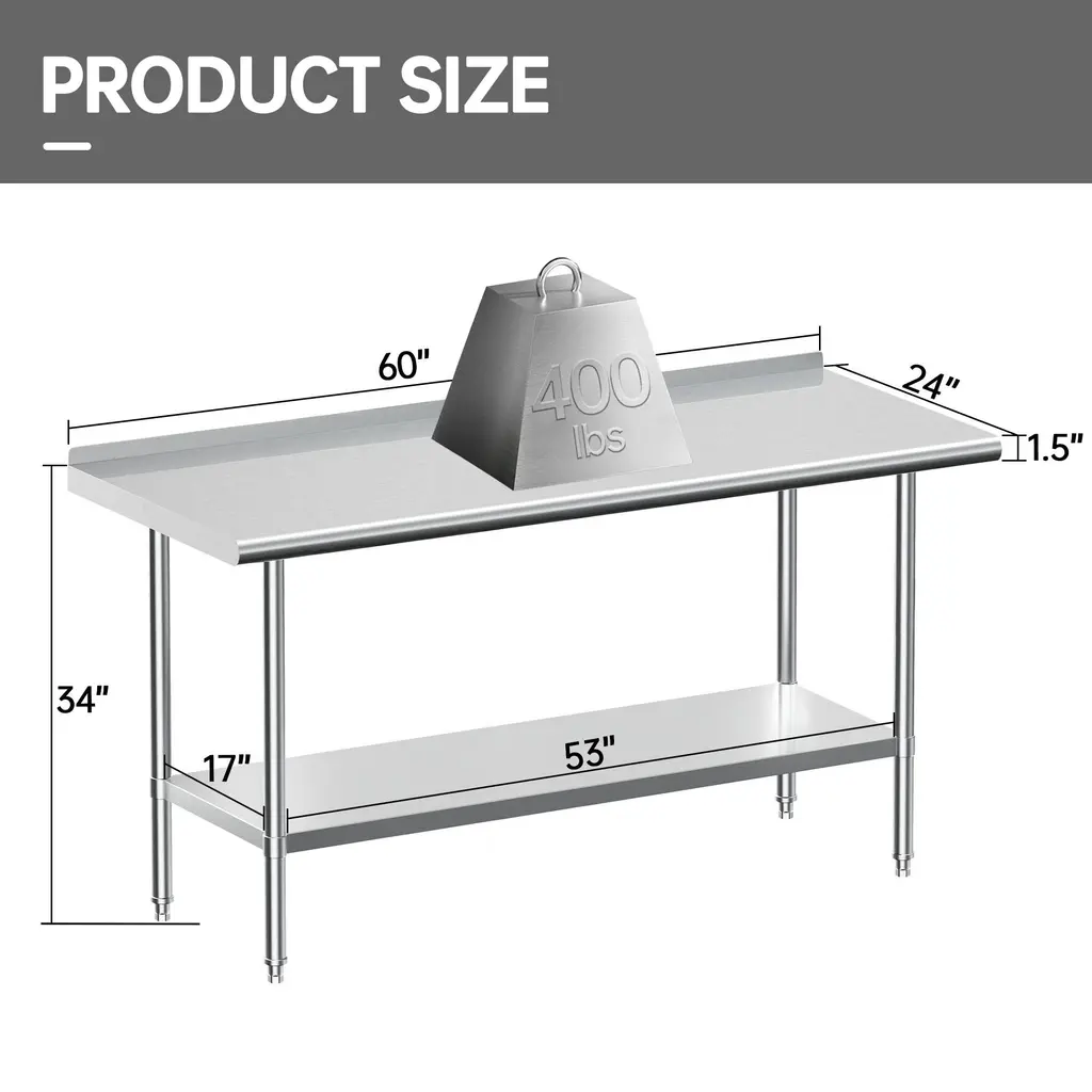 Stainless Steel Work Table With Backsplash, Commercial Table For Prep & Work Table, 24" D X 60" W X 34" H Inches - 24'x60'x34' - Silver