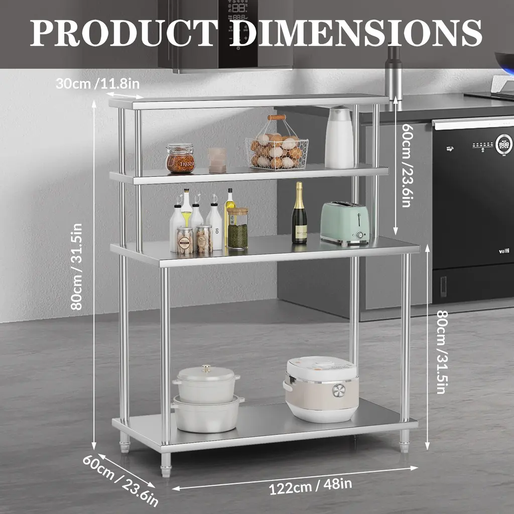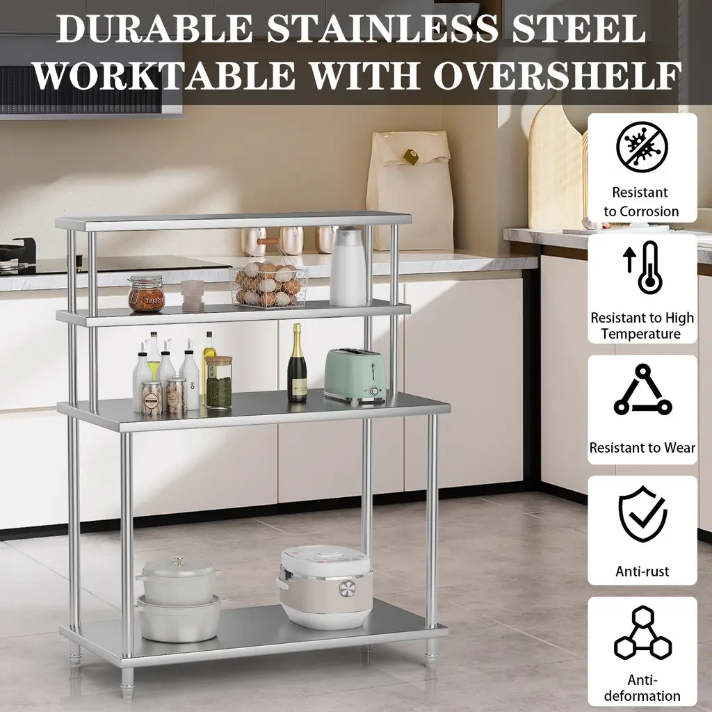 Stainless Steel Work Table With Overshelves - Silver 48x24