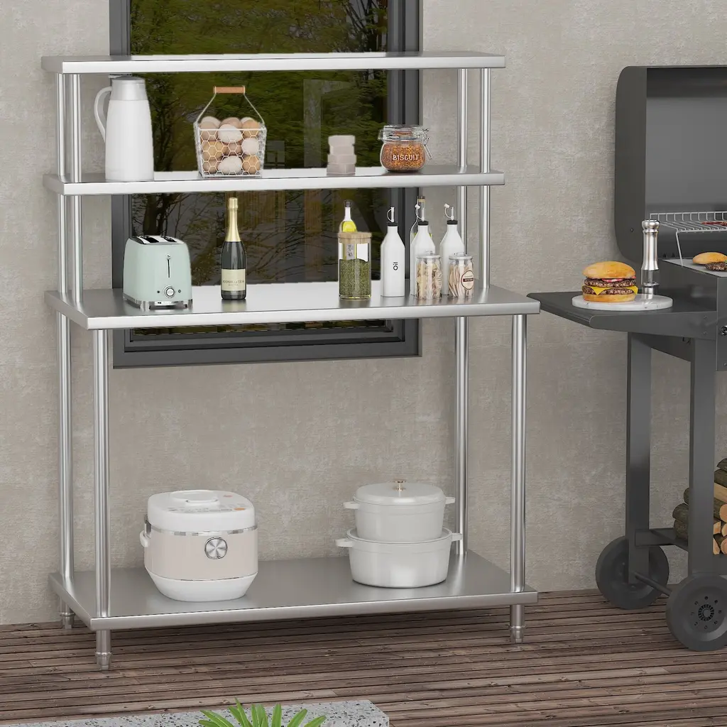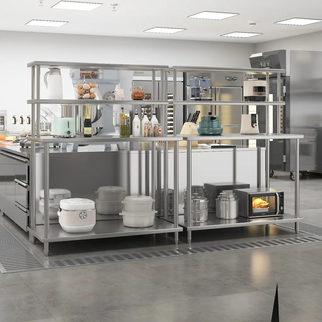 Heavy-Duty Stainless Steel Construction: Crafted from high-quality stainless steel, this work table is designed to withstand the rigors of commercial use. Its robust construction ensures resistance to rust, corrosion, and daily wear, making it an ideal choice for busy kitchens, warehouses, and garages. Available in Multiple Sizes: Choose from three versatile sizes—30x24 inches, 36x24 inches, and 48x24 inches—allowing you to select the perfect fit for your space and needs. Whether you require a compact prep area or a larger work surface, this table has you covered. Adjustable Overshelves for Added Storage: The included adjustable overshelves provide valuable additional storage space for kitchen tools, equipment, and supplies. With customizable heights, these shelves can accommodate items of various sizes, helping you optimize your workspace organization. Versatile Applications: This work table is ideal for a wide range of environments, including restaurants, catering services, workshops, garages, and warehouses. Its versatility makes it an essential tool for chefs, mechanics, bakers, and more. Simple Assembly Process: The work table is designed for easy assembly, with all necessary hardware included. You can quickly set it up without requiring specialized tools, allowing you to maximize your efficiency right away.