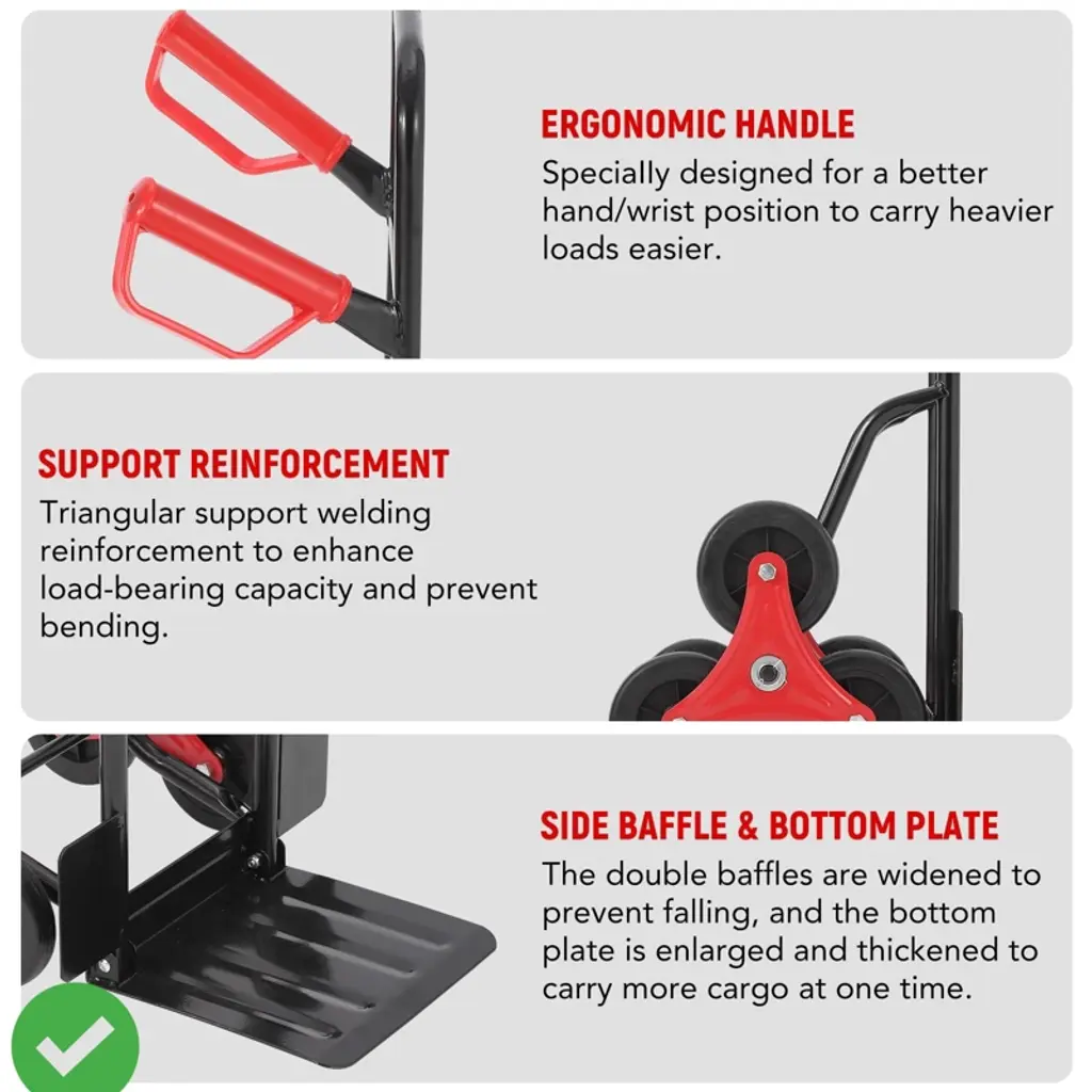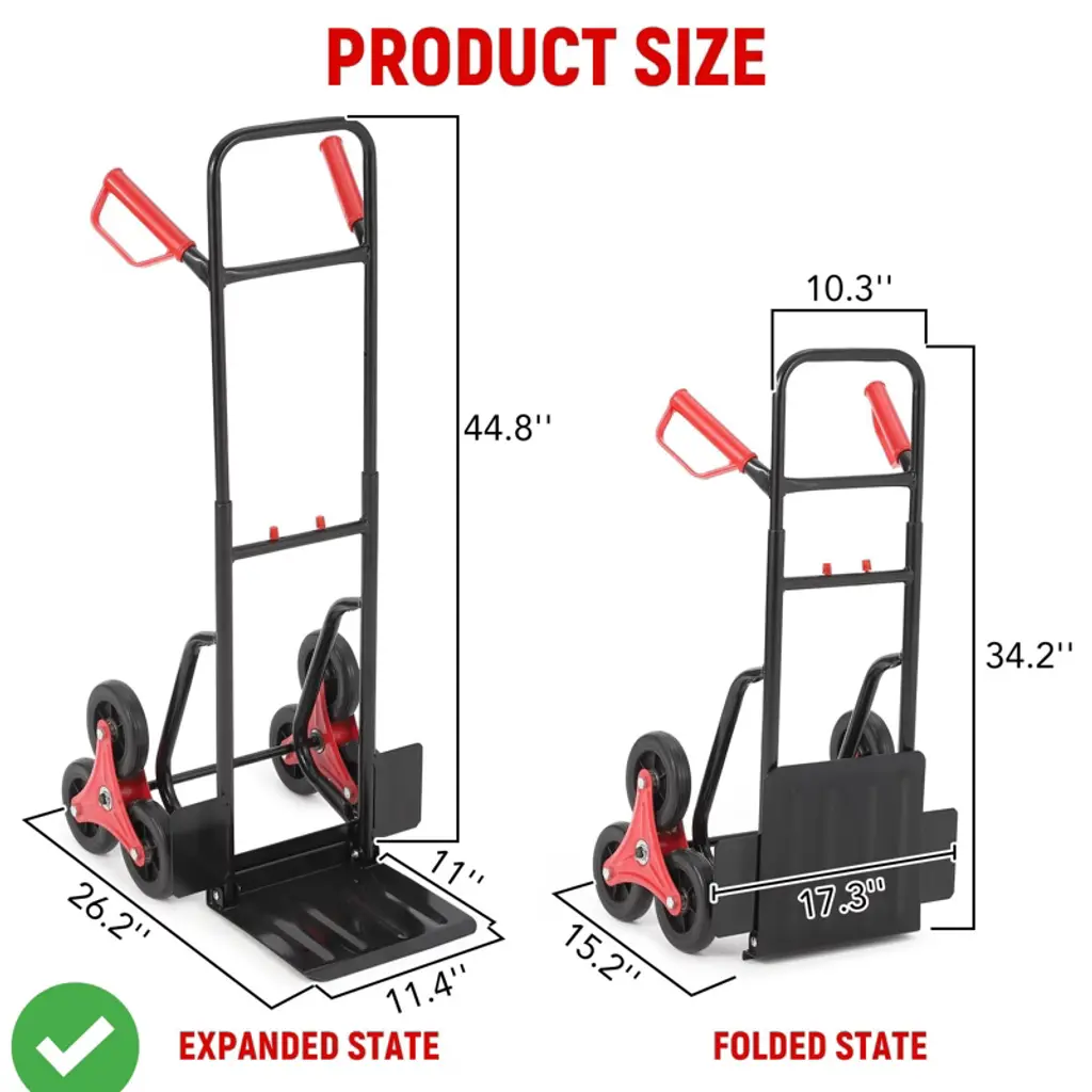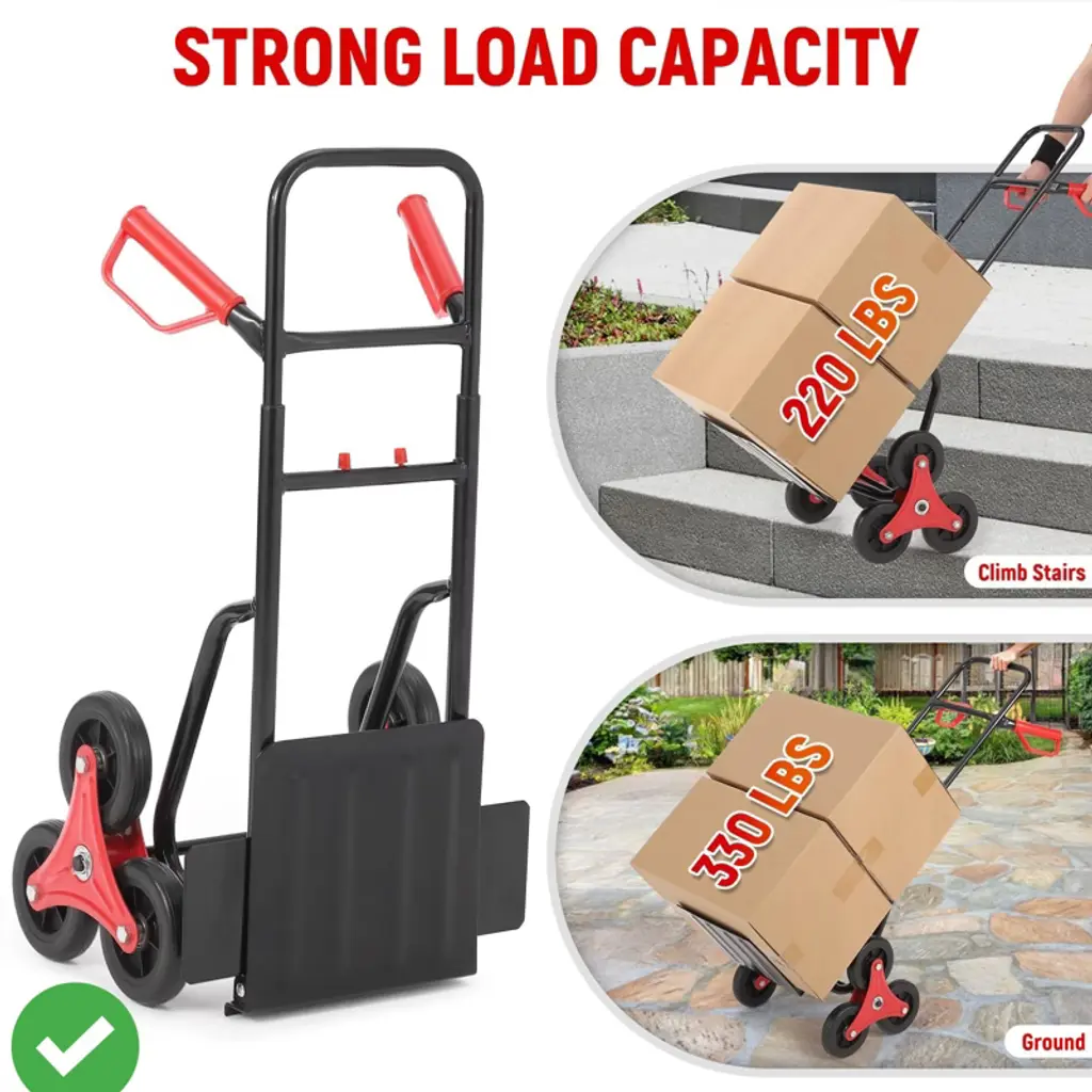 Stair Climbing Dolly, 330 Lbs Weight Capacity, Foldable Hand Truck with 6 Rubber Wheels and Telescoping Handle, Heavy-Duty Grocery Cart for Luggage, Warehouse, Shopping.