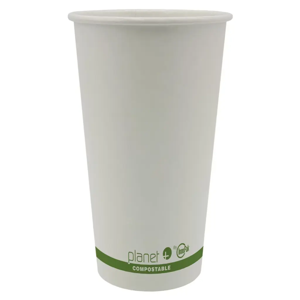 These 20 oz white hot cups offer a sustainable and durable solution for serving hot beverages. Constructed from plant-derived, PLA-lined paperboard, they provide a leak-resistant alternative to traditional petroleum-based linings. BPI-certified compostable and PFAS-free, these cups withstand boiling water and are refrigerator safe. Lids are sold separately. Ideal for coffee, tea, or hot chocolate, these cups are an eco-conscious choice for any business or event. Their clean white design also allows for easy customization with stamps or labels.
